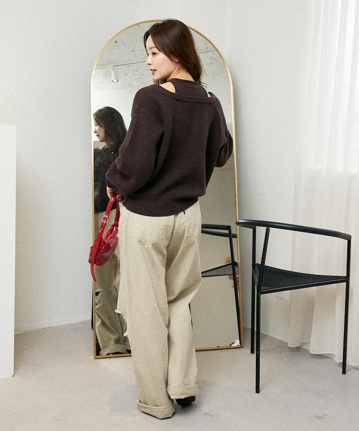 肩部開叉的細節設計能展現健康的肌膚,營造出輕鬆、成熟的感覺。