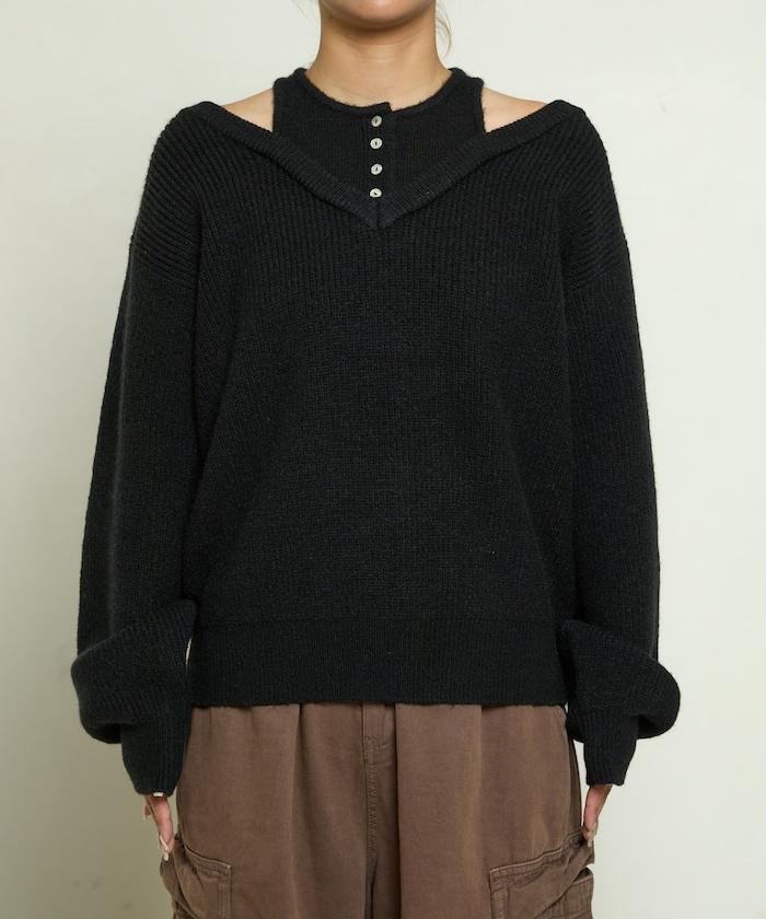 背心疊穿風格亨利領開口針織套頭衫