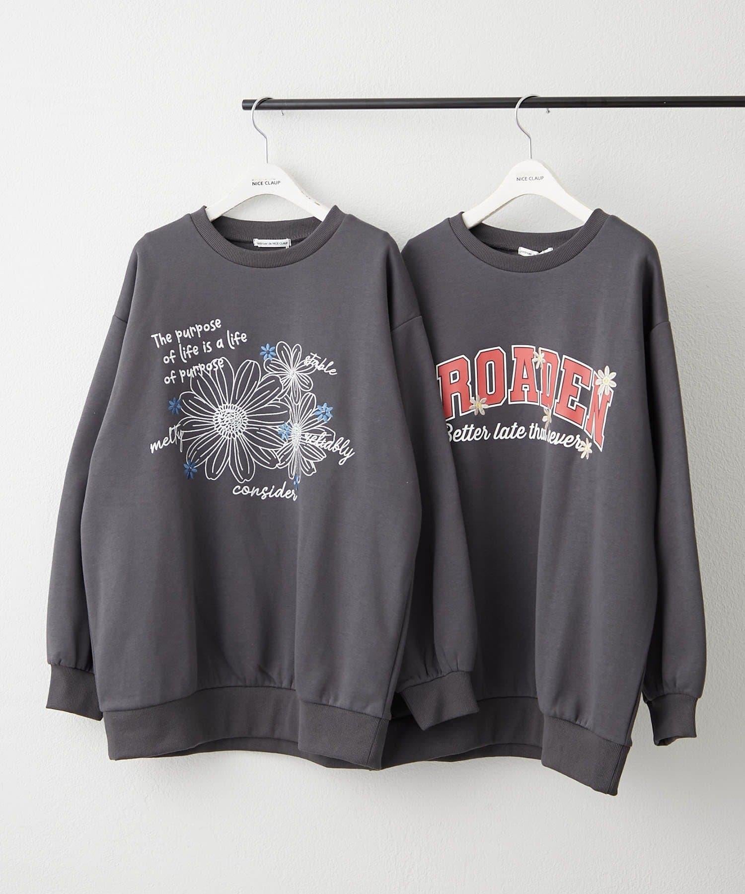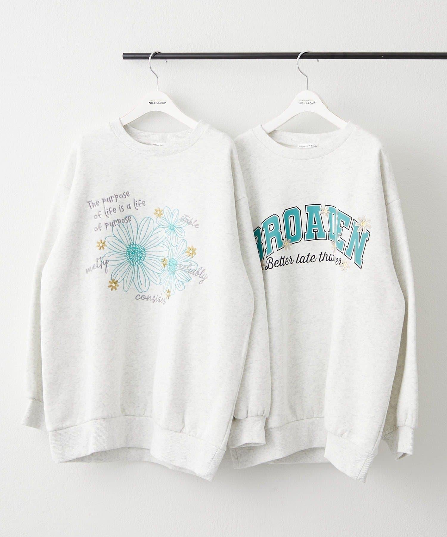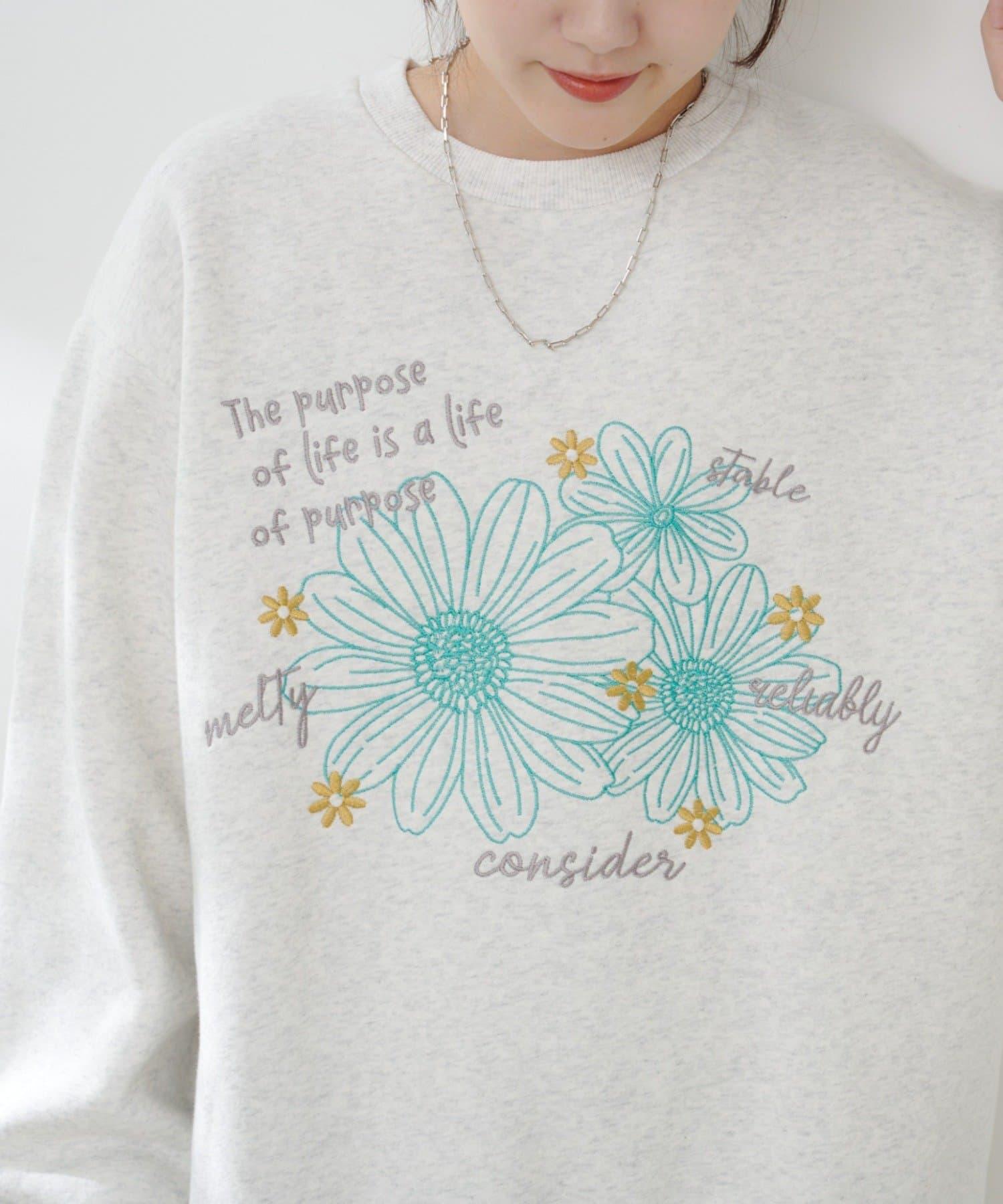 花卉與標誌拼接加絨套頭衫