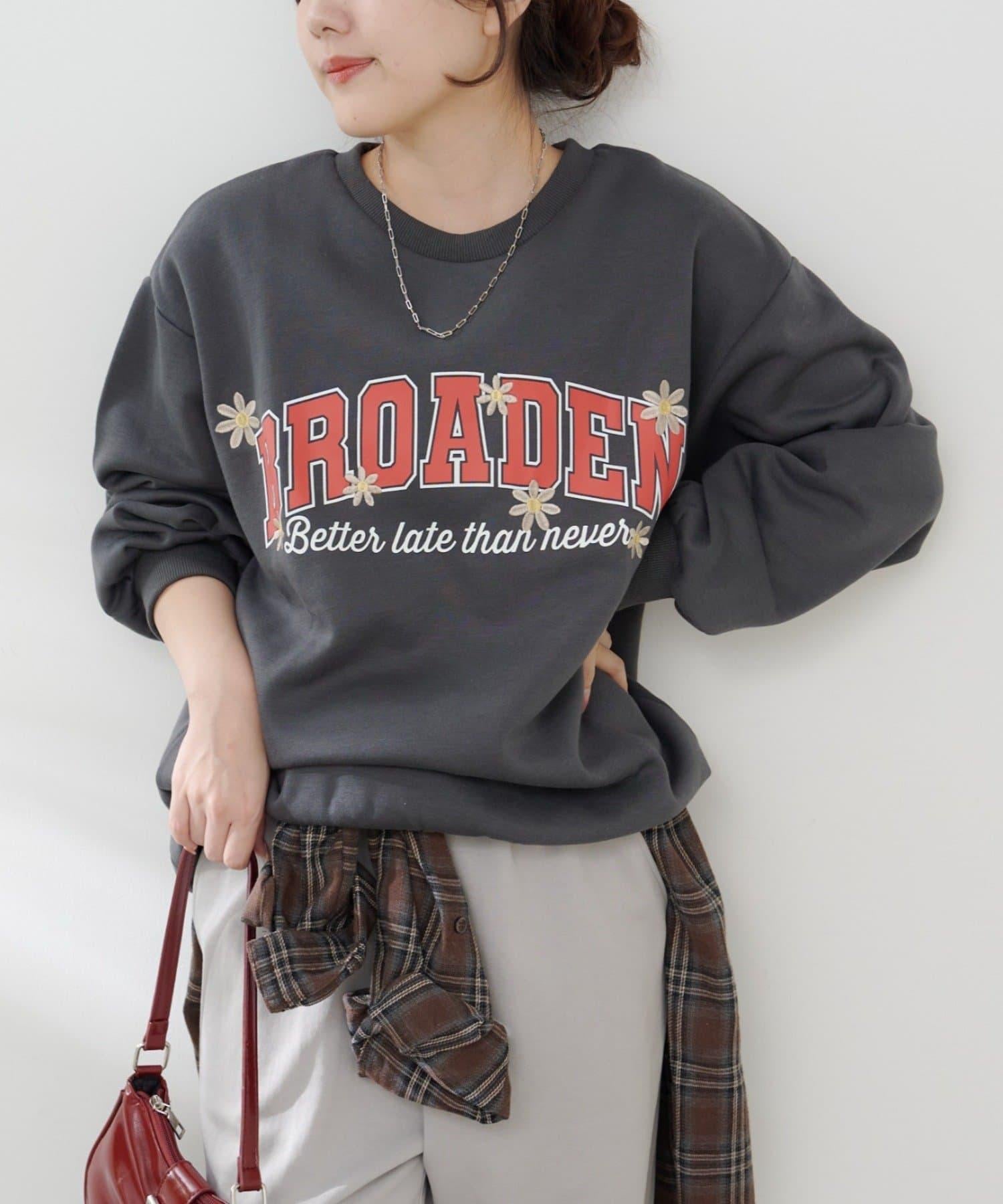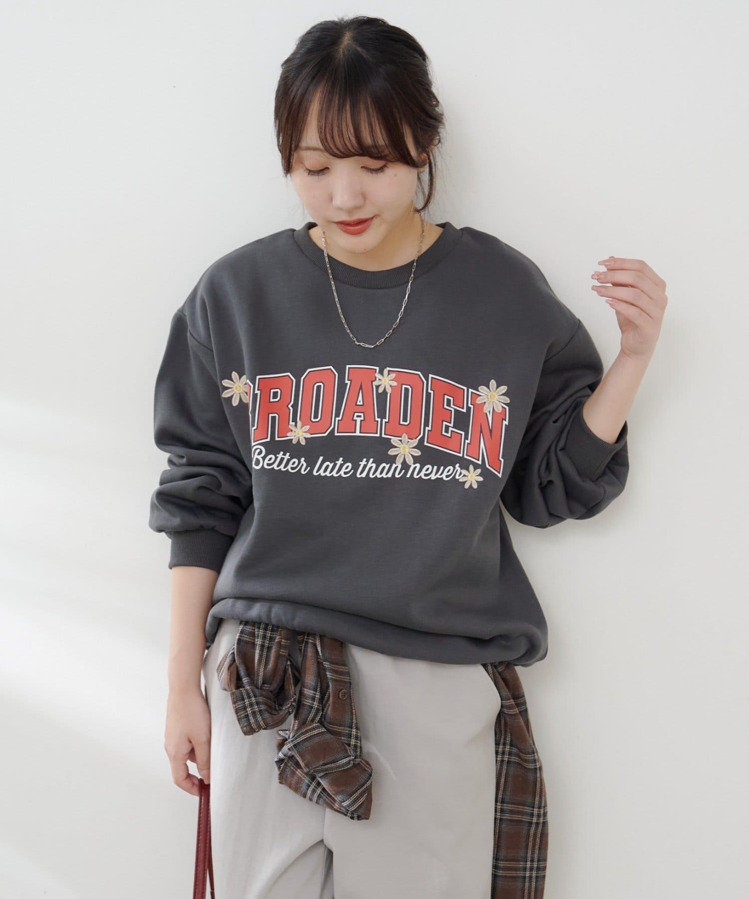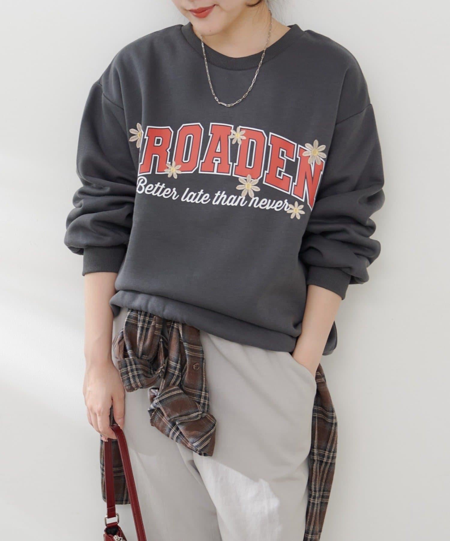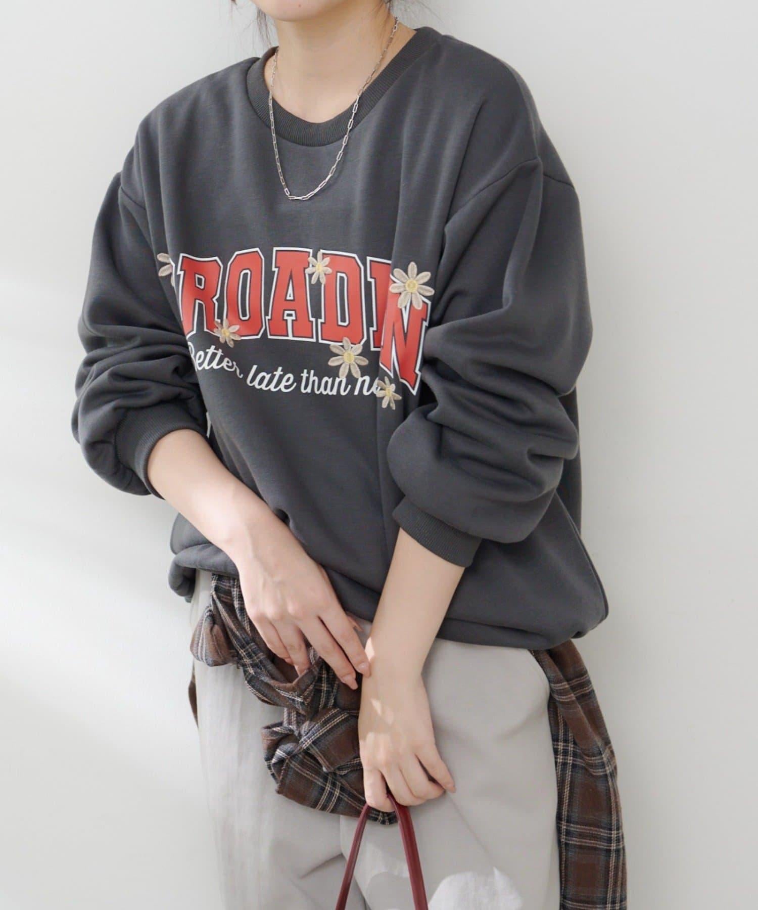 花卉與標誌拼接加絨套頭衫