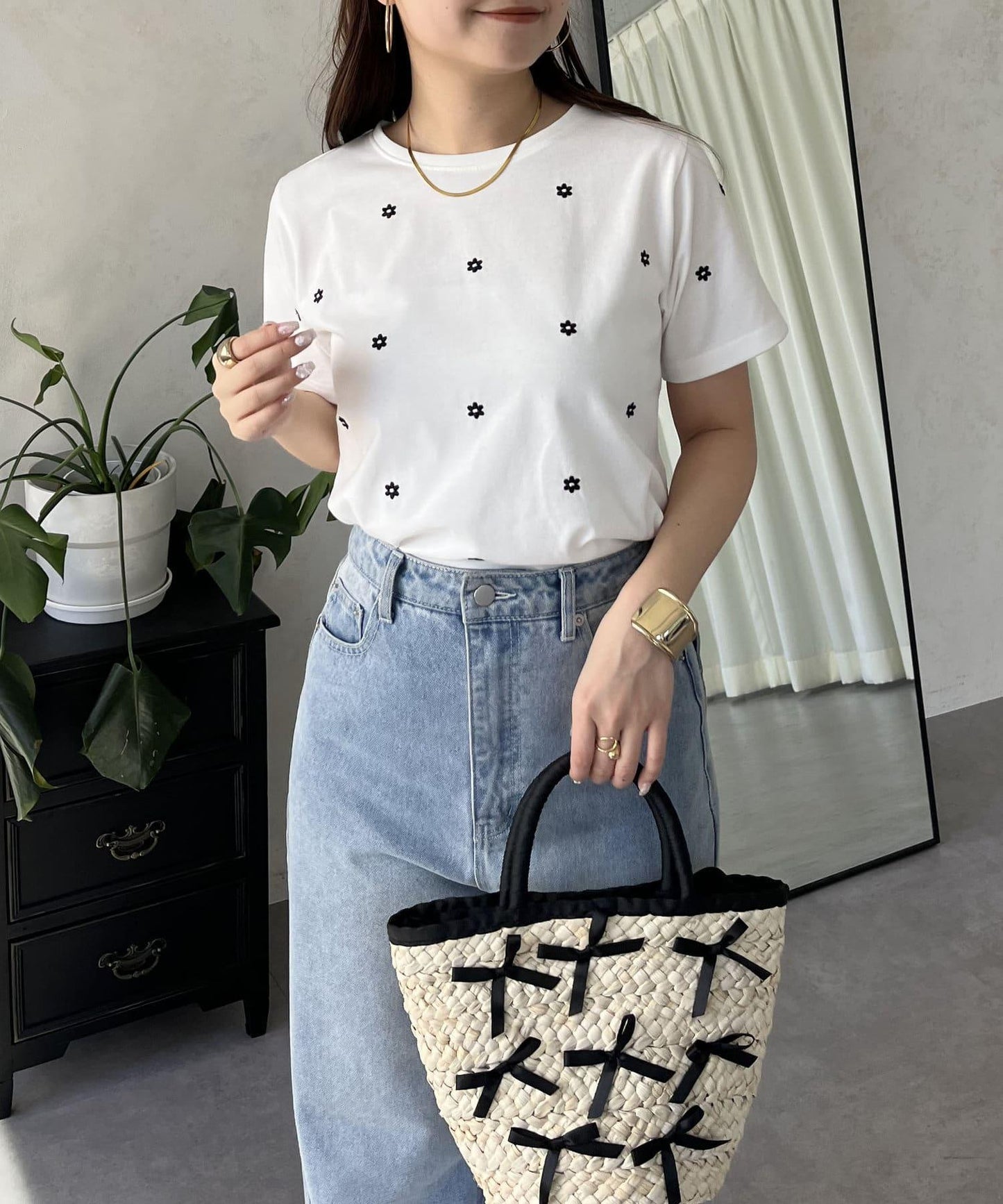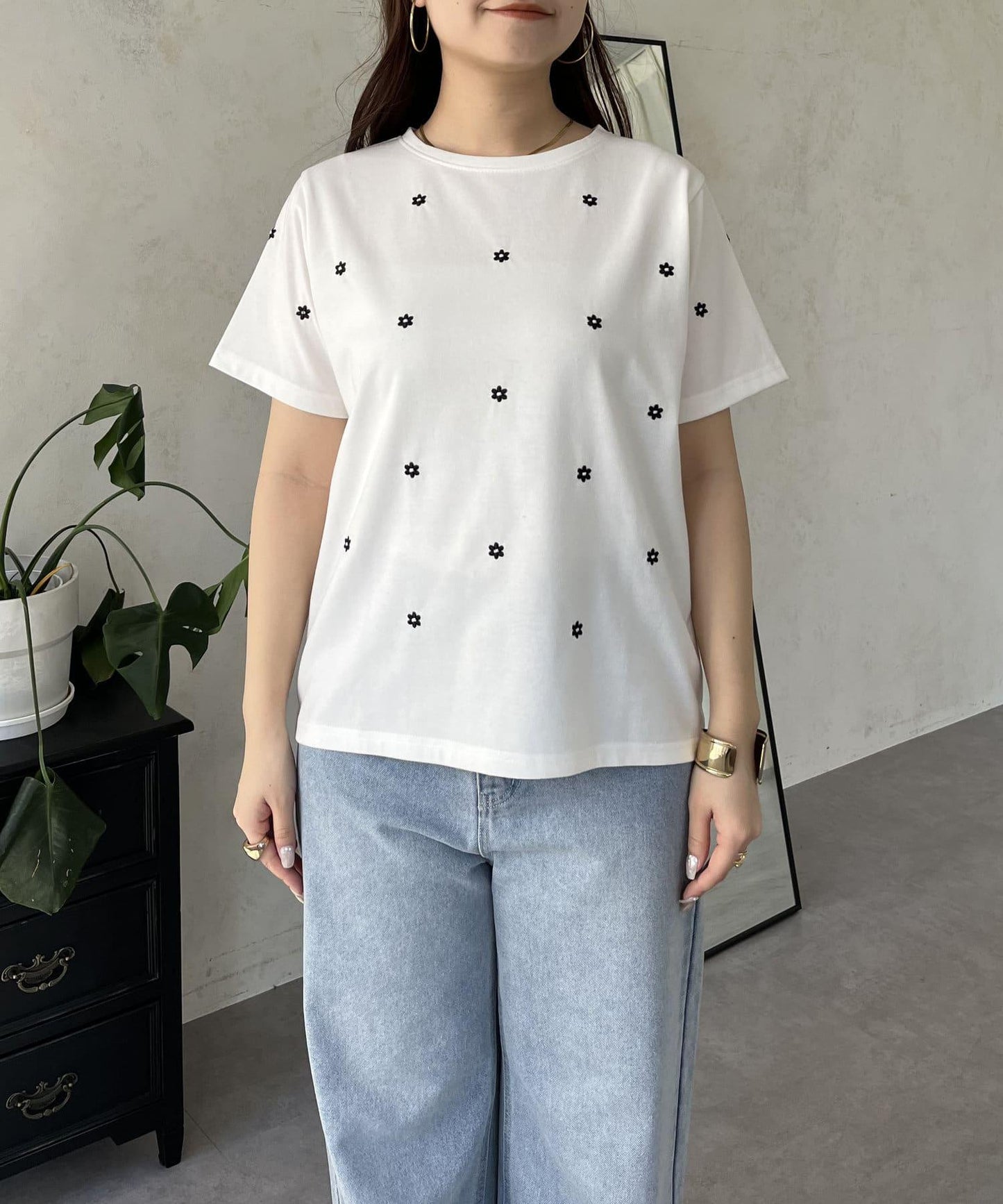 花朵 / 刺繡 / 簡約 / T恤 / 成人可愛 / 成人休閒