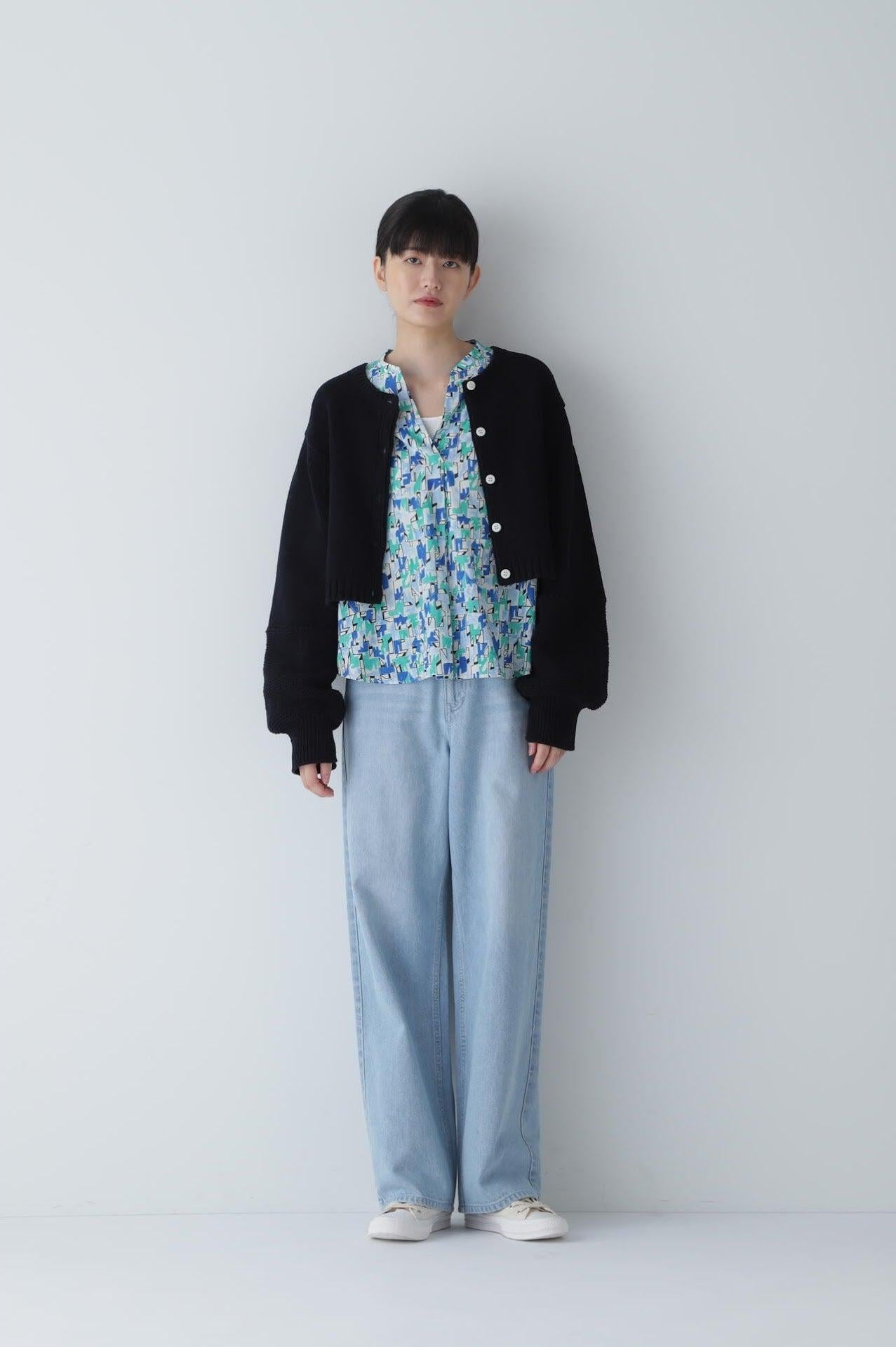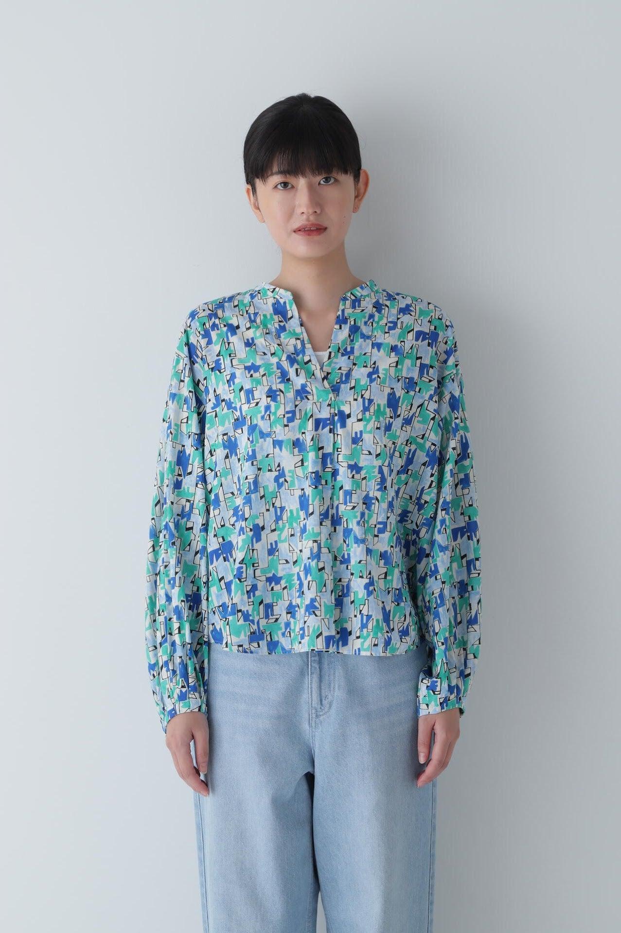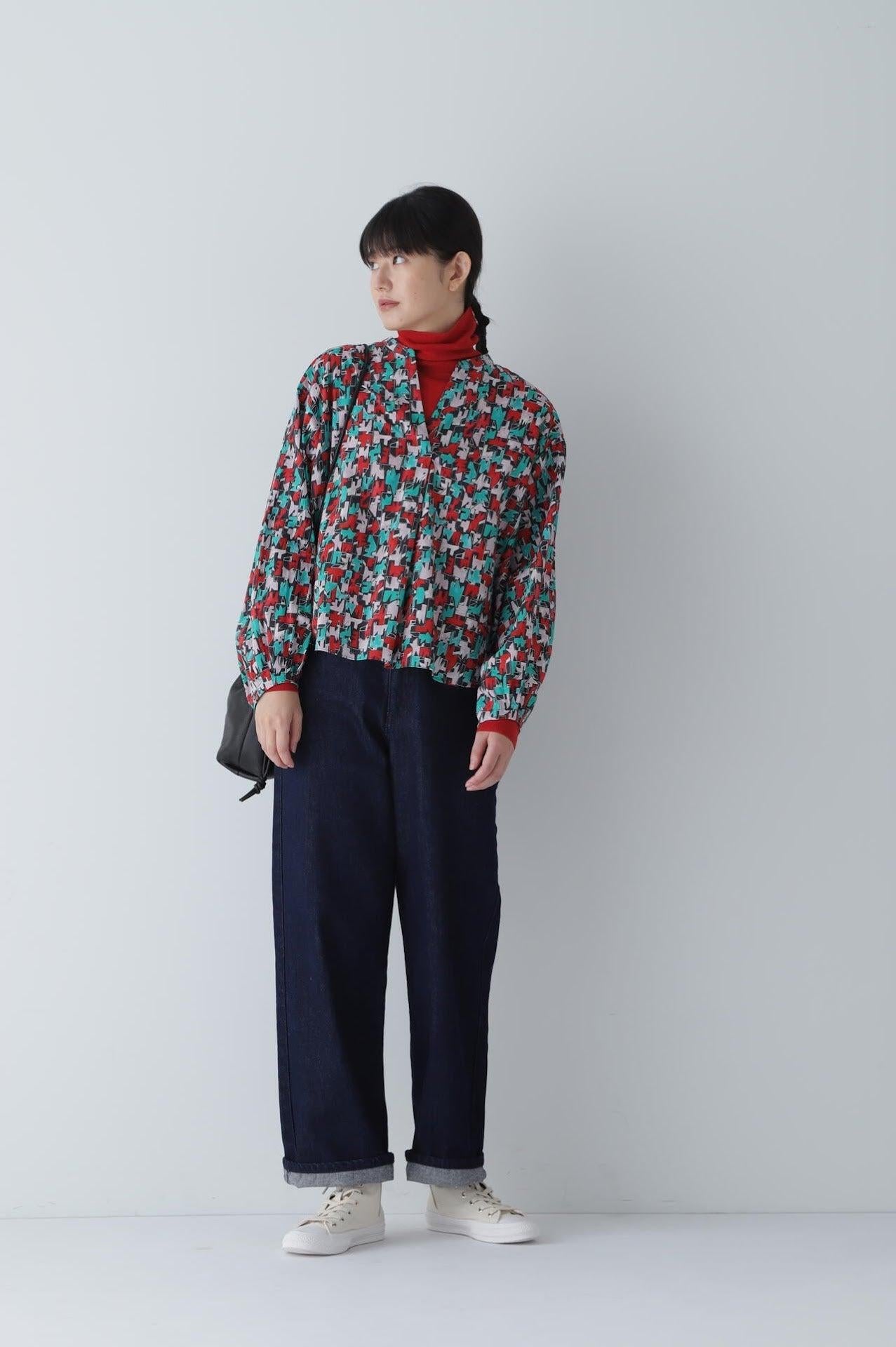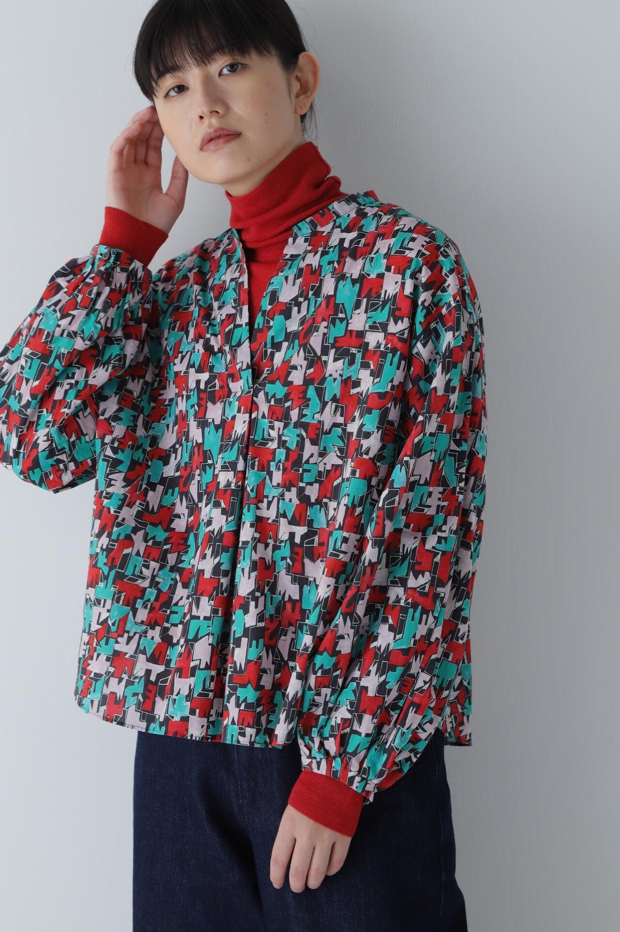 藝術印花襯衫,來自紡織品設計師 Eriko Yajima 與人類女性的合作 [設計要點] 這款印花襯衫的領口和袖子都是船長式的,袖子也很寬大。印花圖案是與紡織品設計師矢島繪理子合作的作品。矢島的原創設計充滿了藝術感、圖案感和懷舊手繪風格,並採用了人類女性的色彩。除了人類女性的紅色和藍色印花外,還有純白色,便於搭配針織馬甲和外套。推薦座標:簡單。
