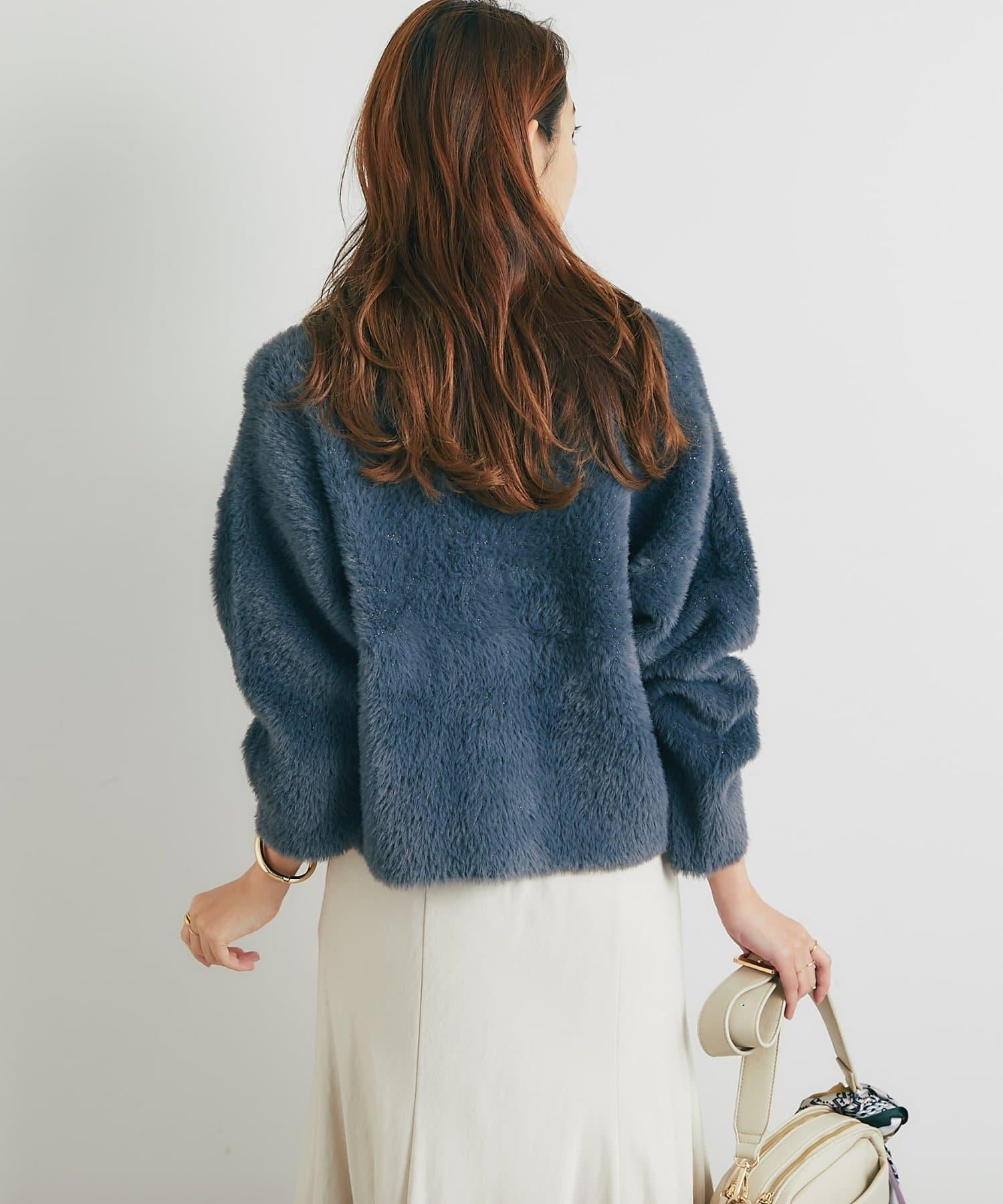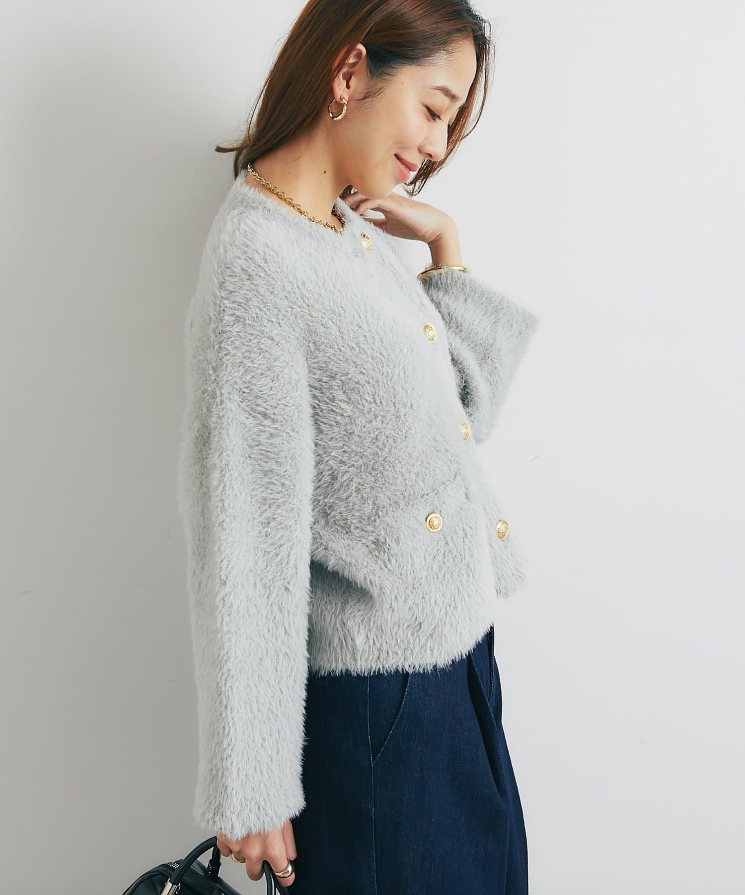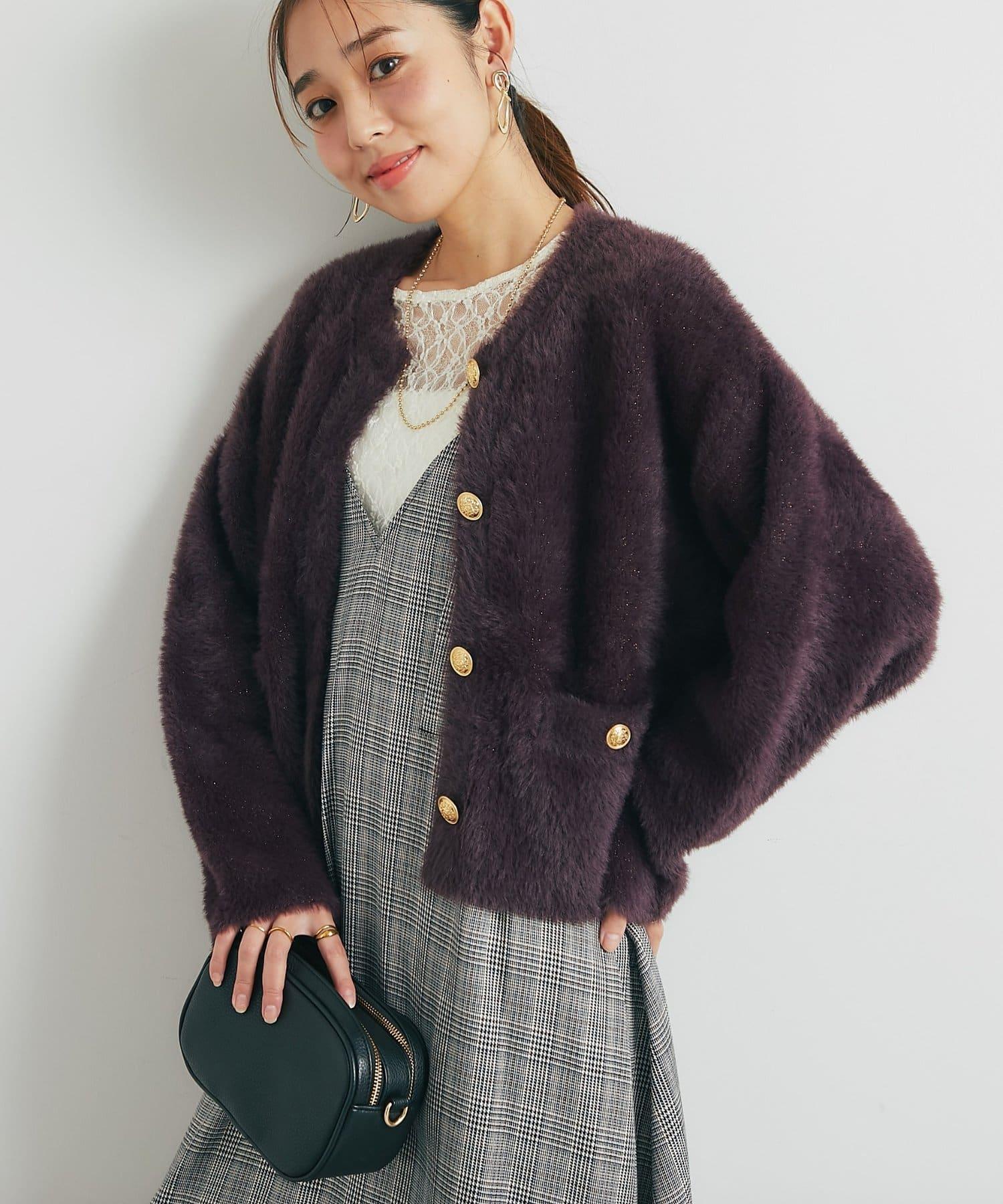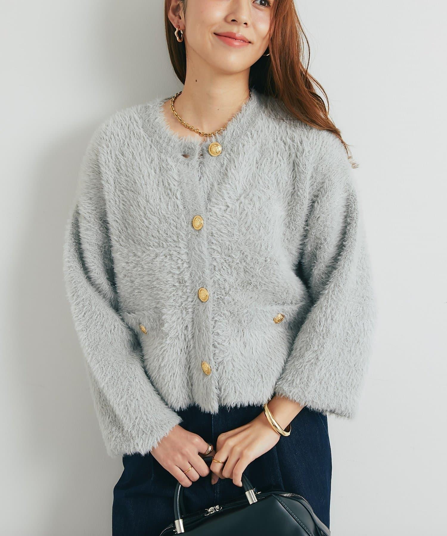 這款開襟羊毛衫採用柔軟蓬鬆的絨毛面料,質感奢華,給人以優雅的印象。