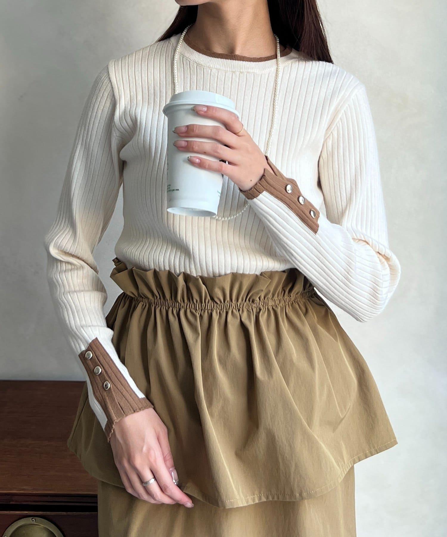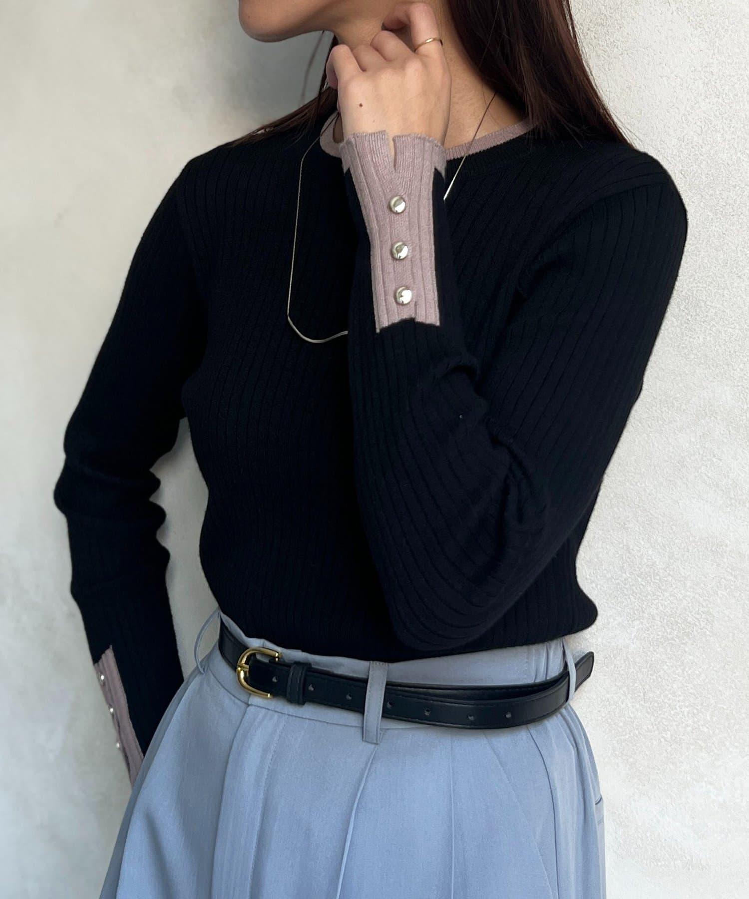 袖口紐扣拼色套頭衫