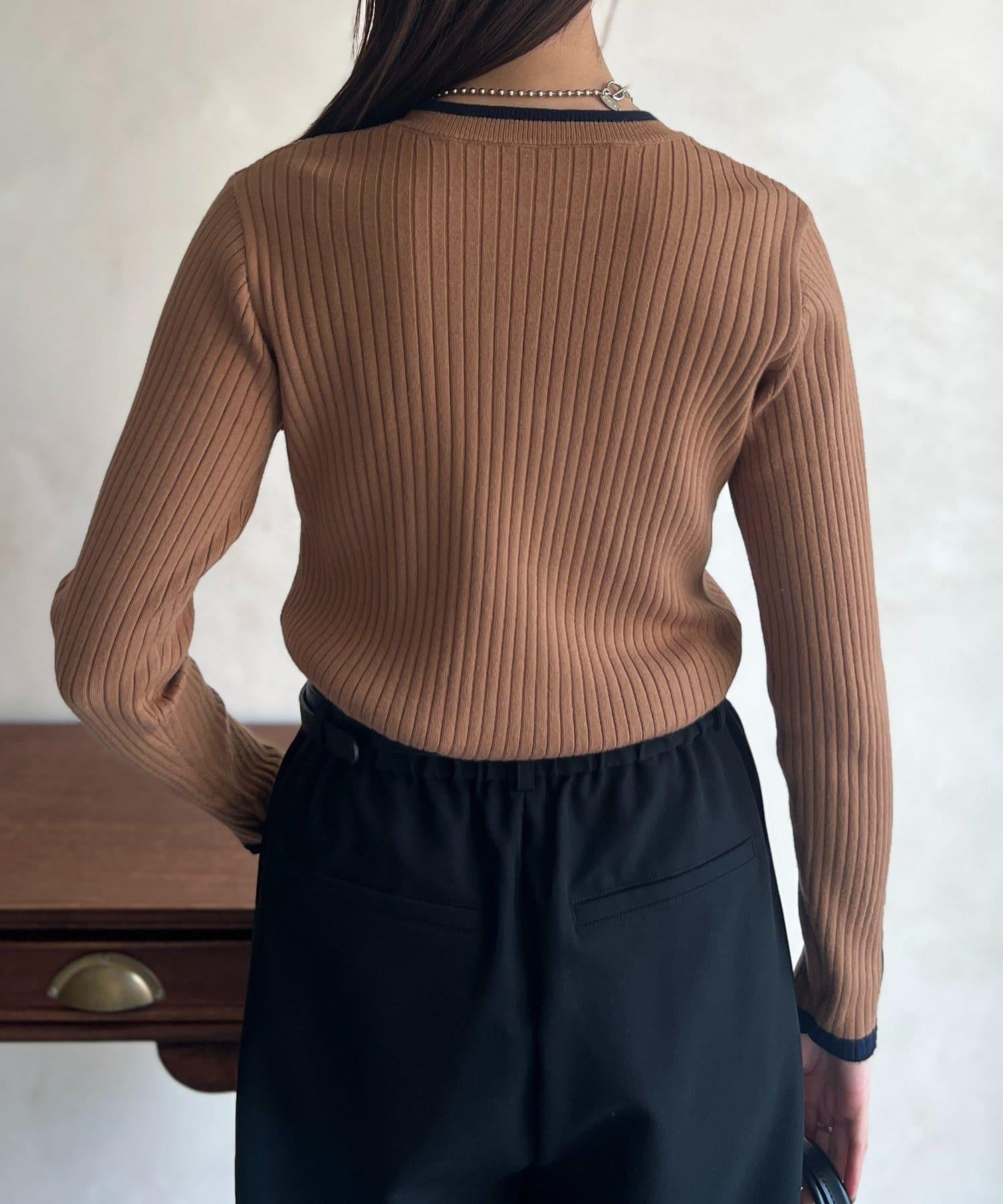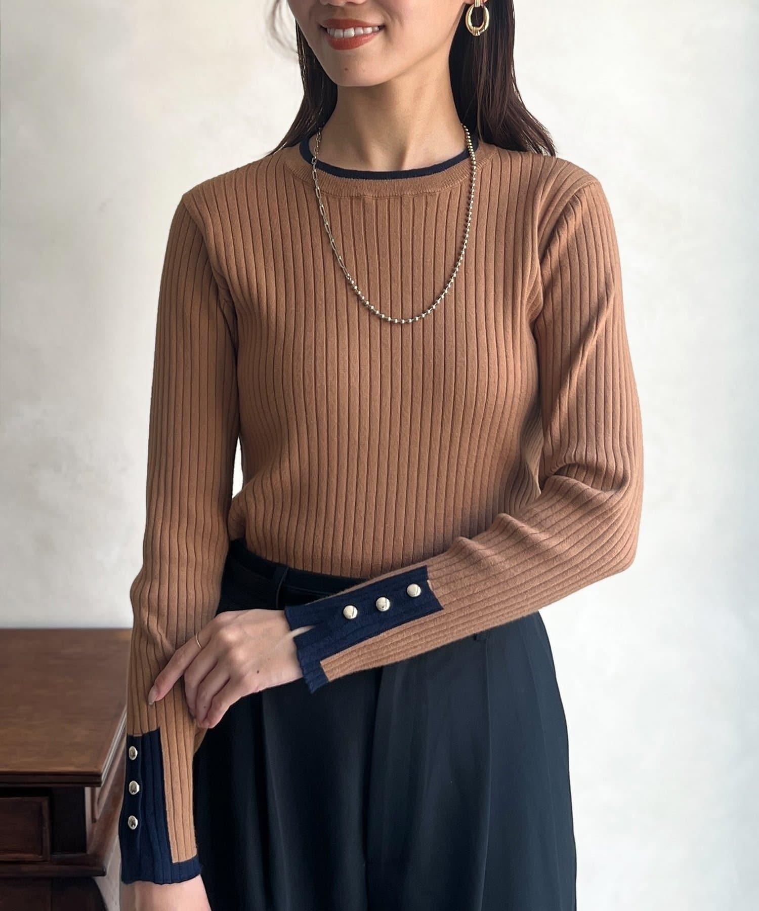 套頭衫,衣領和下襬顏色協調,袖口有金色紐扣。