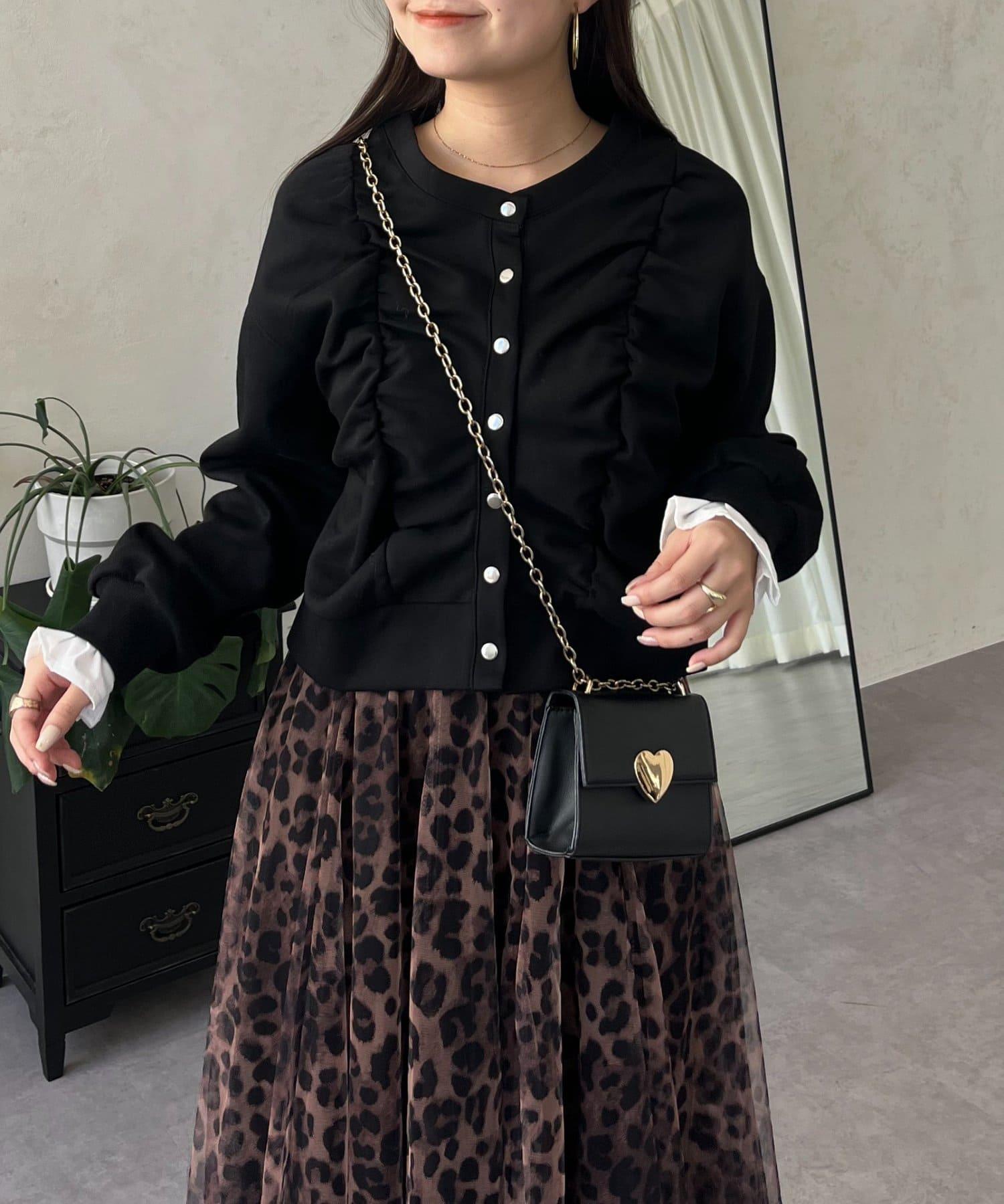 袖部荷葉邊前褶皺針織開衫