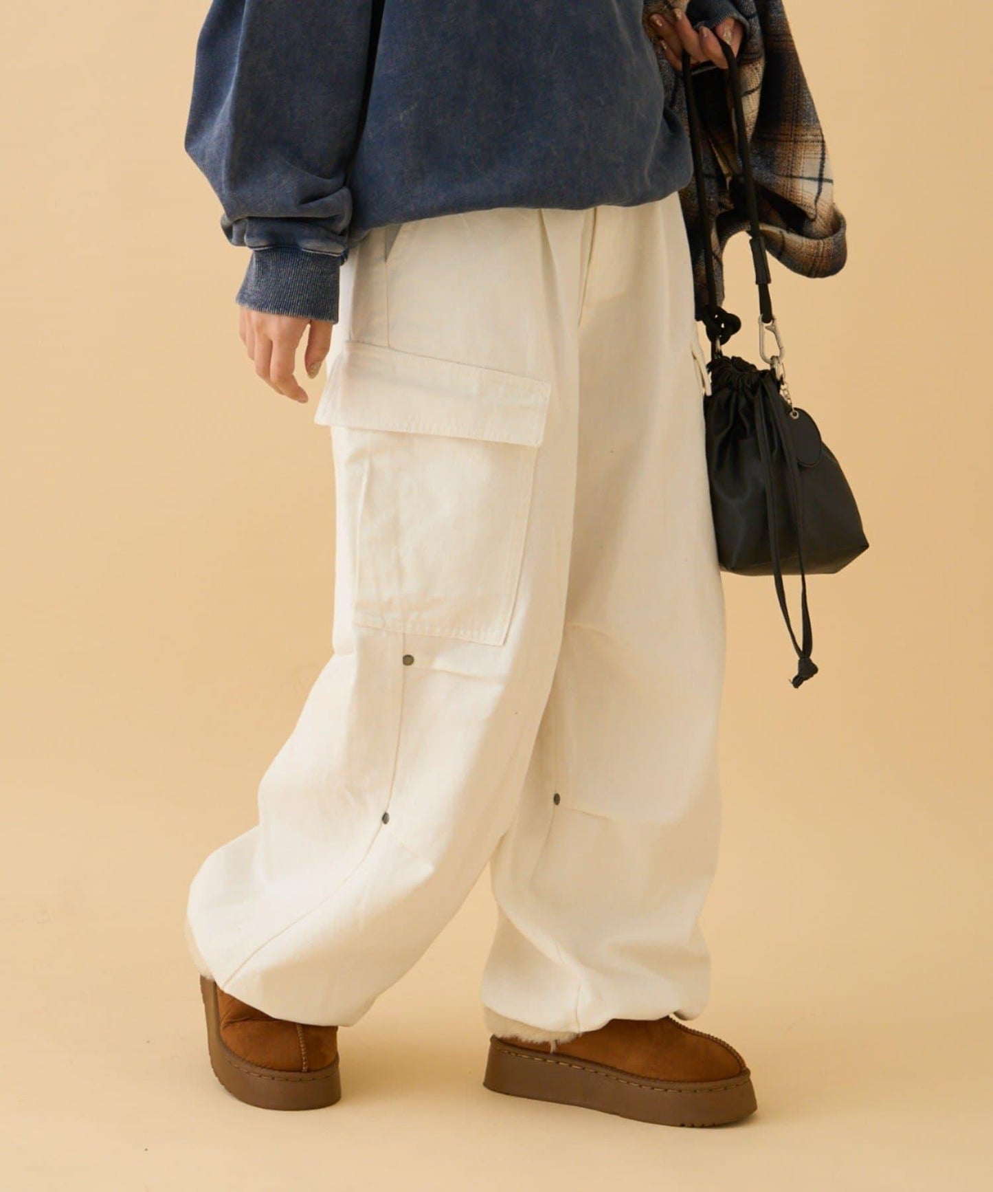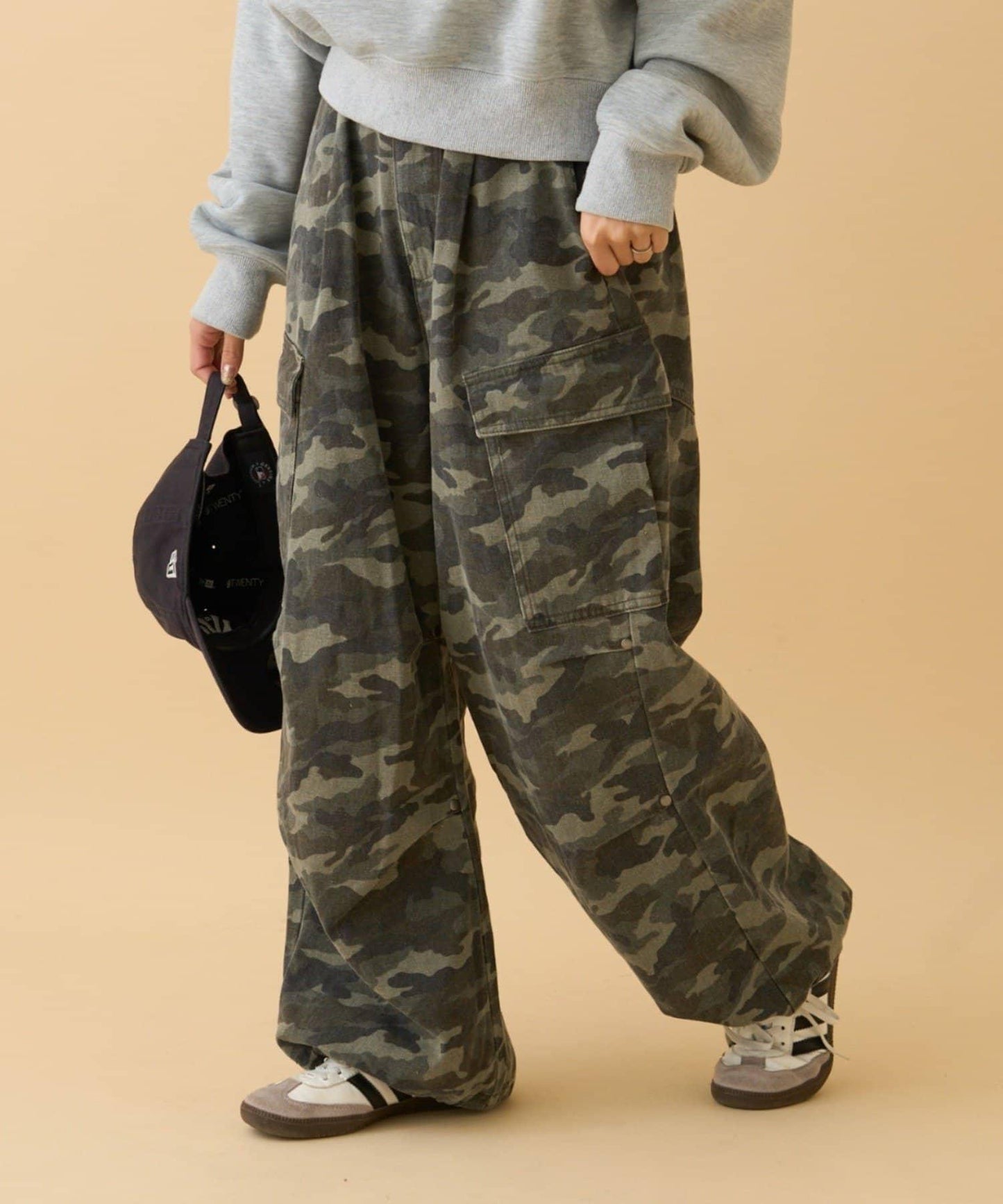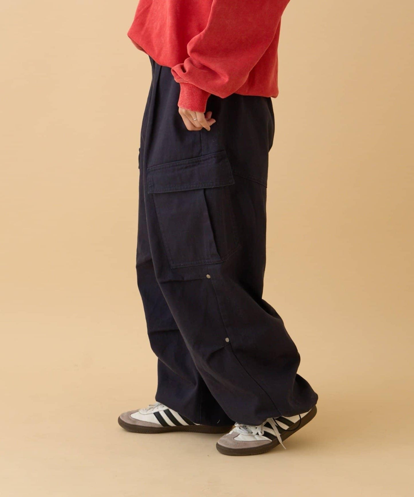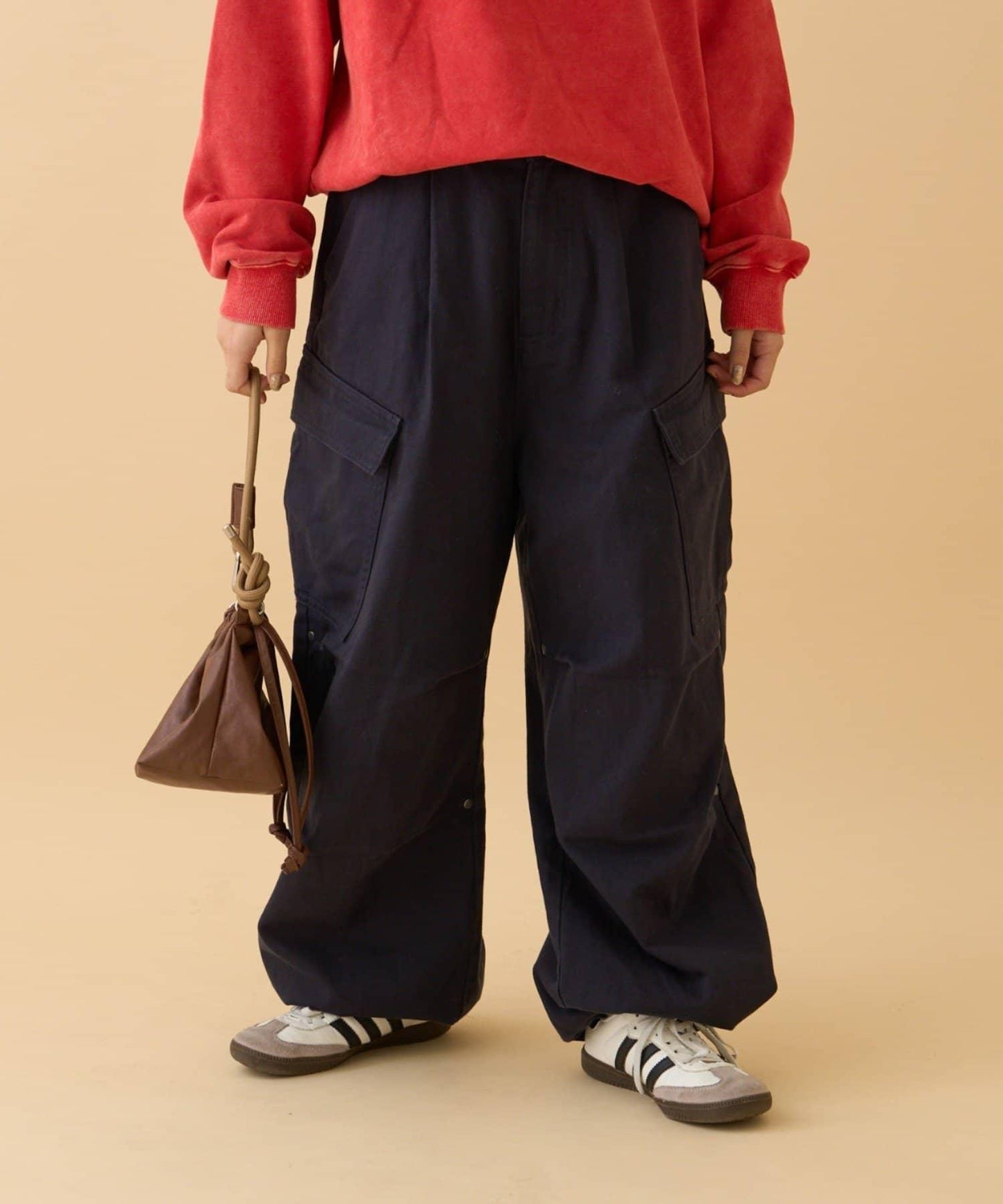 膝蓋處飾有褶襉和鉚釘!寬剪裁卡其褲就在這裡!