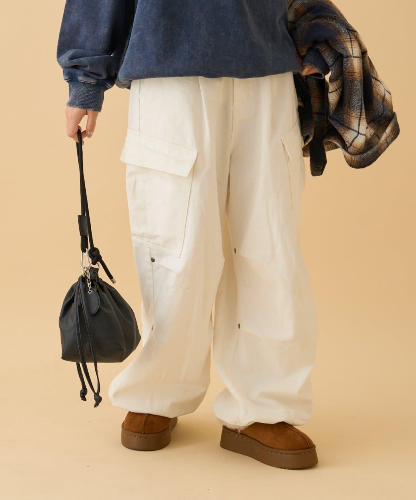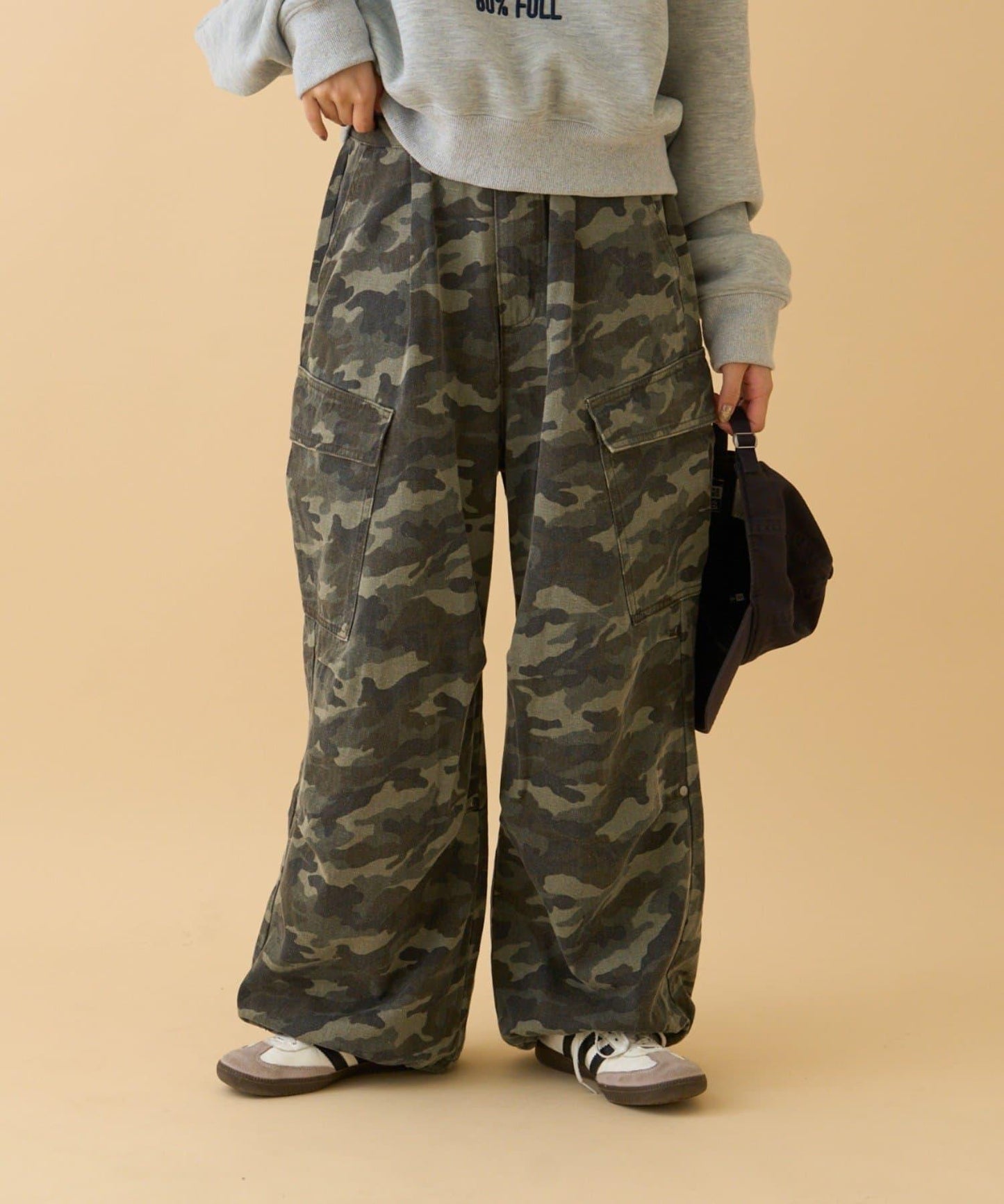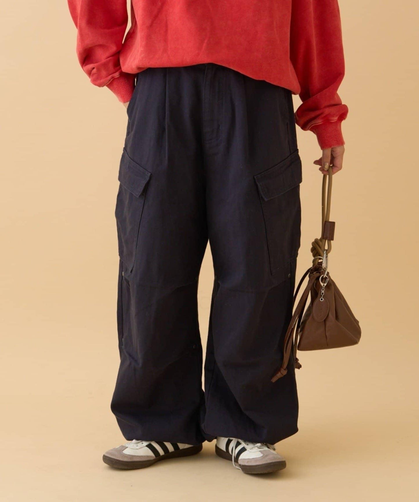 膝蓋處飾有褶襉和鉚釘!寬剪裁卡其褲就在這裡!