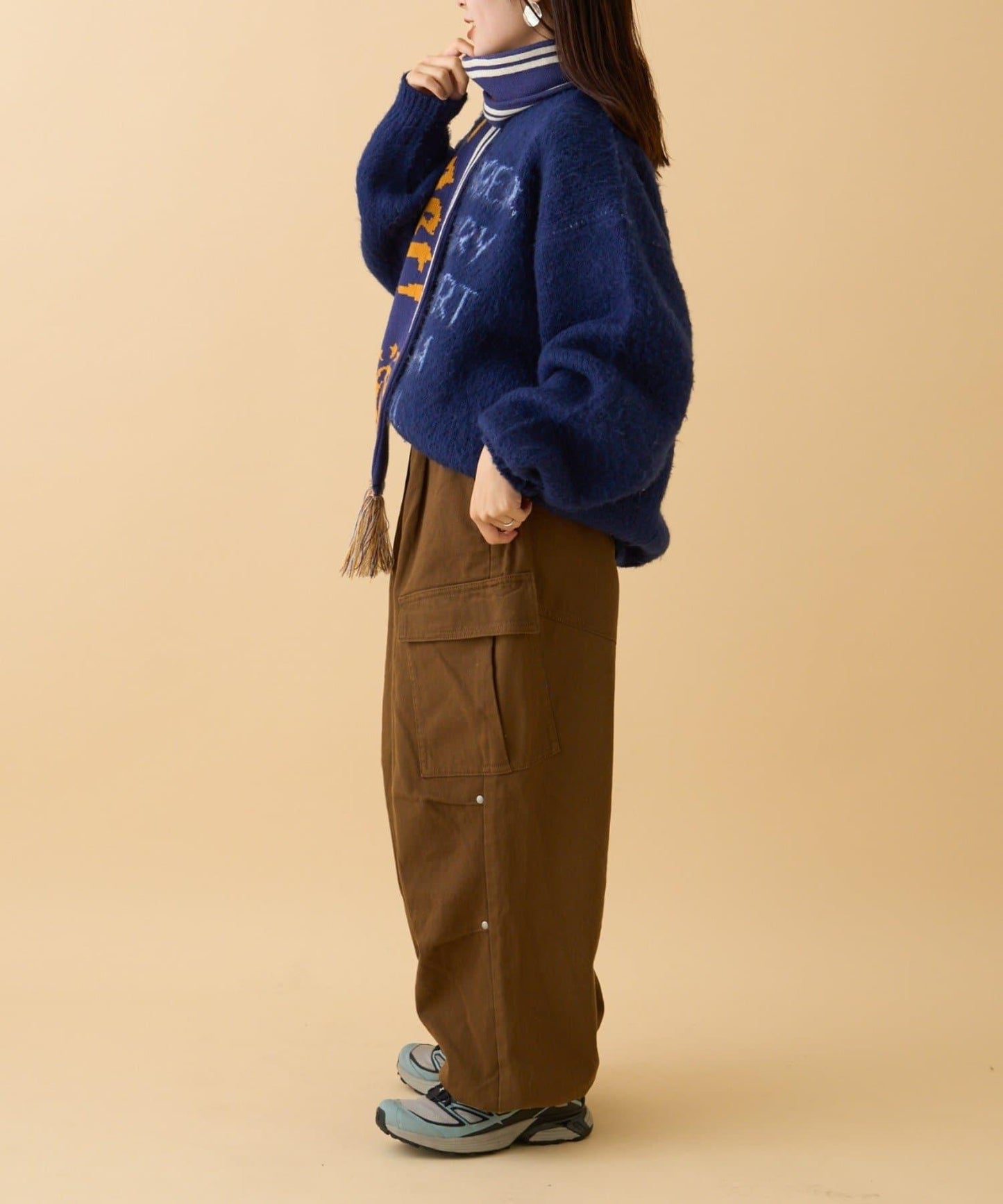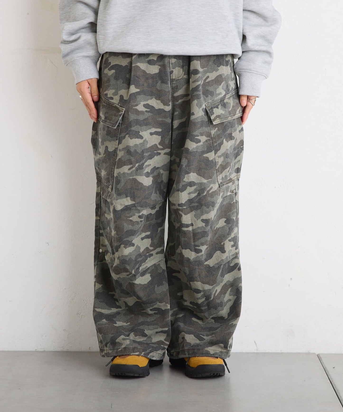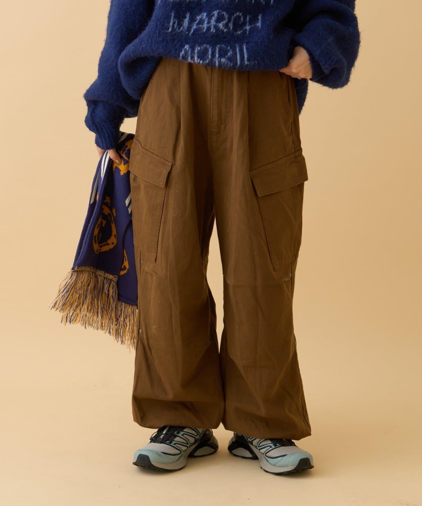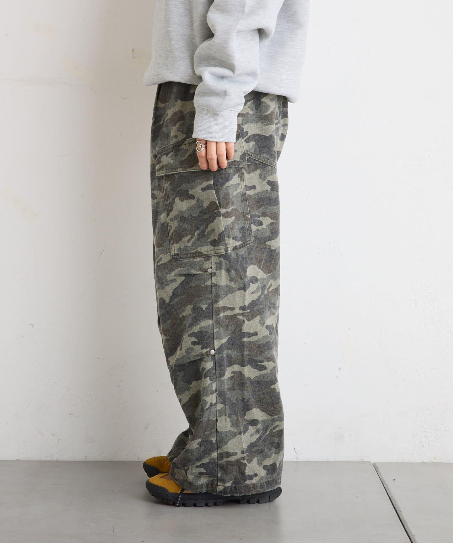 膝蓋處飾有褶襉和鉚釘!寬剪裁卡其褲就在這裡!