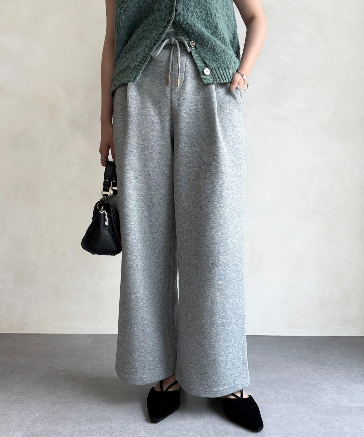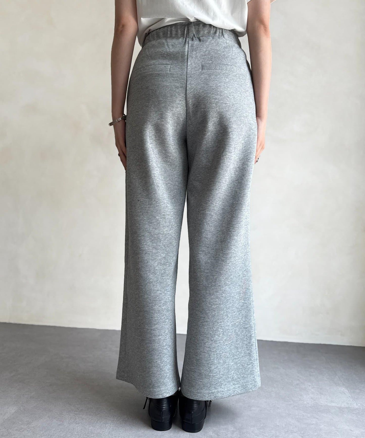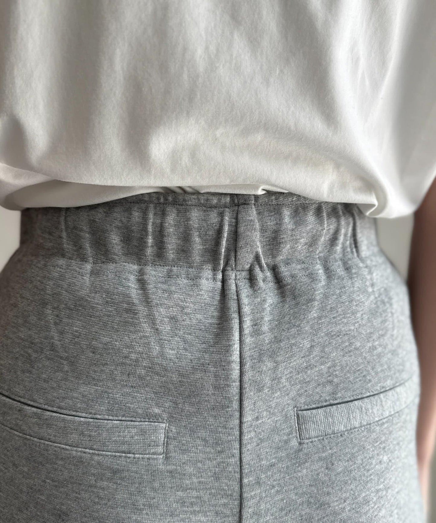 這款運動褲給人休閒的印象,但褶襉覆蓋了腰部和臀部線條,增添了愜意感。