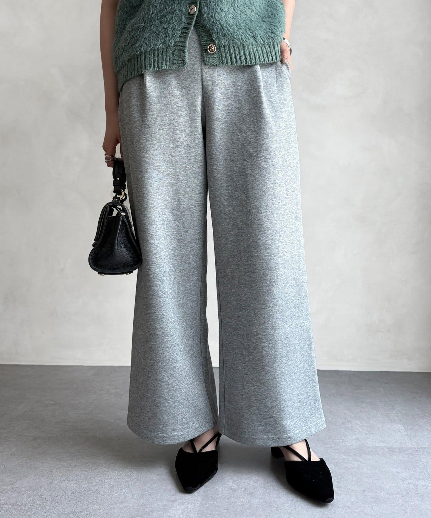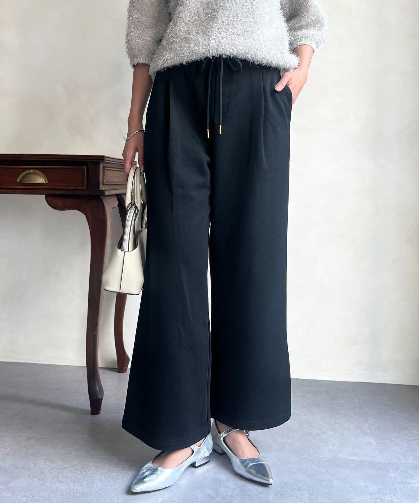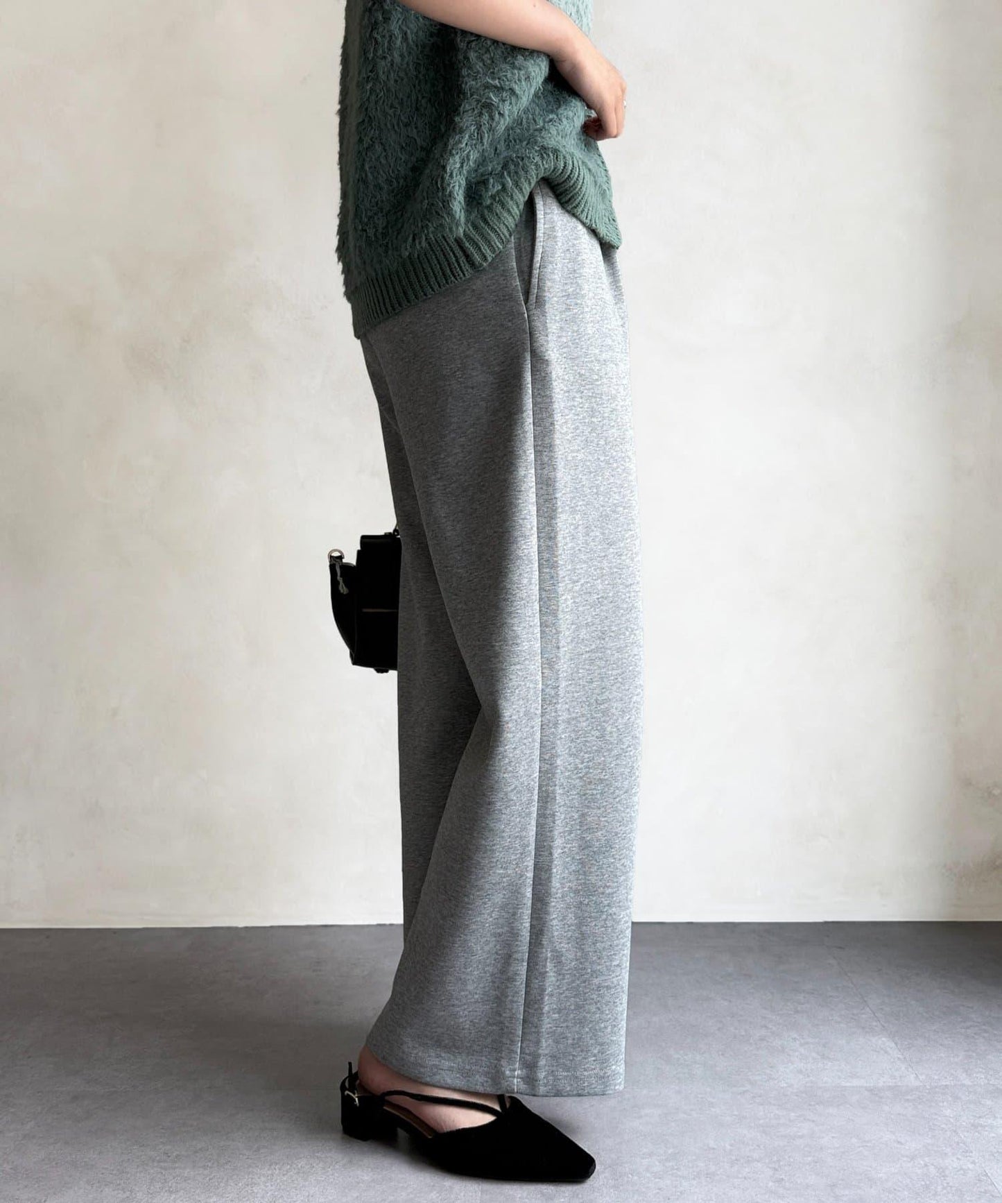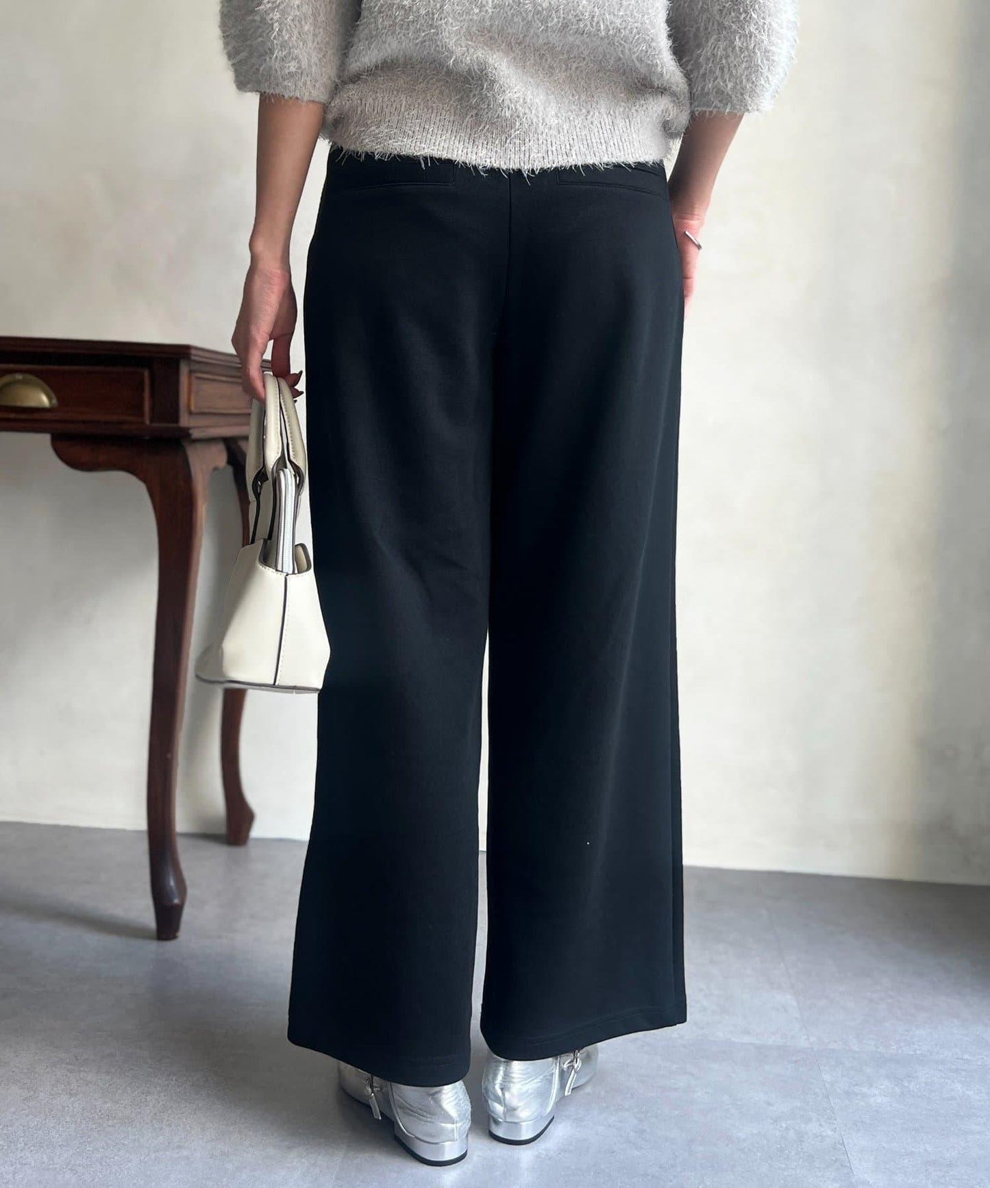 這款運動褲給人休閒的印象,但褶襉覆蓋了腰部和臀部線條,增添了愜意感。