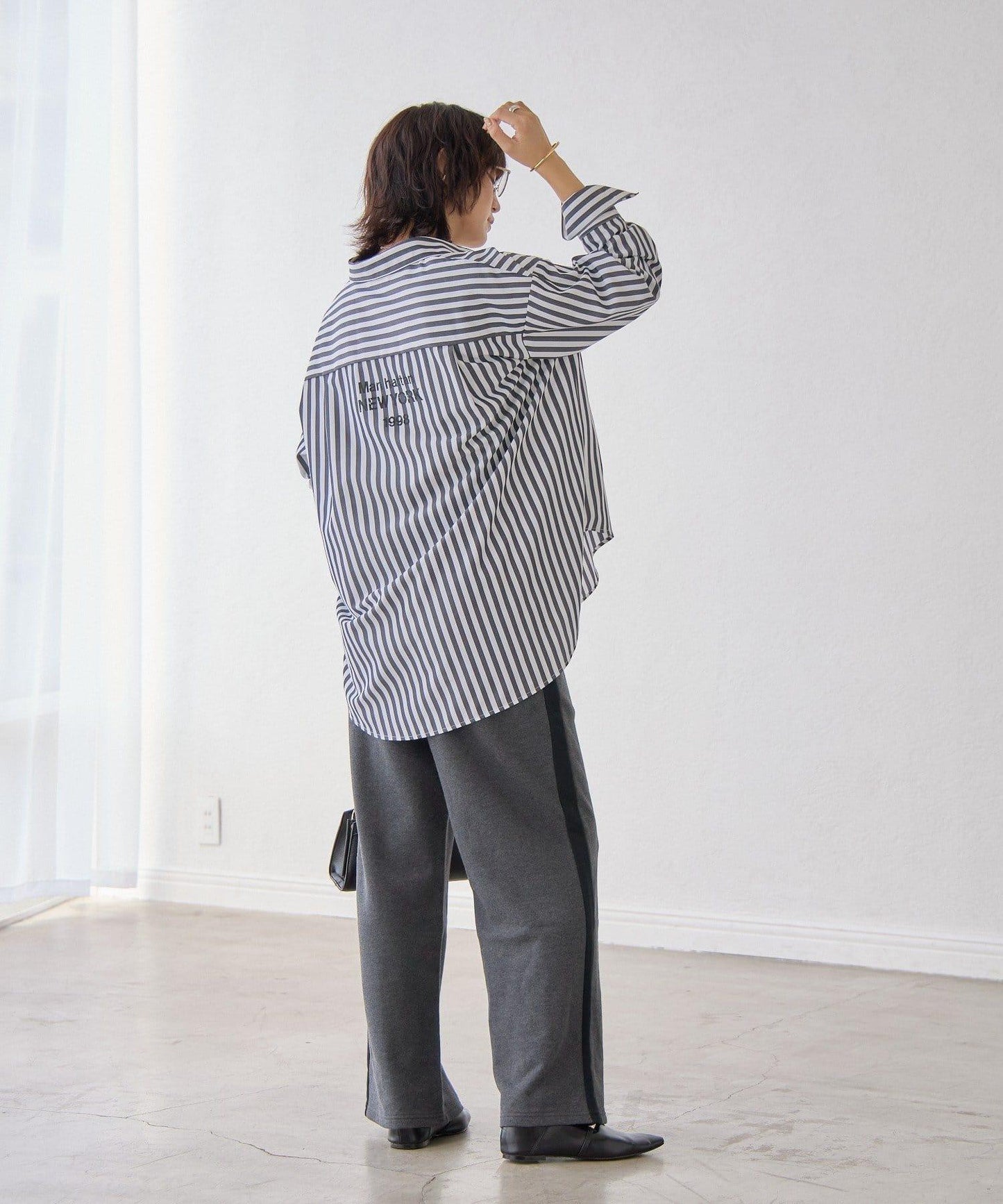【趣味十足】背部印花2WAY條紋襯衫