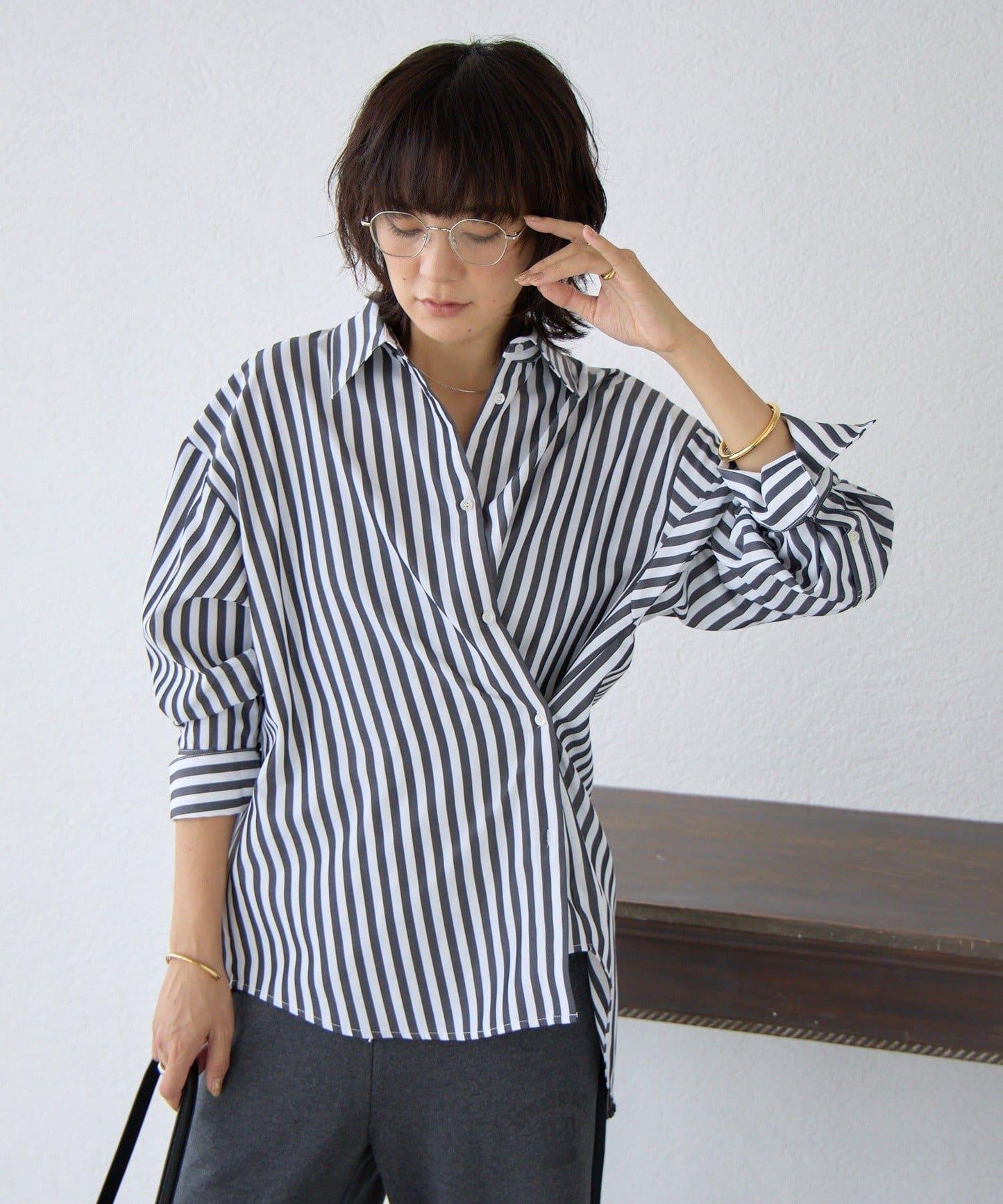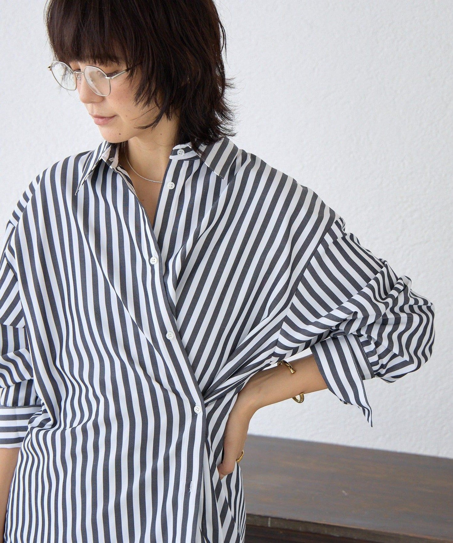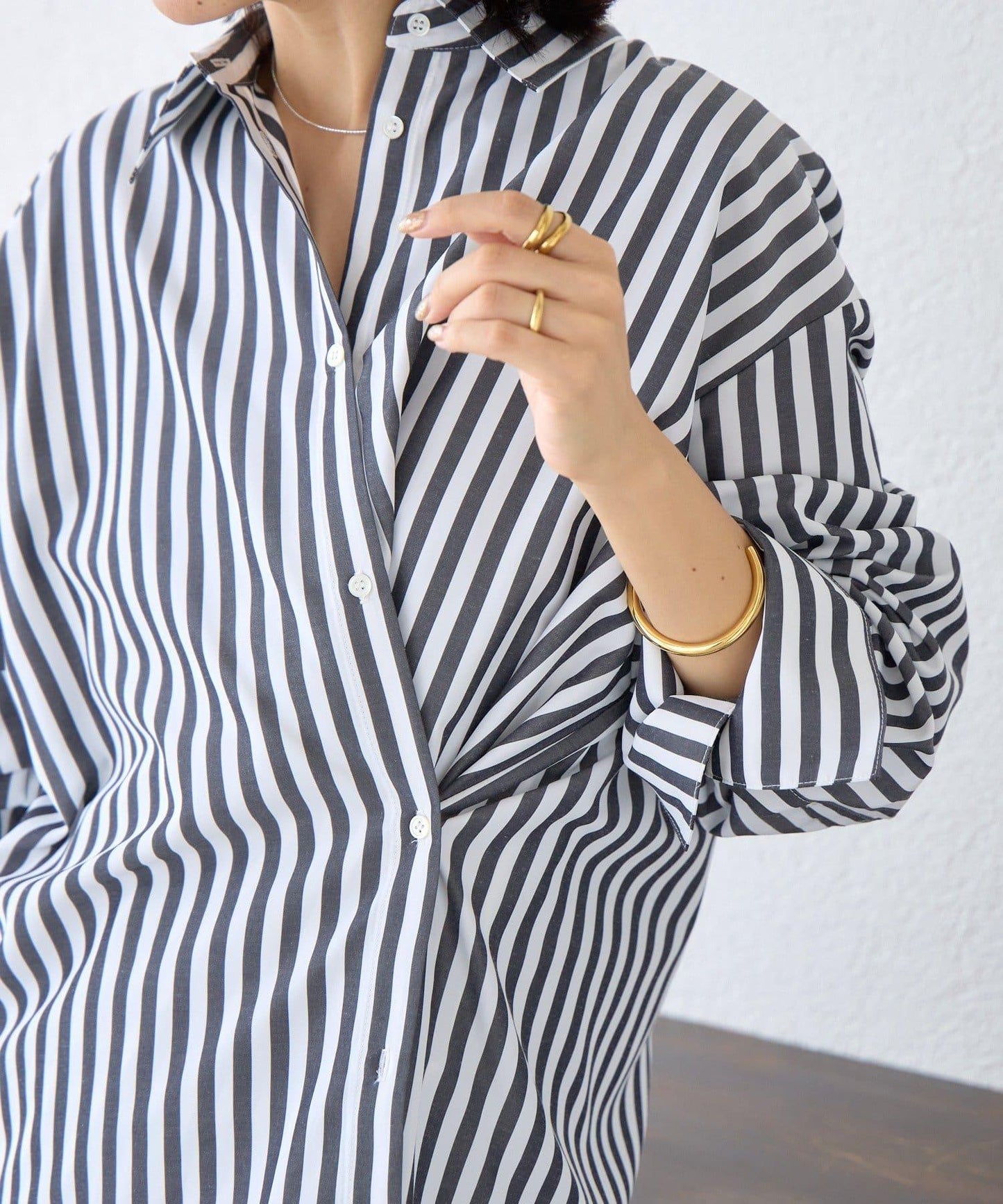 這是一款雙向條紋襯衫,也可作為藏青色設計穿著。