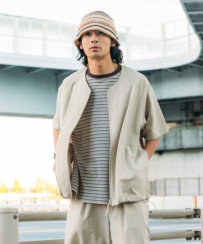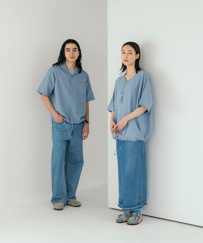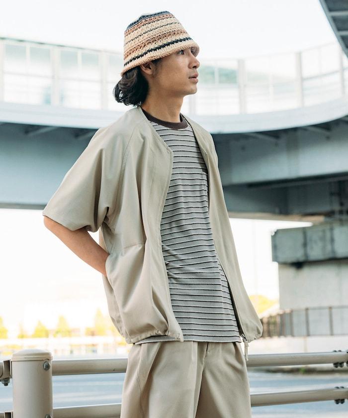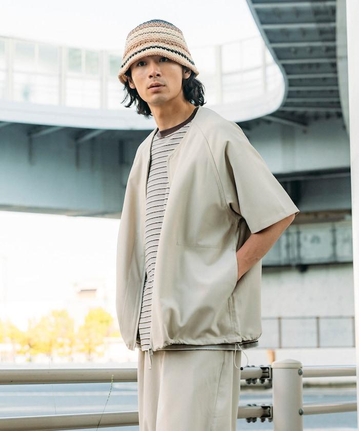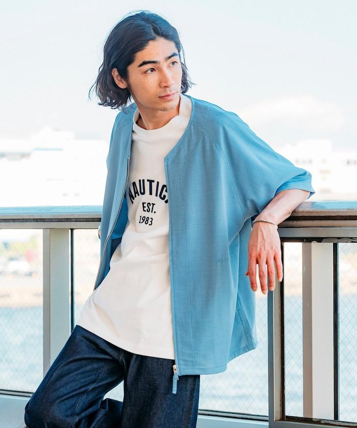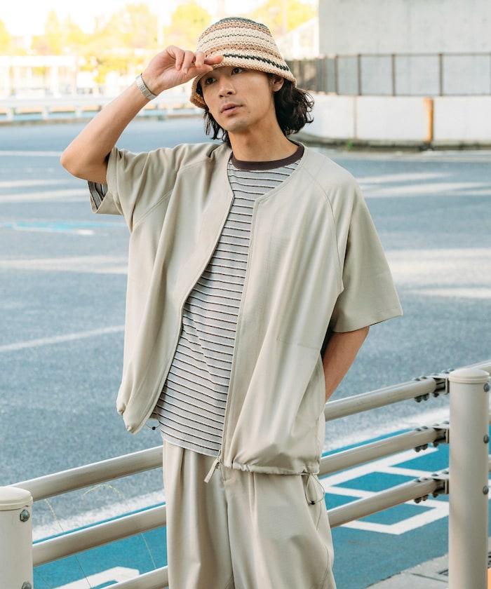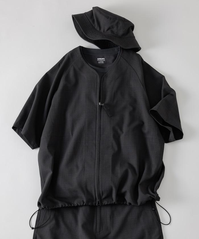 速乾麵料 寬鬆版型 無領棒球衫 短袖 仿亞麻面料