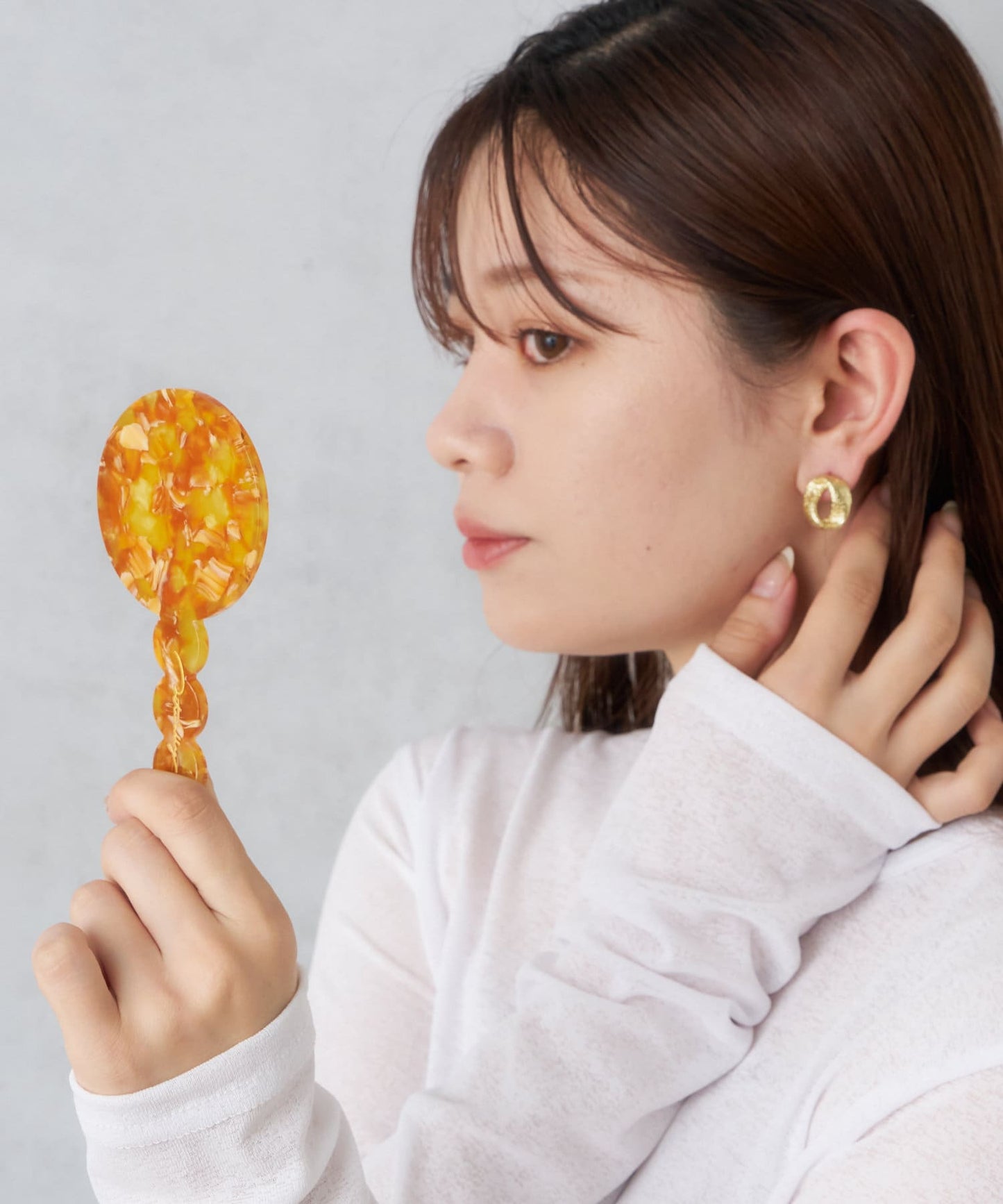 帶有美麗醋酸纖維斑點圖案的小巧鏡子。