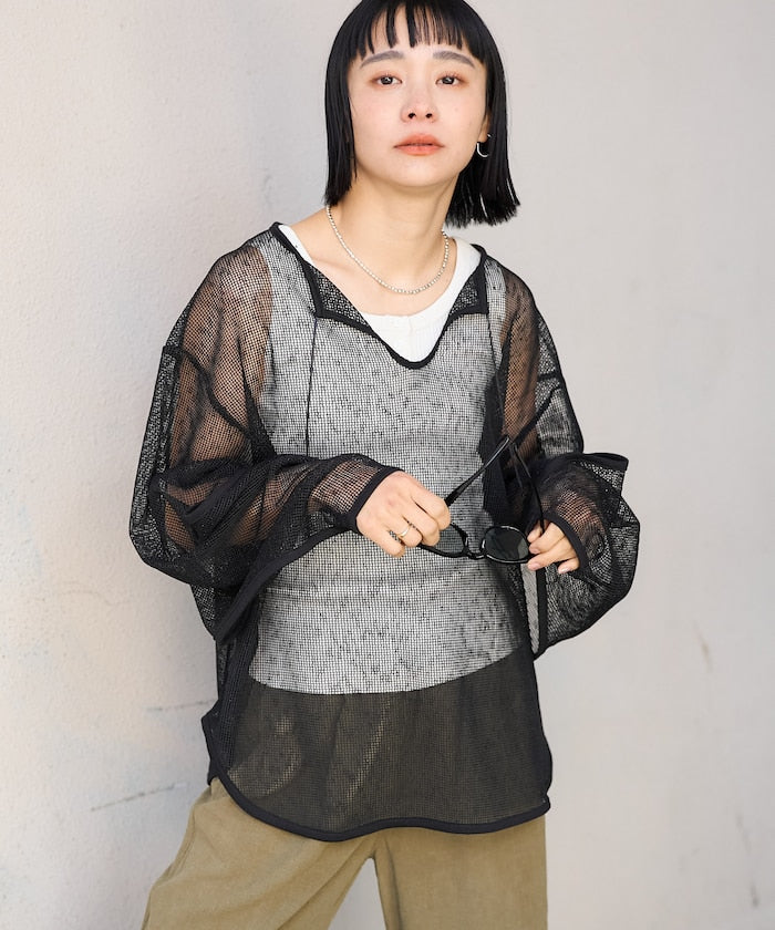 可愛的網眼上衣,寬鬆慵懶的剪裁。