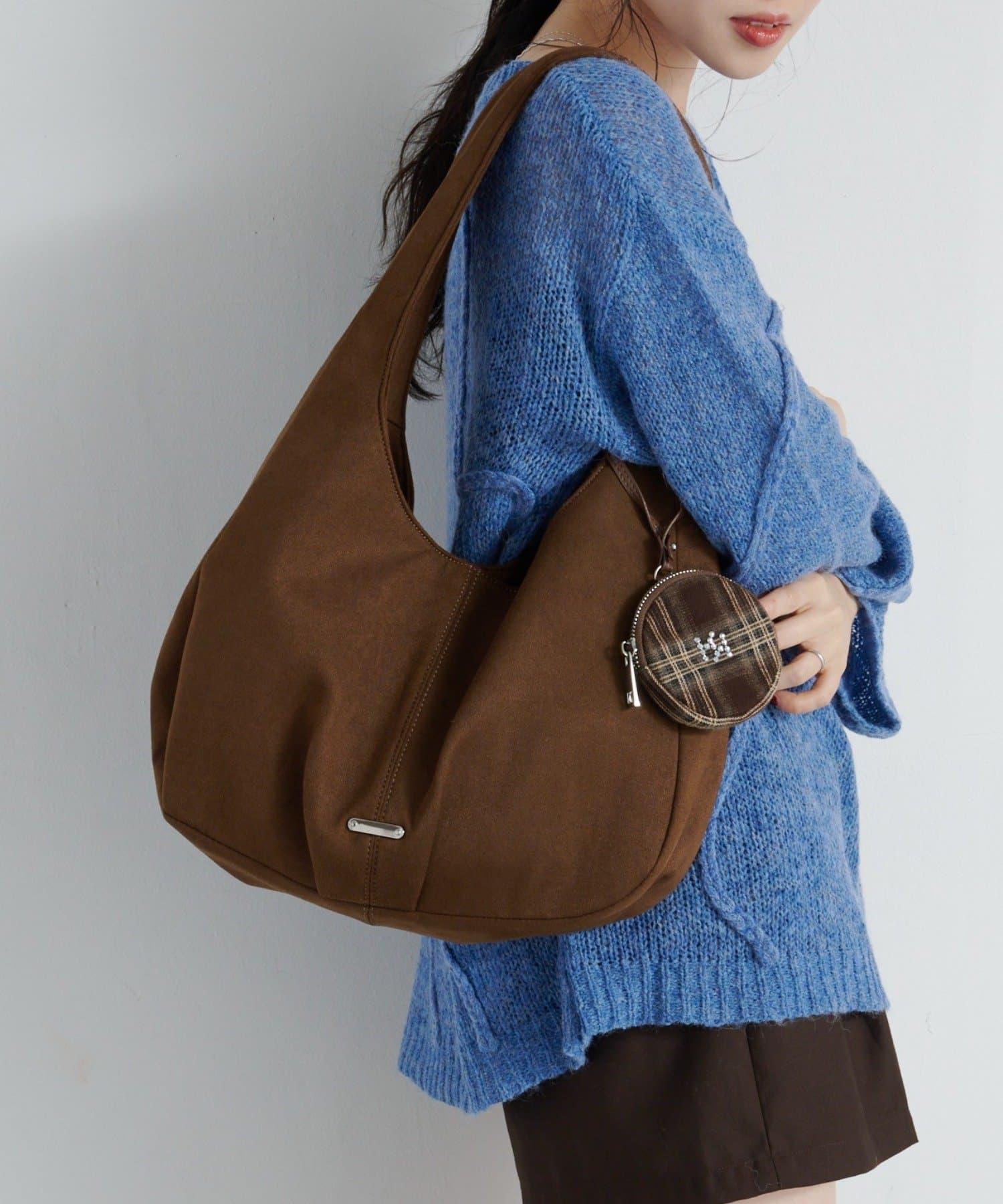 時尚麂皮單肩包,鑲有銀色鉚釘。