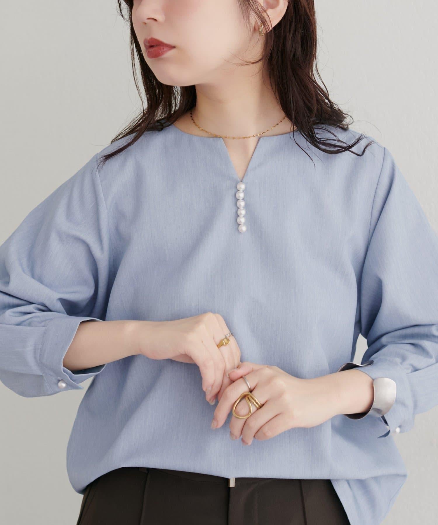 這是一款成人化的優雅上衣,採用適度的 Skipper 設計,領口簡潔大方,並飾有珍珠。