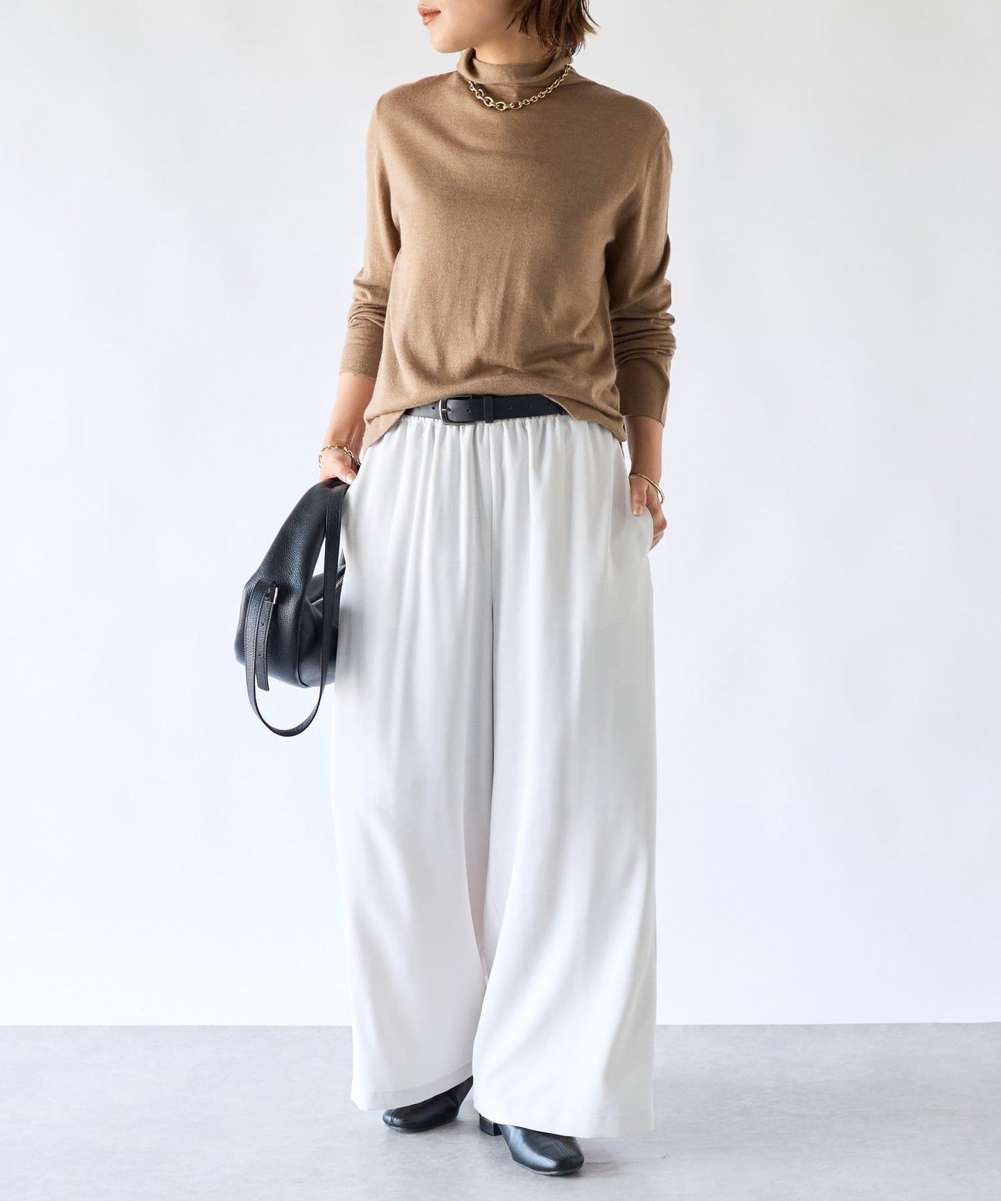 雖然是略帶透明感的薄面料,但即使單穿也不會太貼身的精緻尺寸感,讓它成為一件容易搭配的單品。