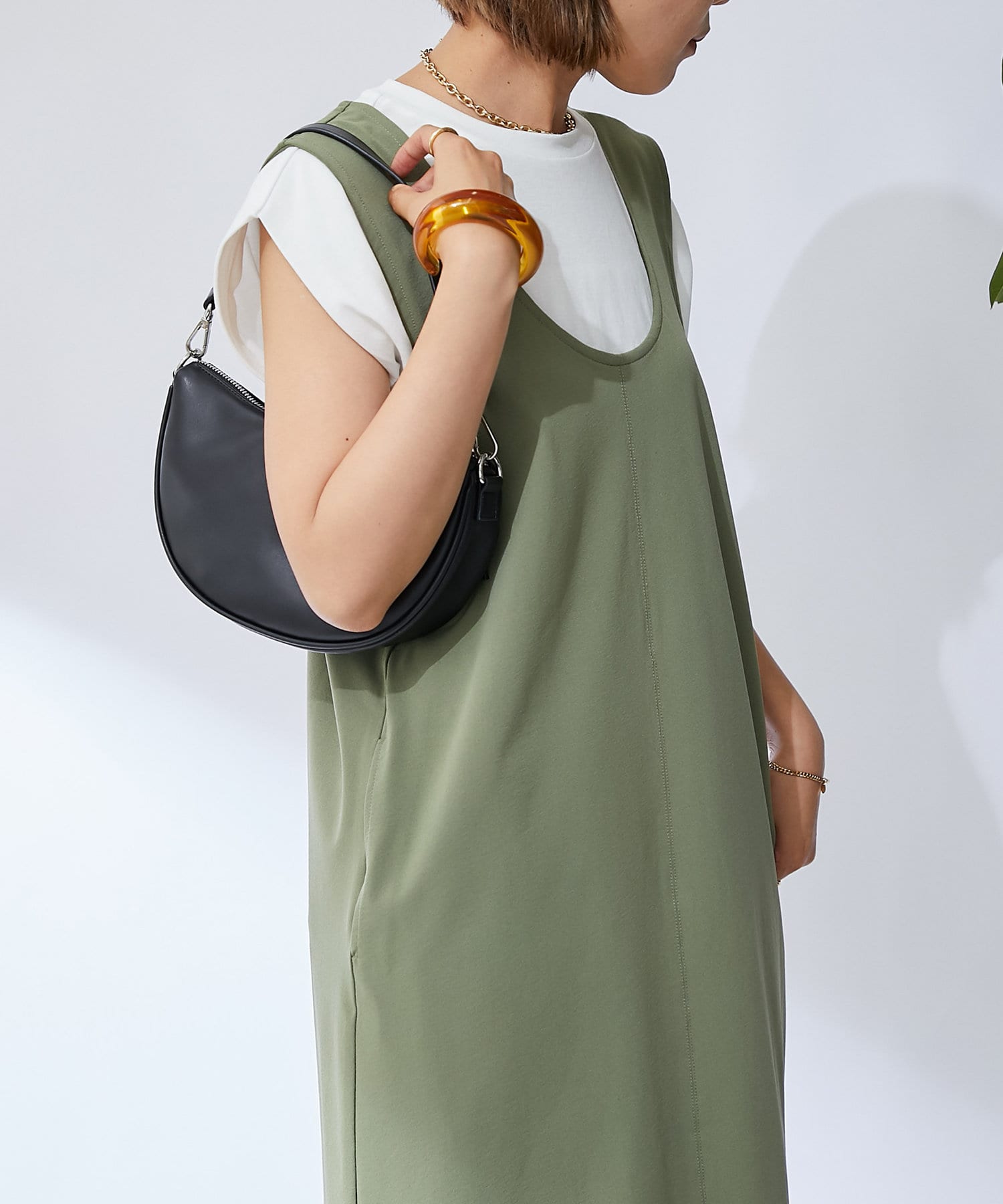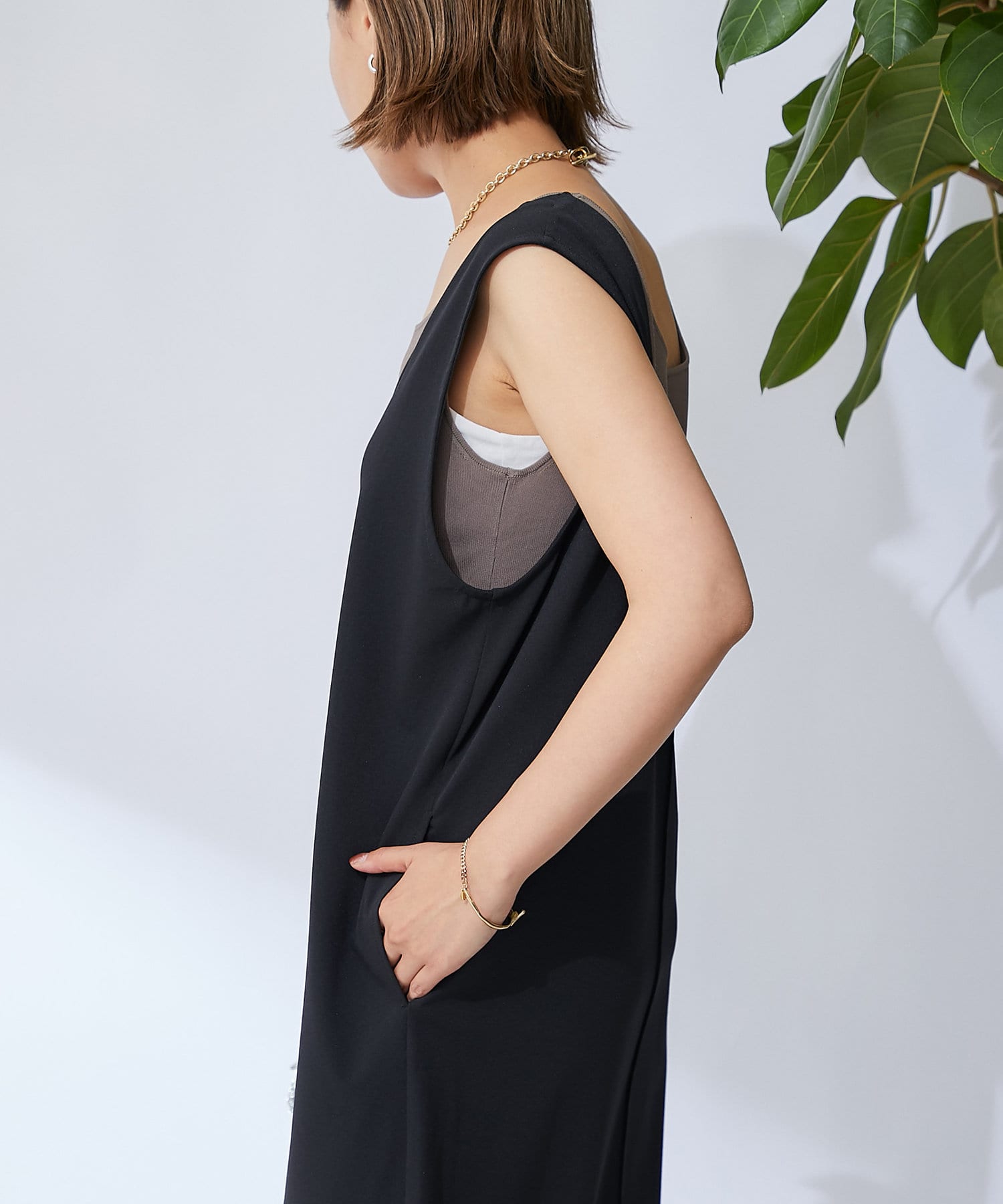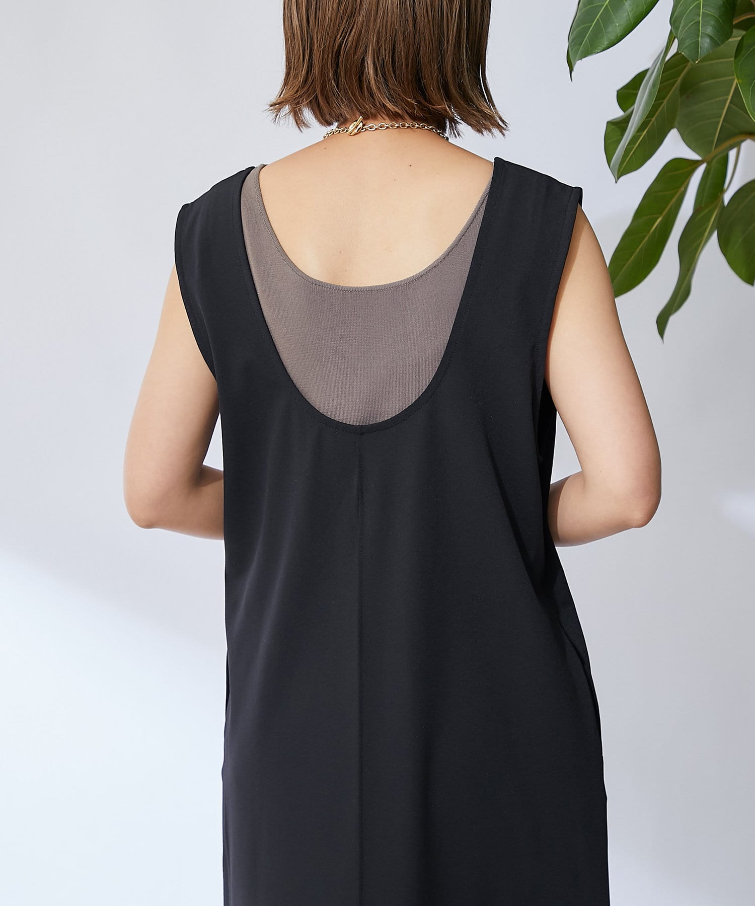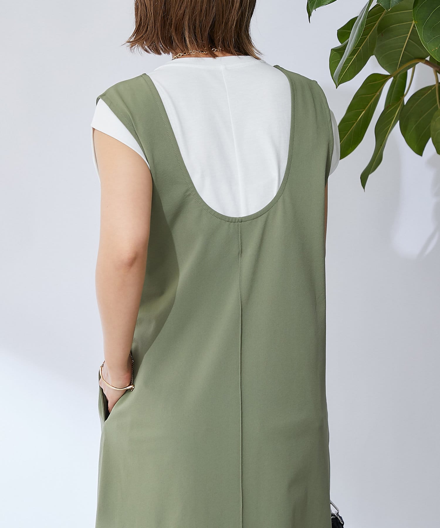 深開的 U 領讓身體線條看起來簡潔時尚。