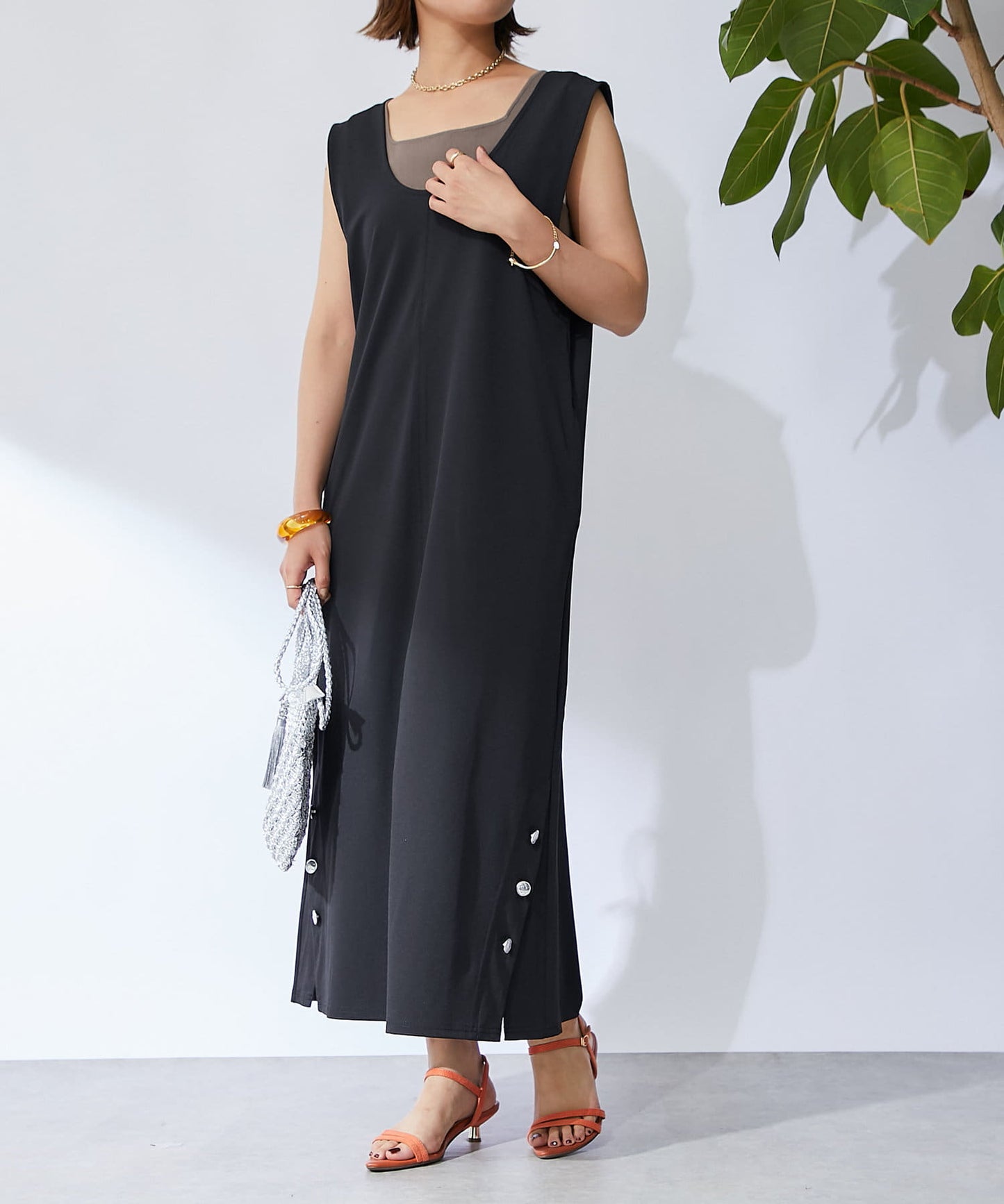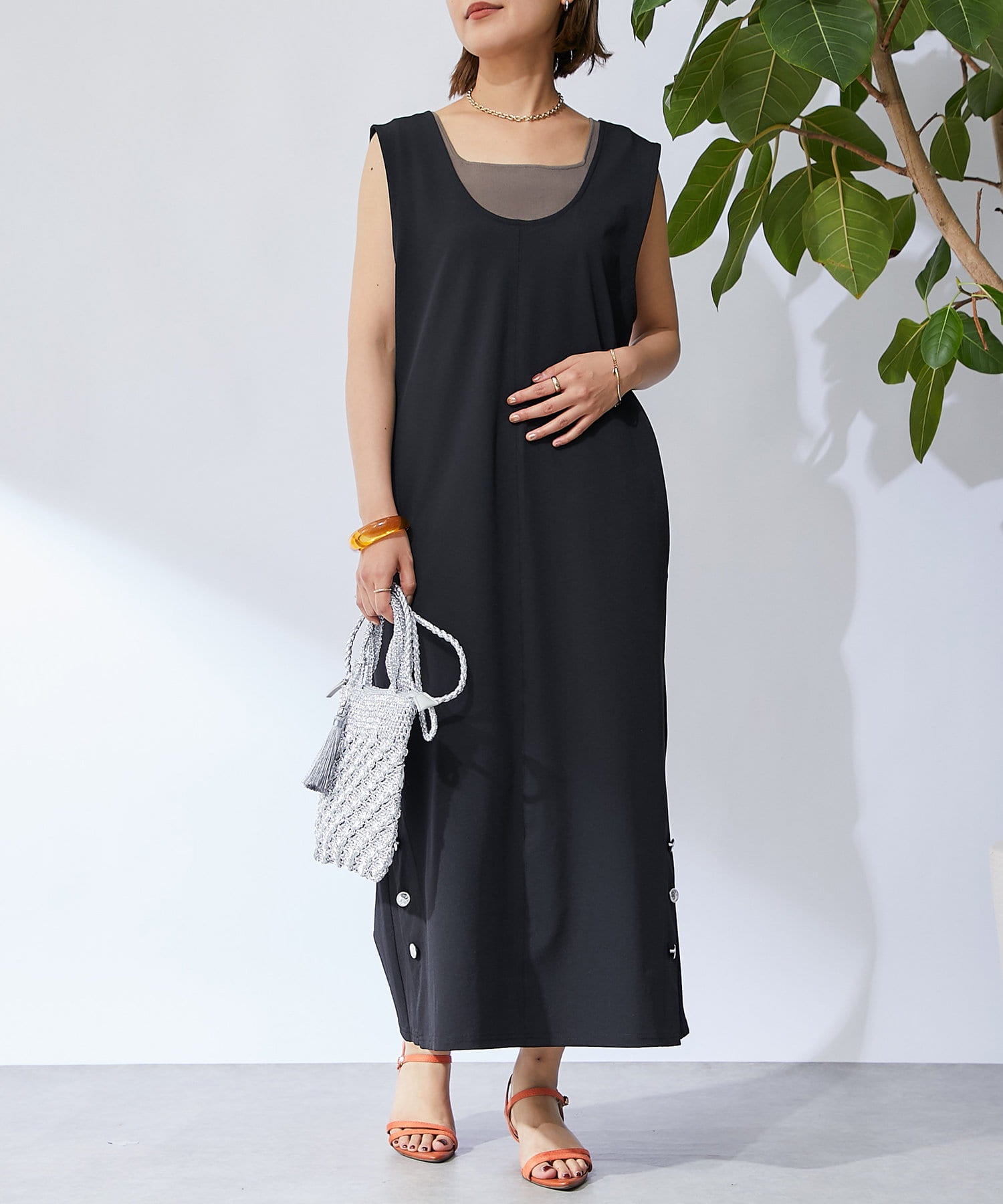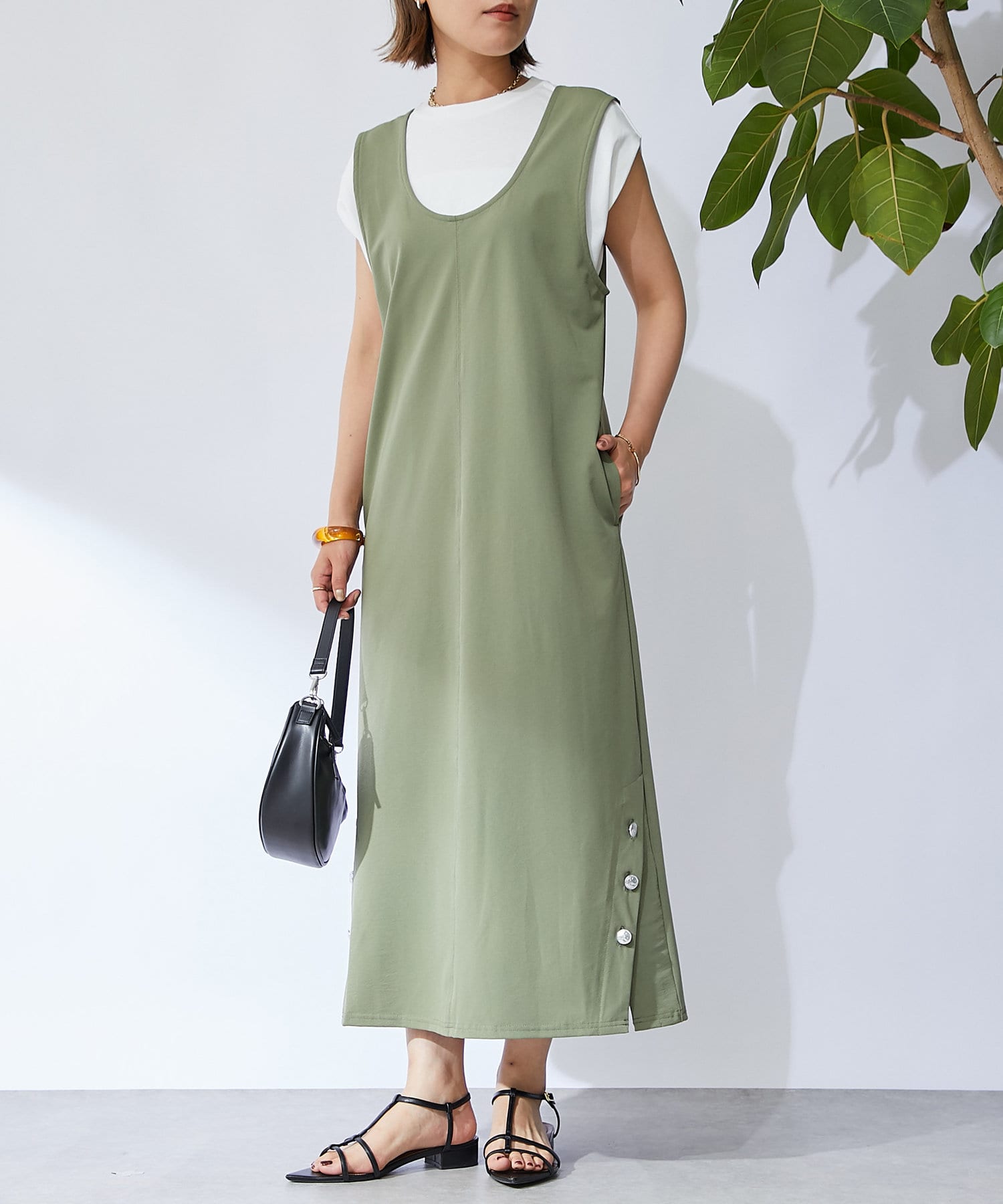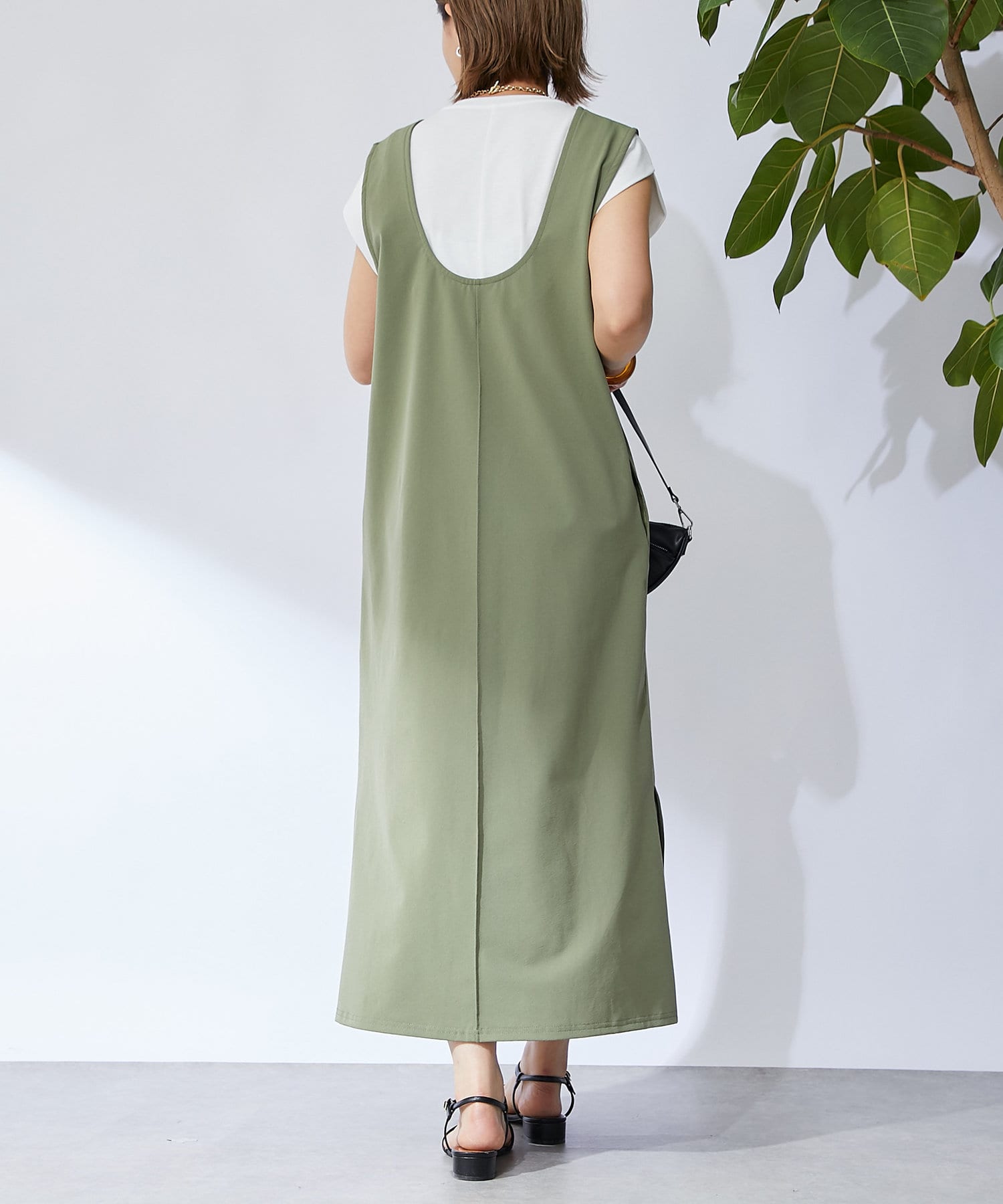 深開的 U 領讓身體線條看起來簡潔時尚。