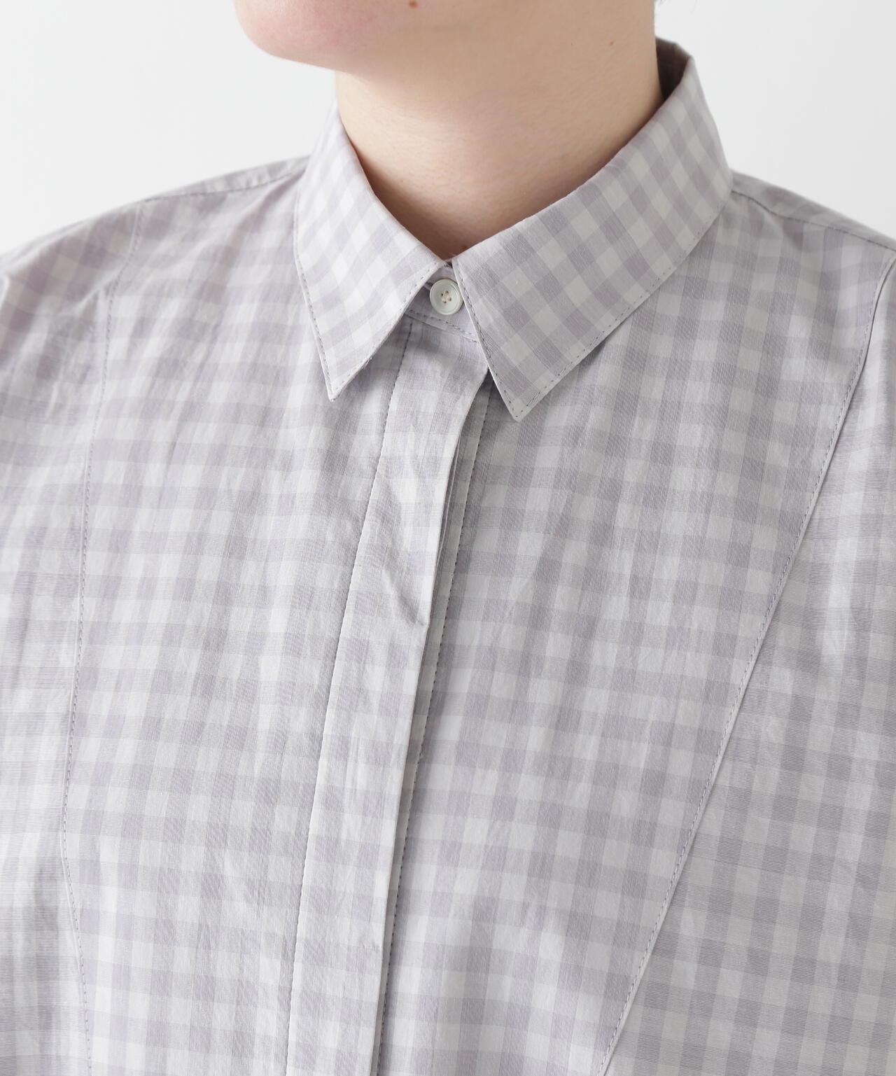 一款適合任何場合的連衣裙 [設計要點] 這款連衣裙看起來就像一件傳統的、看起來整潔的襯衫,胸部被拉長,變成了一個繭形輪廓。法式袖子的設計讓人感覺不太嚴肅。格子布經過 Omi 漂白工藝漂白,呈現出自然的紋理和復古的外觀。純色採用高支斜紋面料,手感奢華。這款單品的長度較長,可以整齊地作為單件穿著,搭配涼鞋或運動鞋,打造輕便造型。