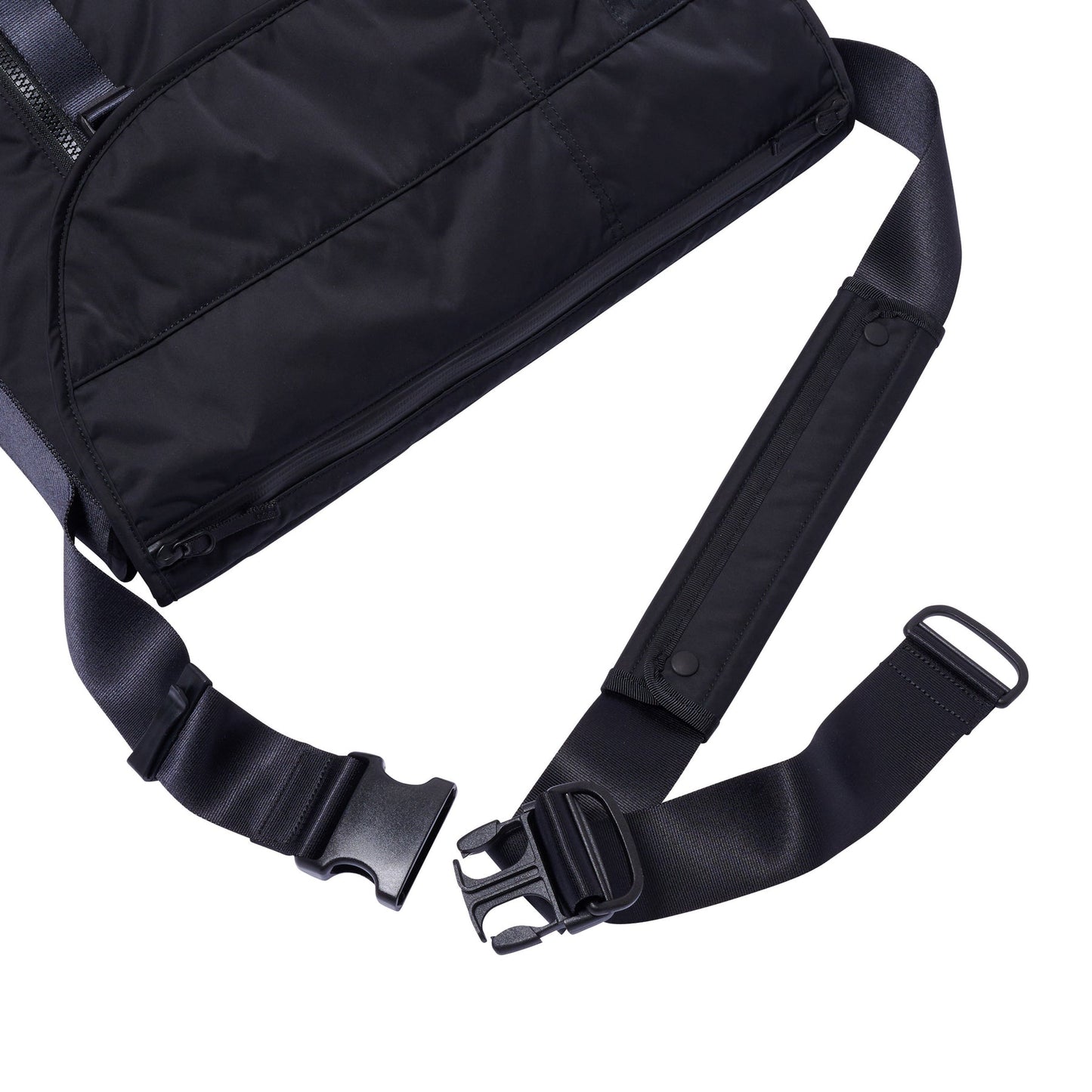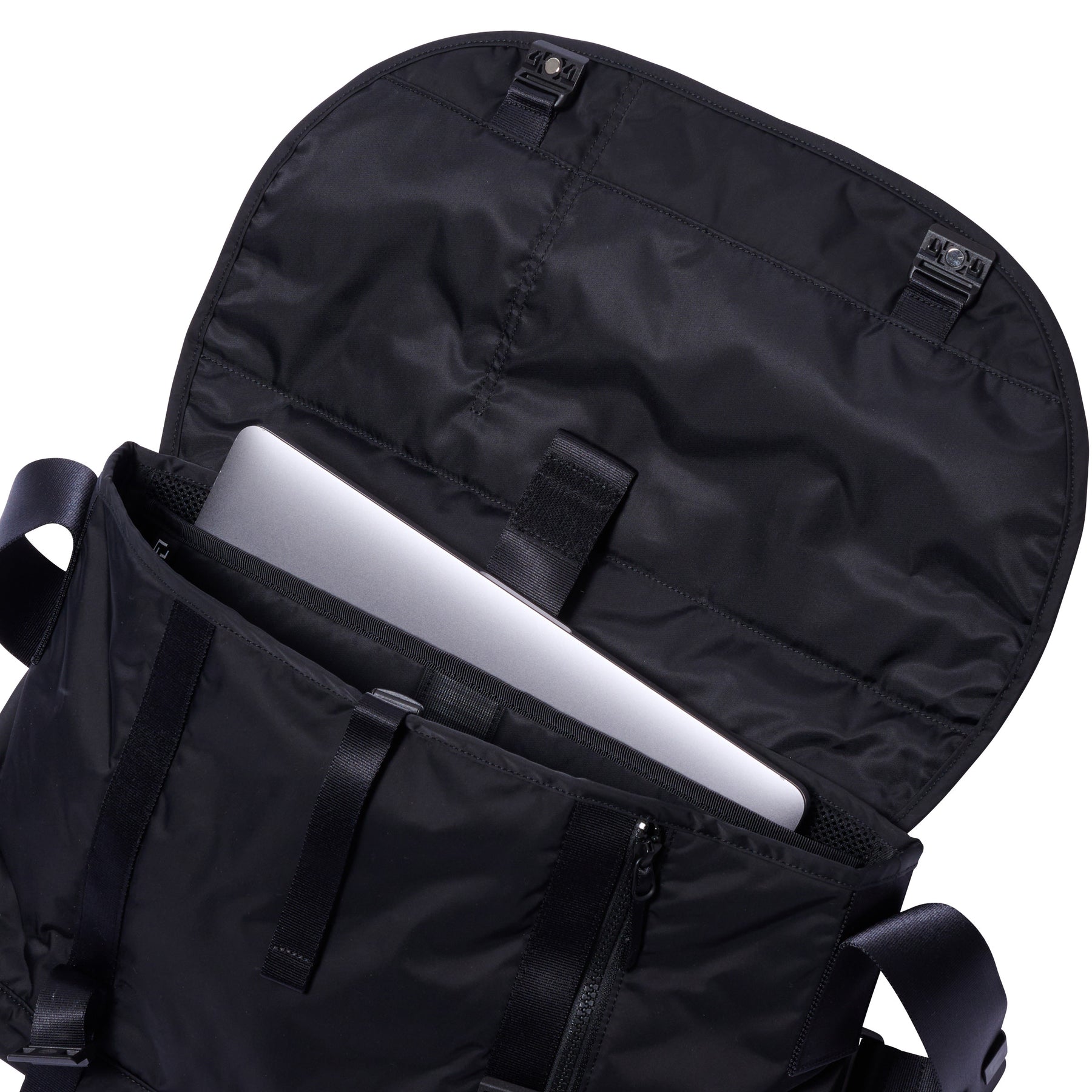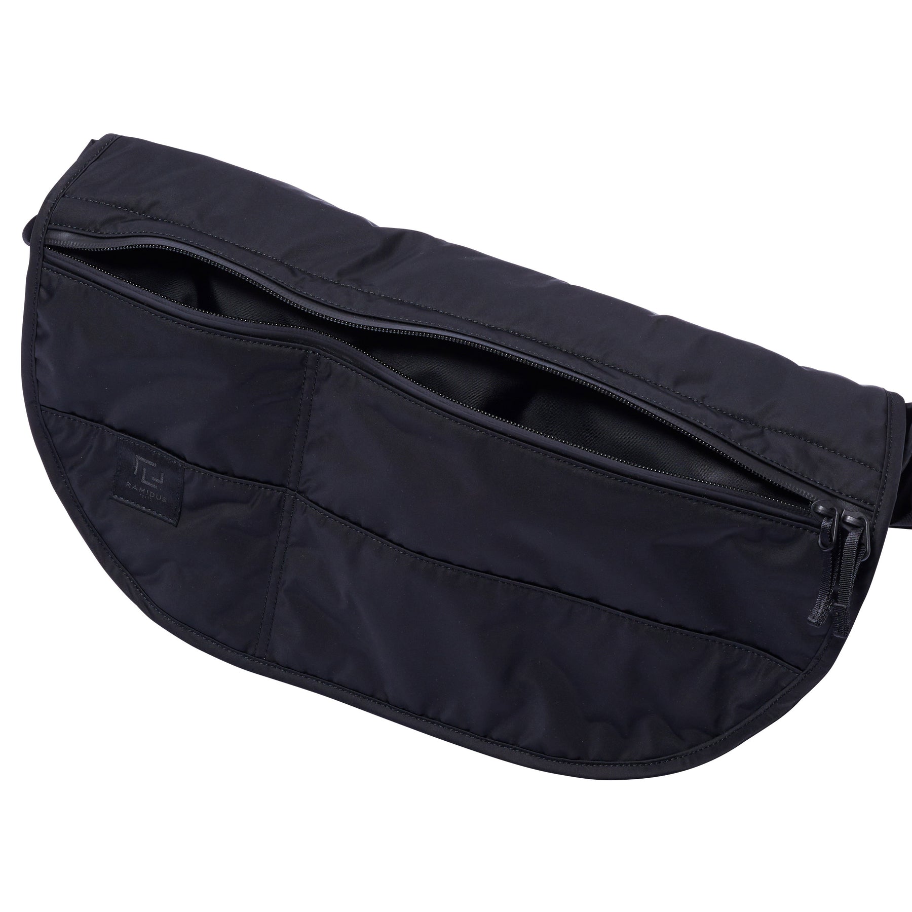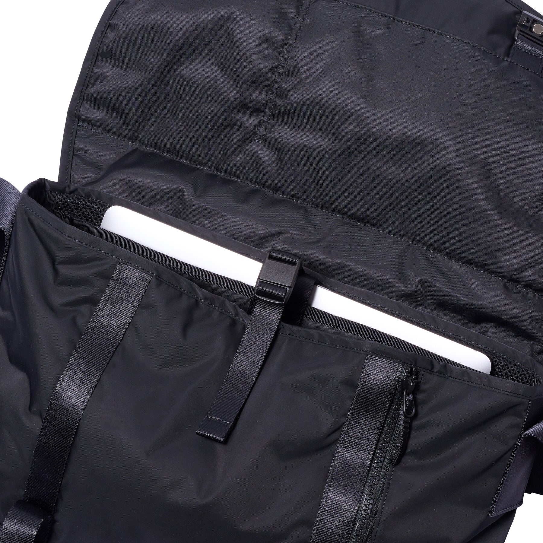 斜挎包適合攜帶筆記本電腦、平板電腦、文件和其他商務工具。這款包的設計注重佩戴時的開合和收納,除主隔層外,正面還有一個可從兩側進入的拉鍊口袋,翻蓋下的拉鍊口袋足以容納一臺平板電腦。寬肩帶的設計緊貼身體,無論在什麼場合都能保持穩定貼合。