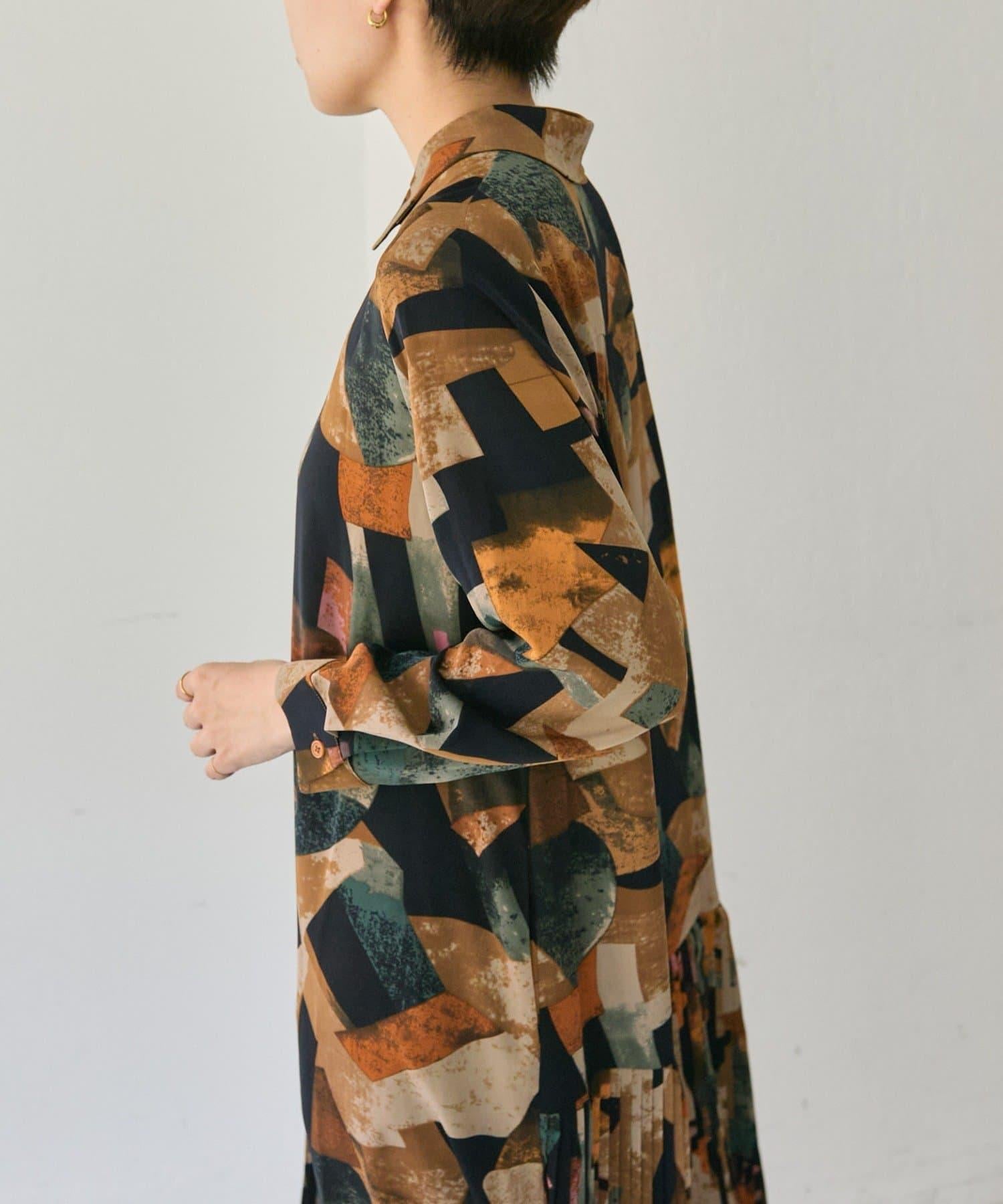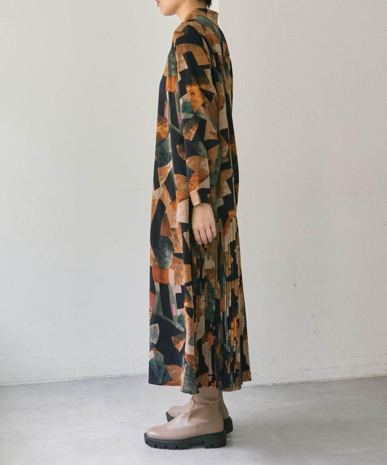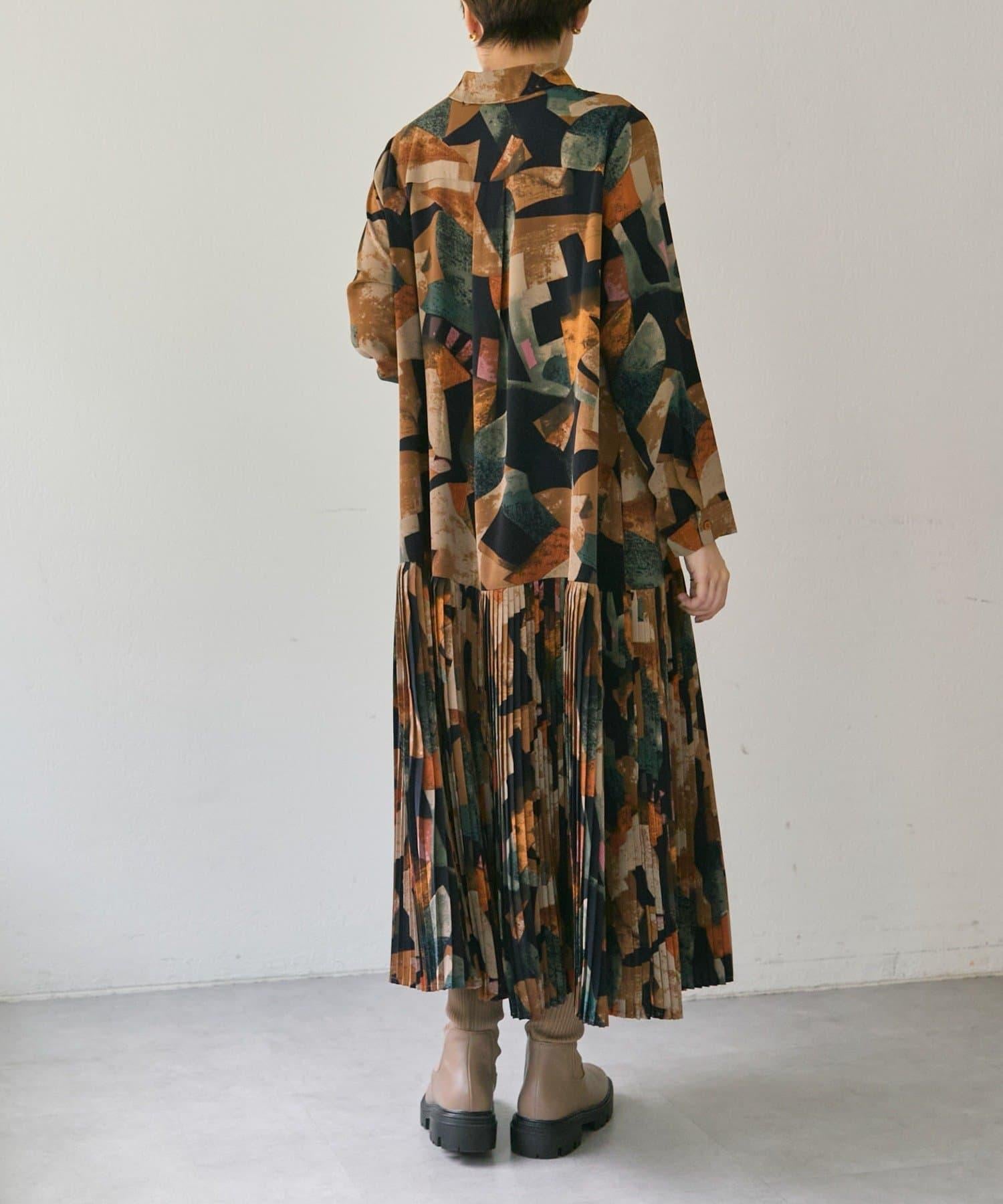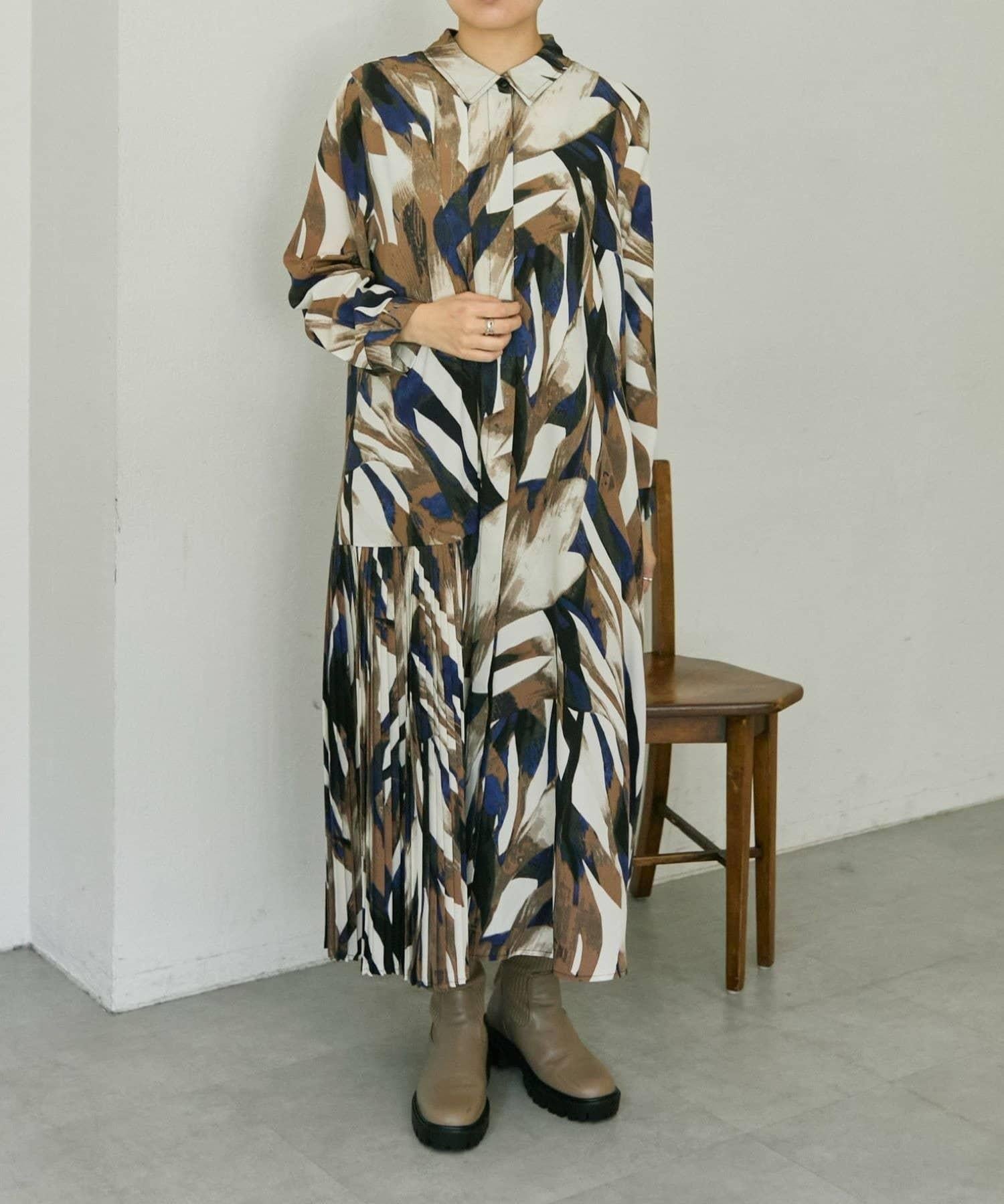 《1枚定型/全印花》帶領褶皺連衣裙【SUM1 STYLE(スミスタイル)】