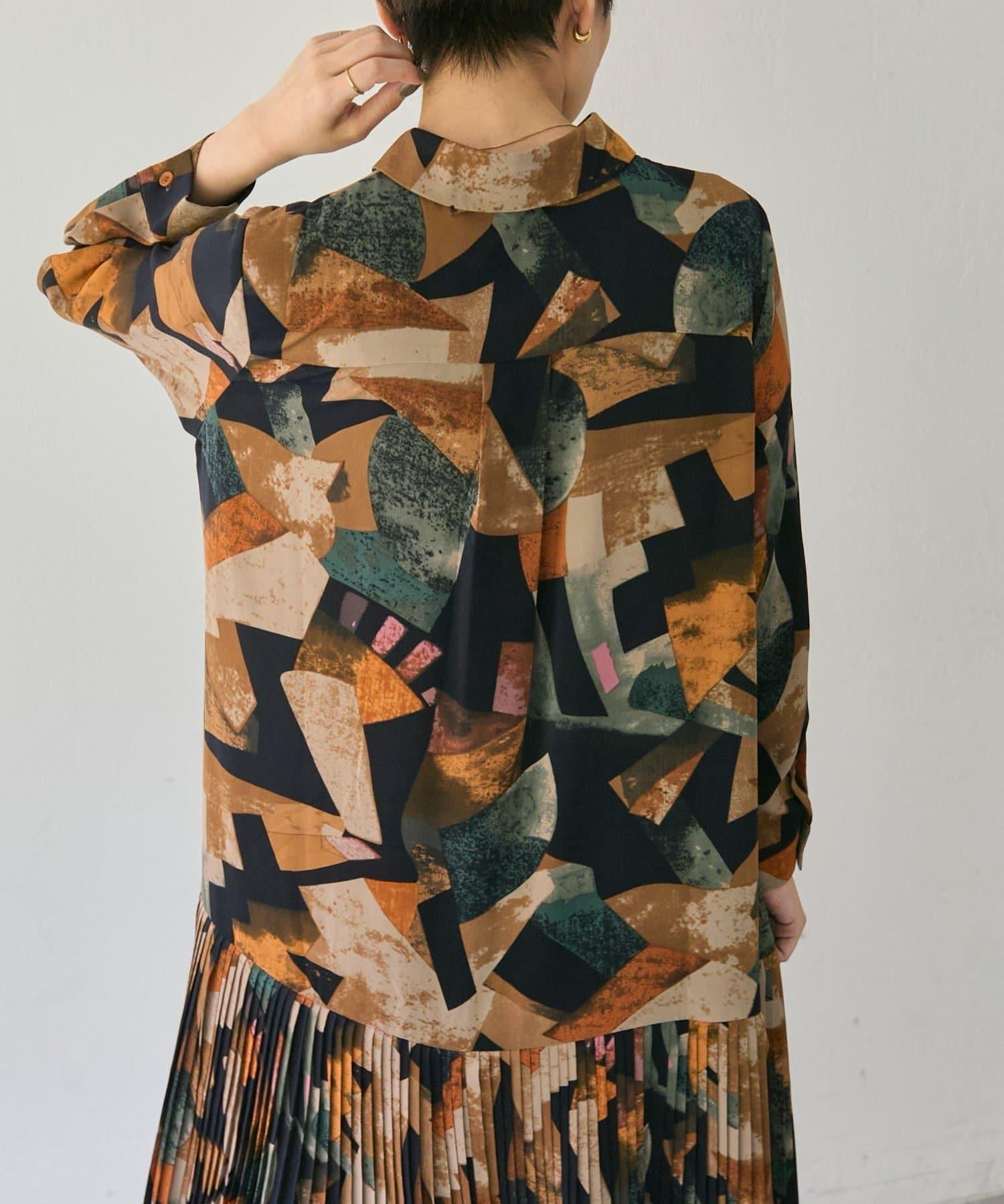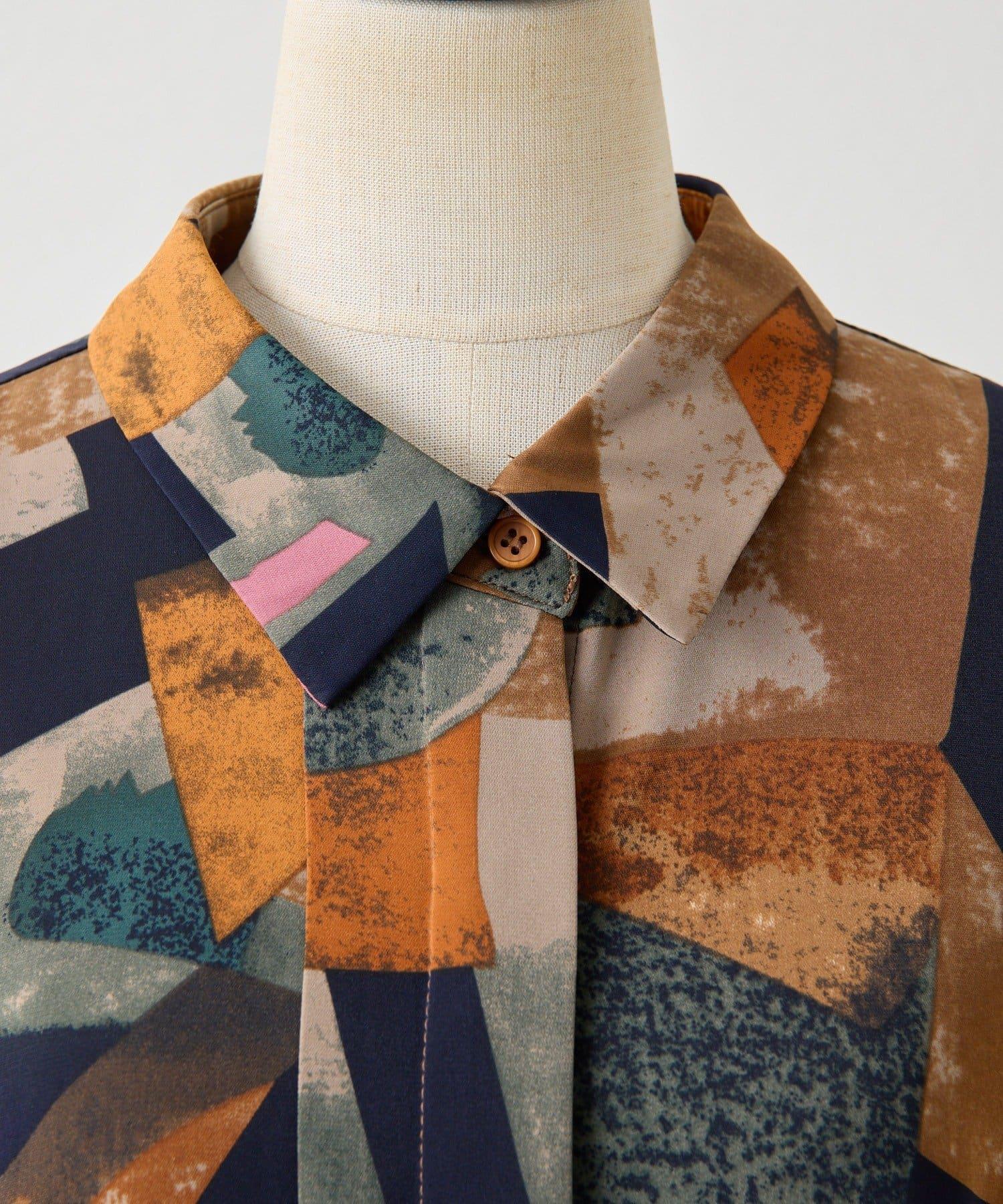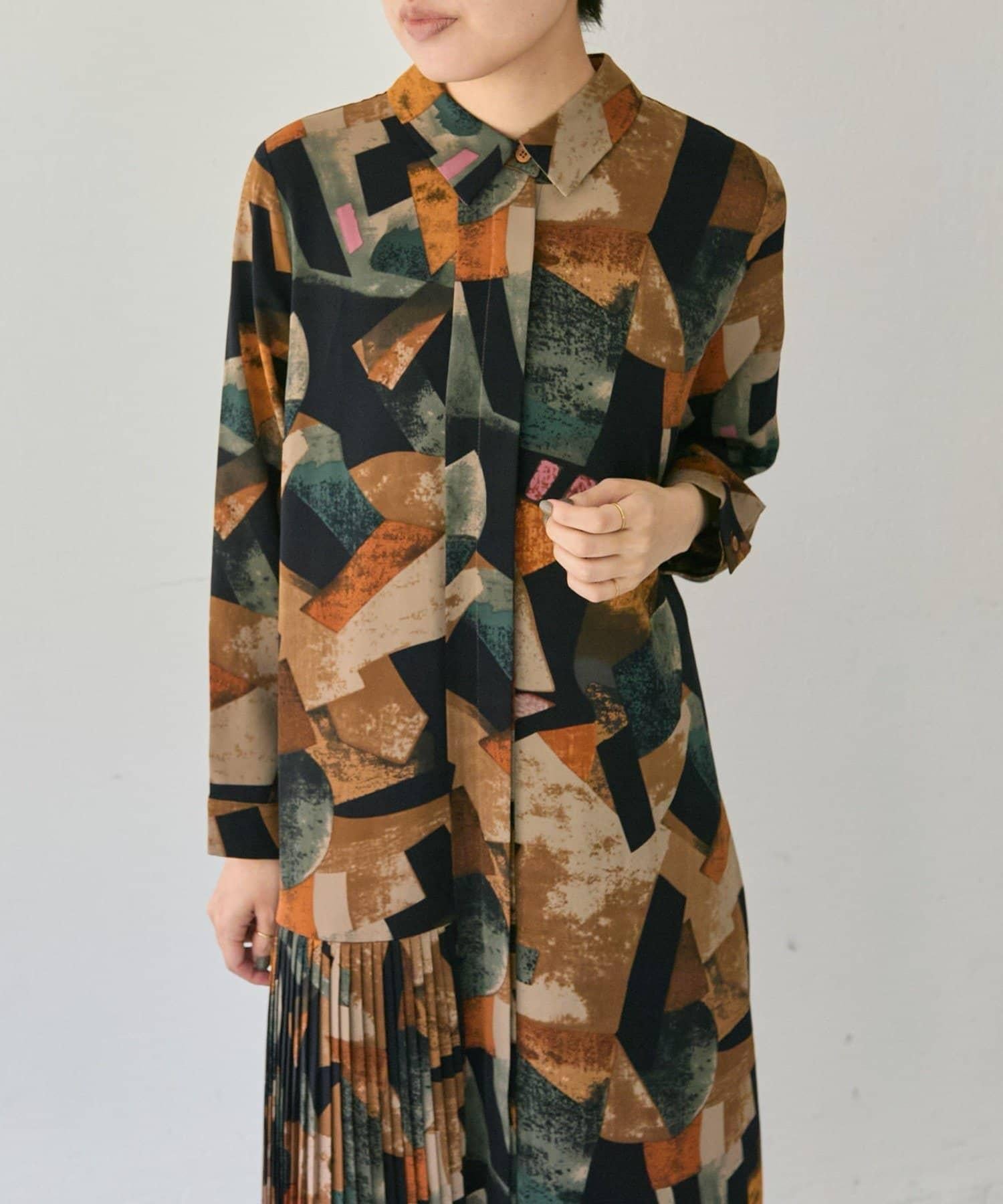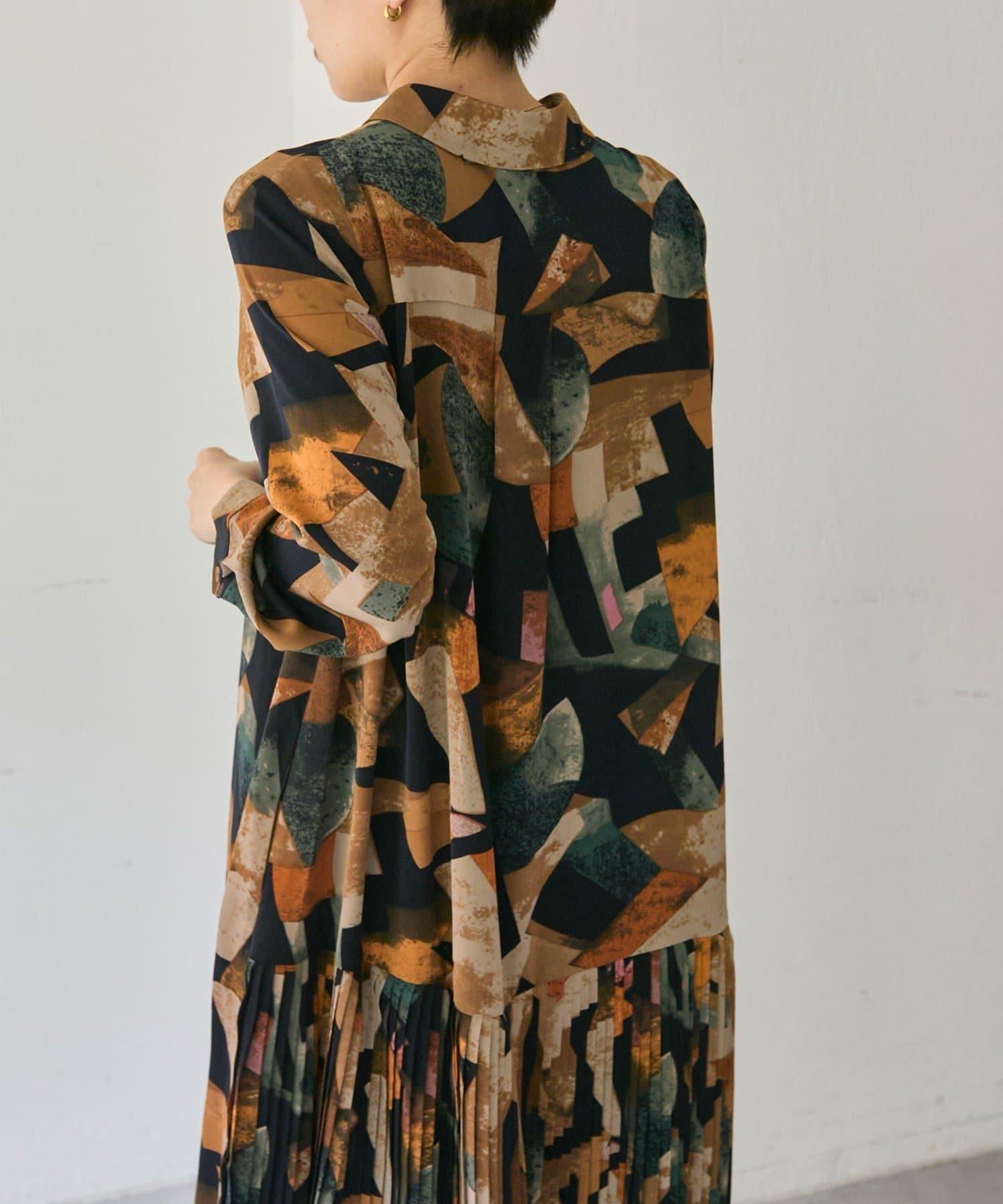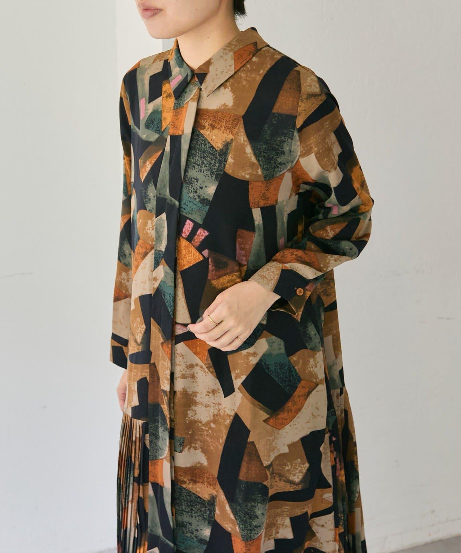 《1枚定型/全印花》帶領褶皺連衣裙【SUM1 STYLE(スミスタイル)】