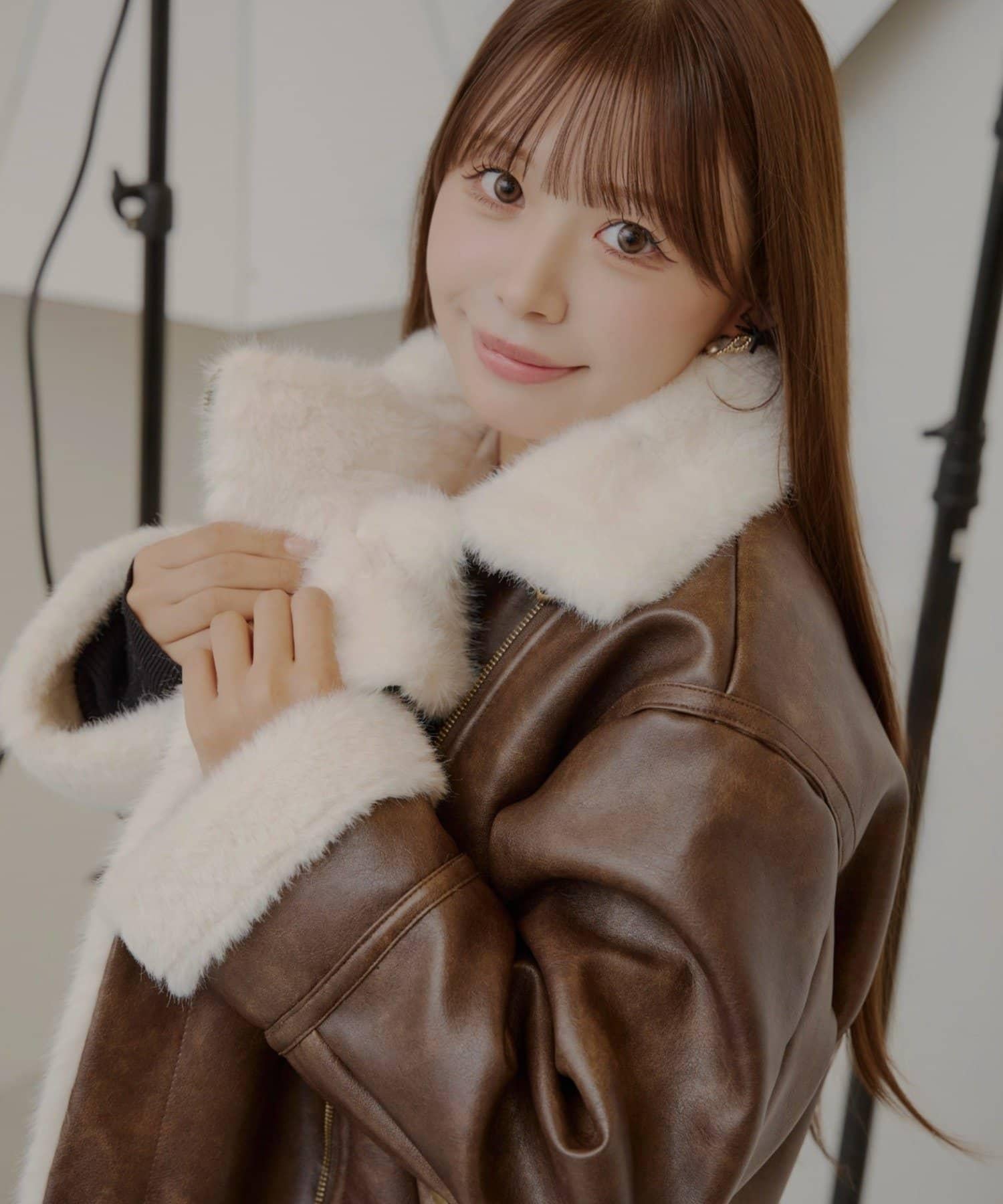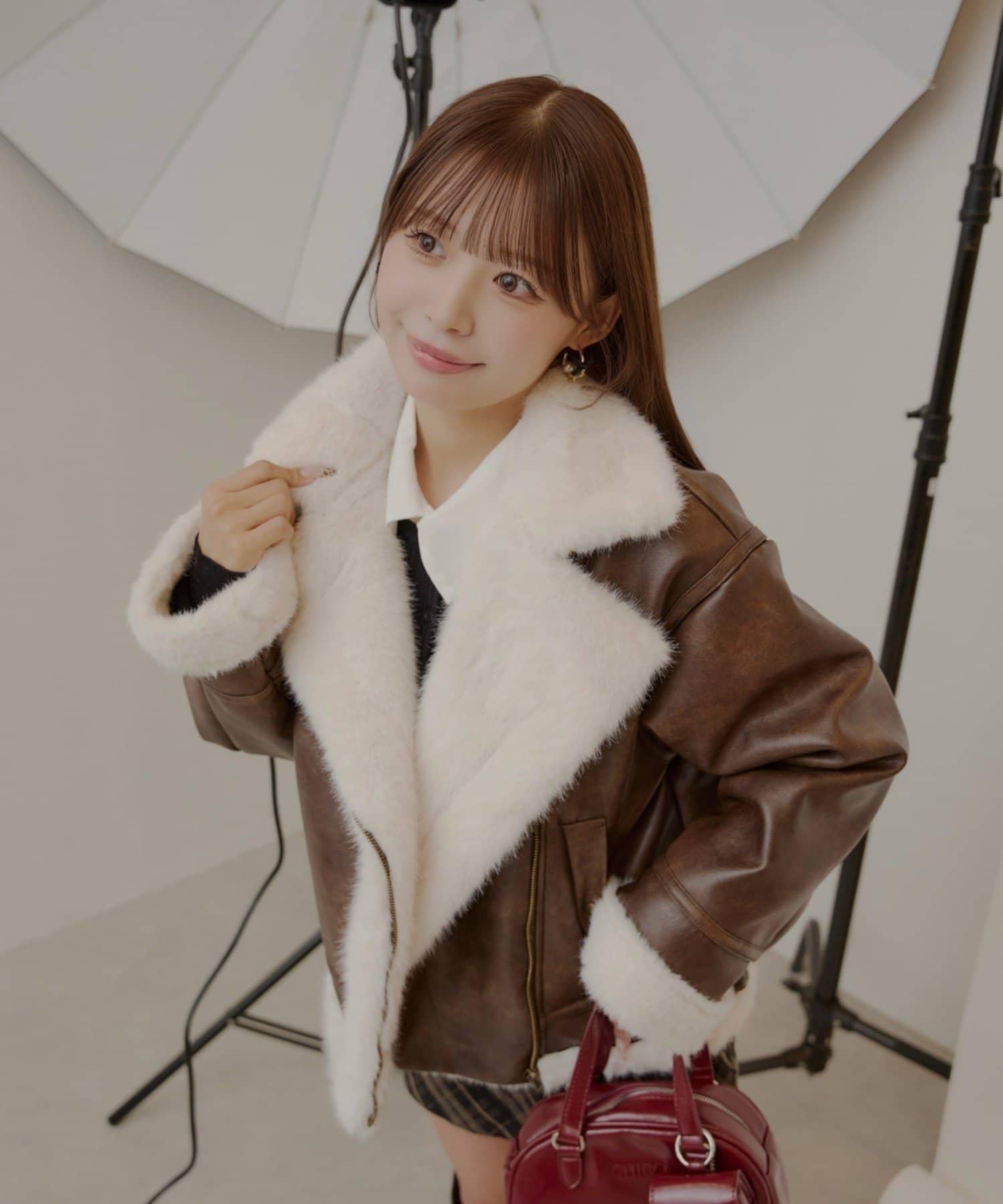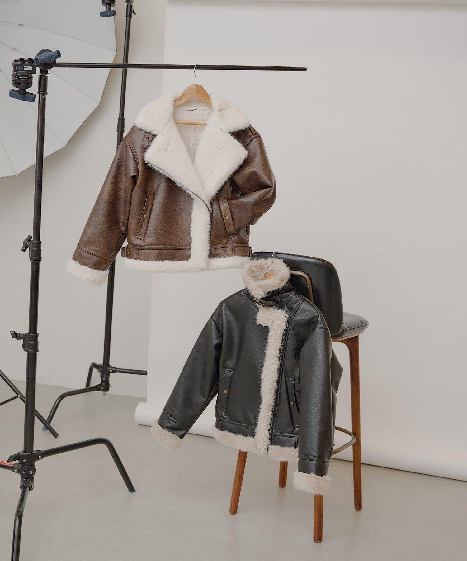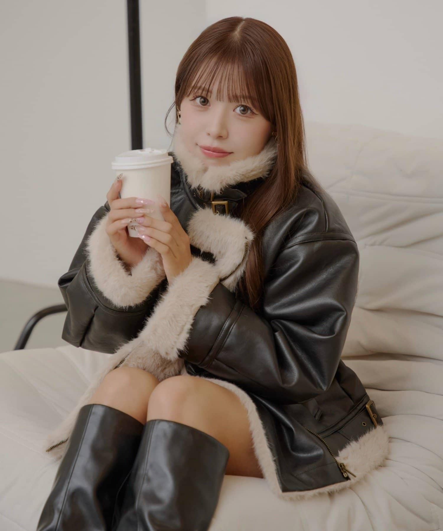 10月23日(週四)0點開售【ゆっぴ聯名企劃】仿毛皮短款機車夾克