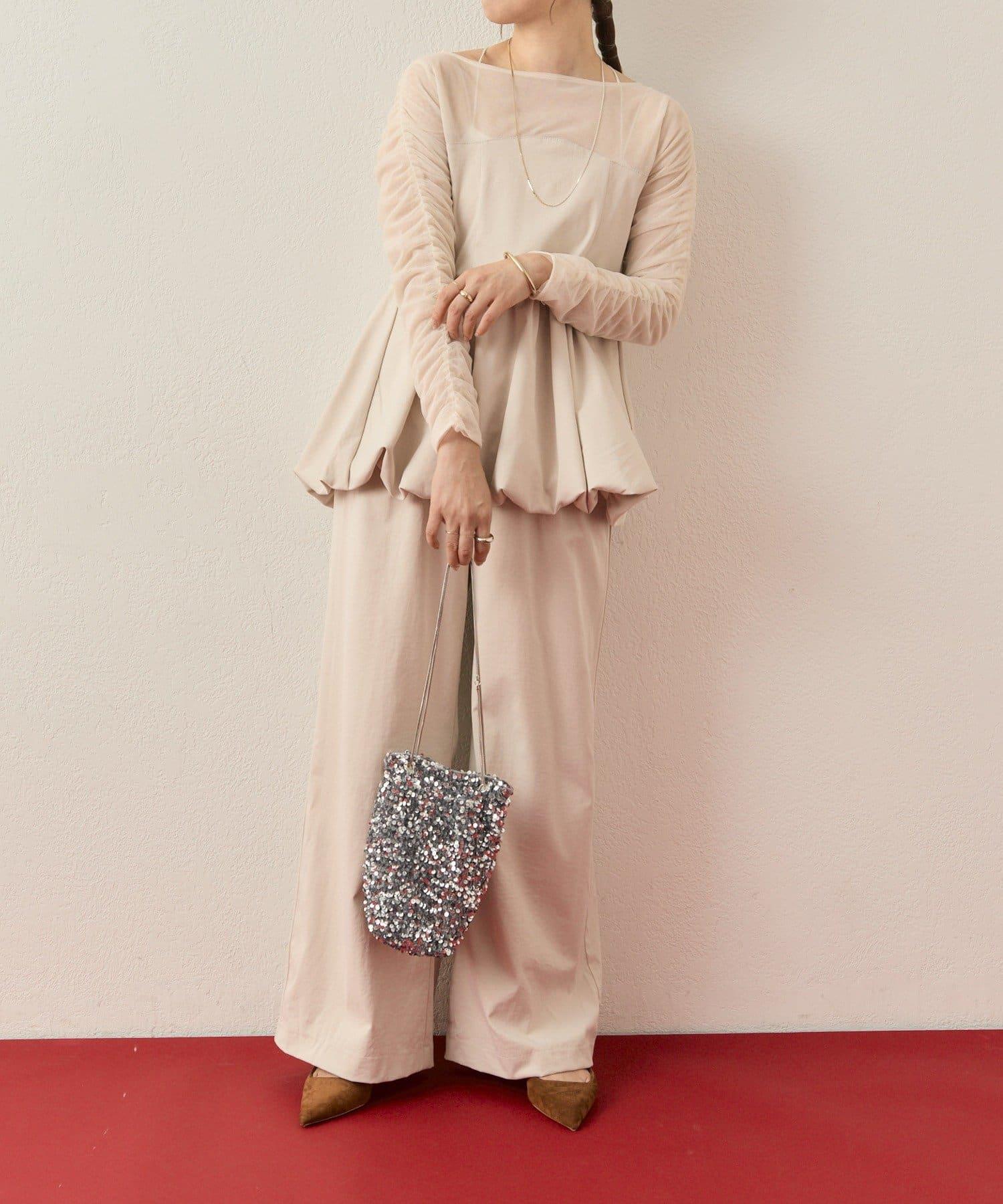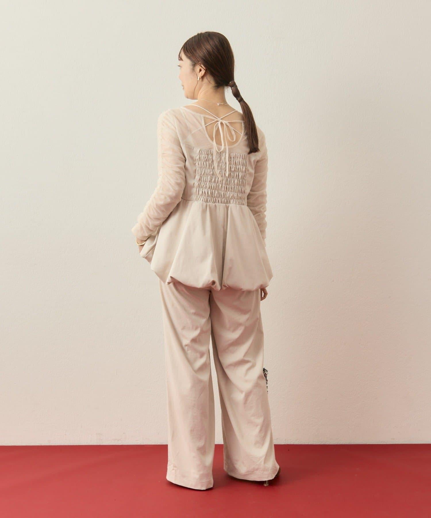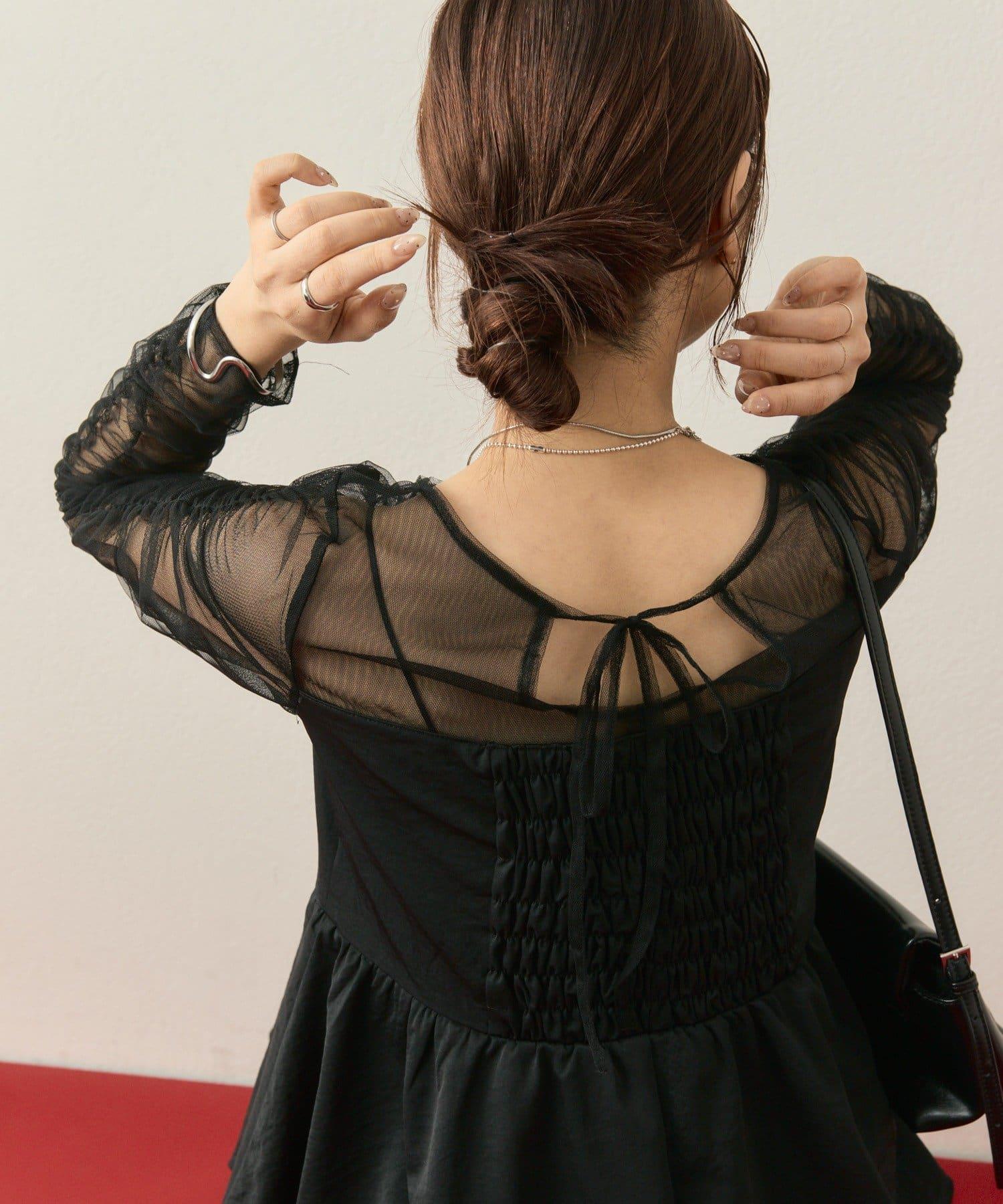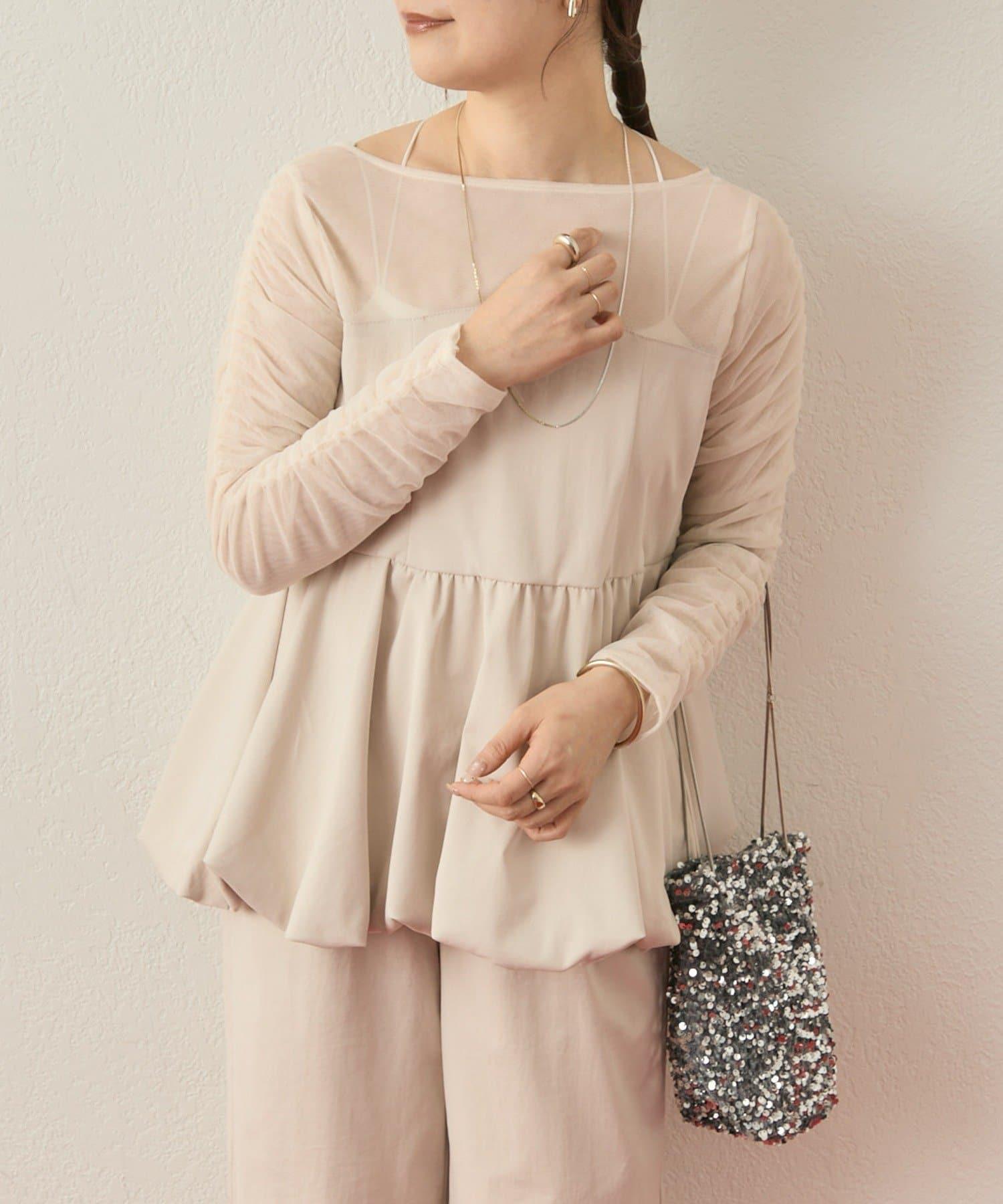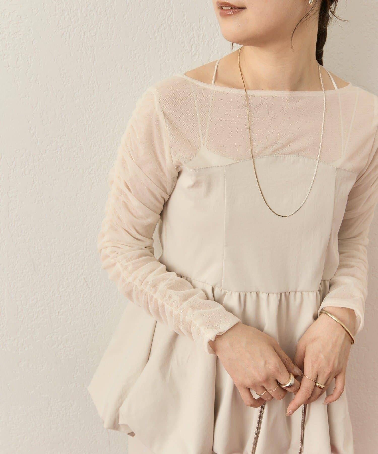 上衣袖子周圍的褶皺設計給人一種簡潔的感覺,薄紗由兩層組成,不會太透明,可以放心使用。