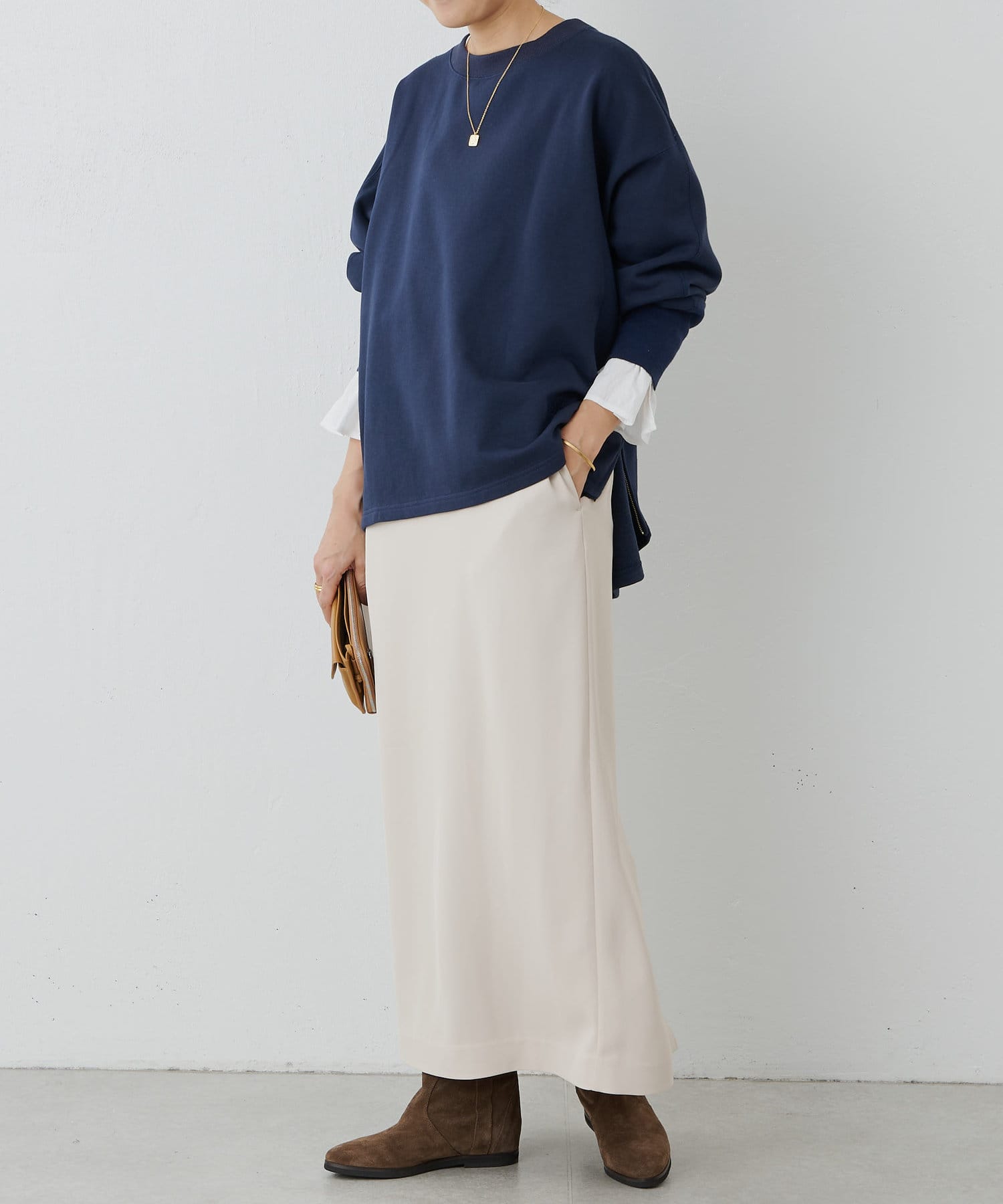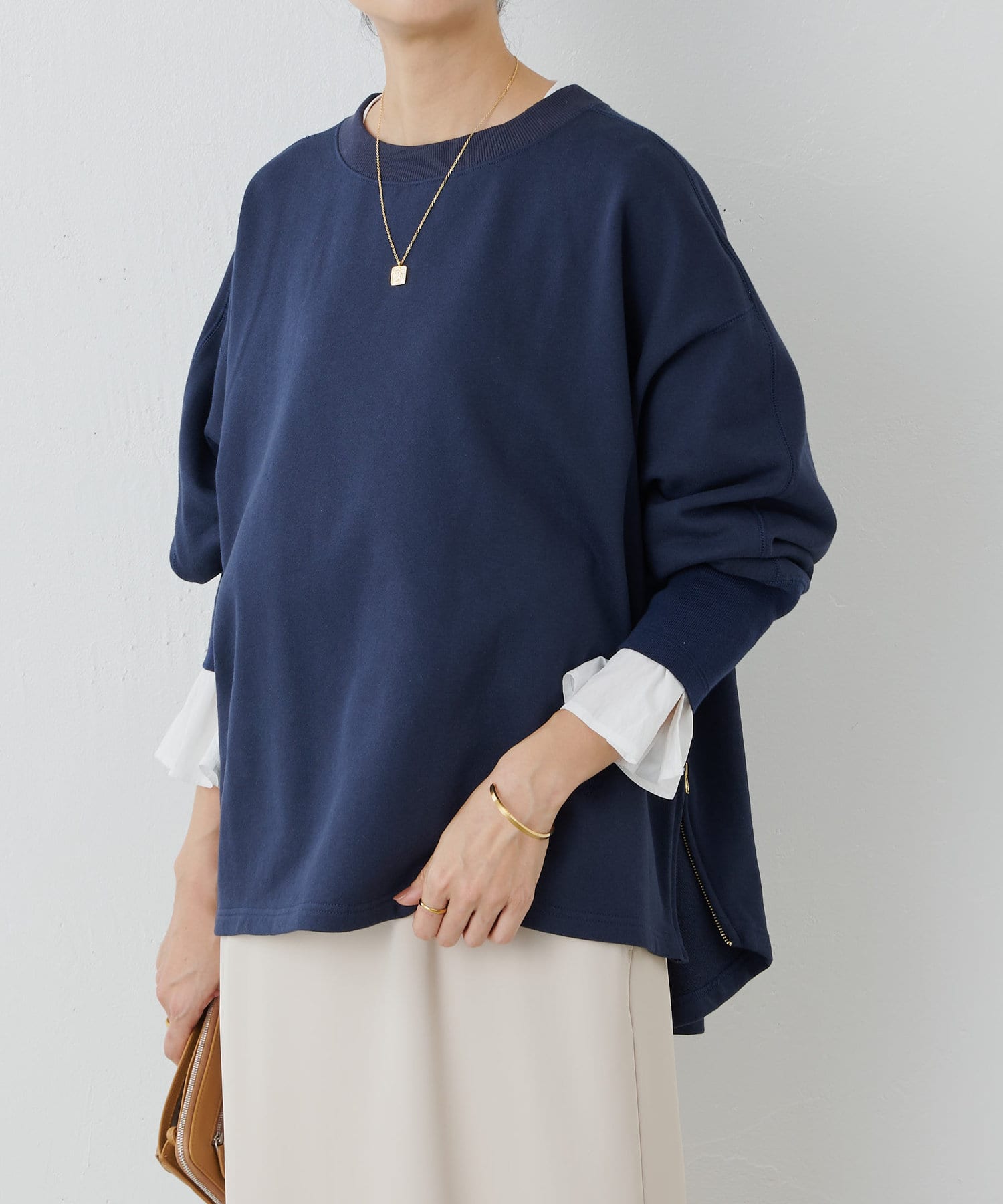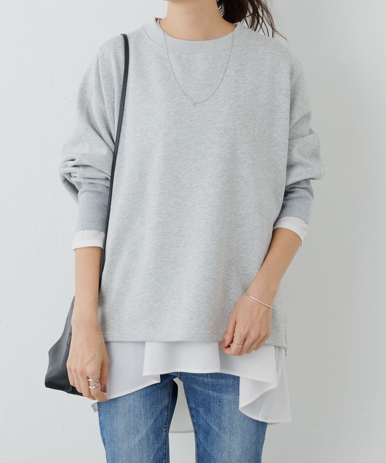 可單獨穿著,也可搭配長垂 T 下襬,形成層次感。