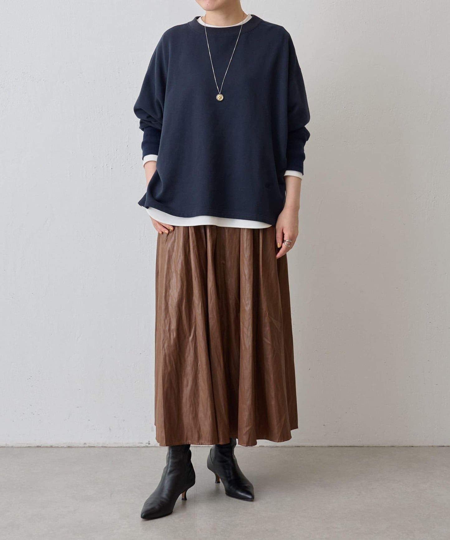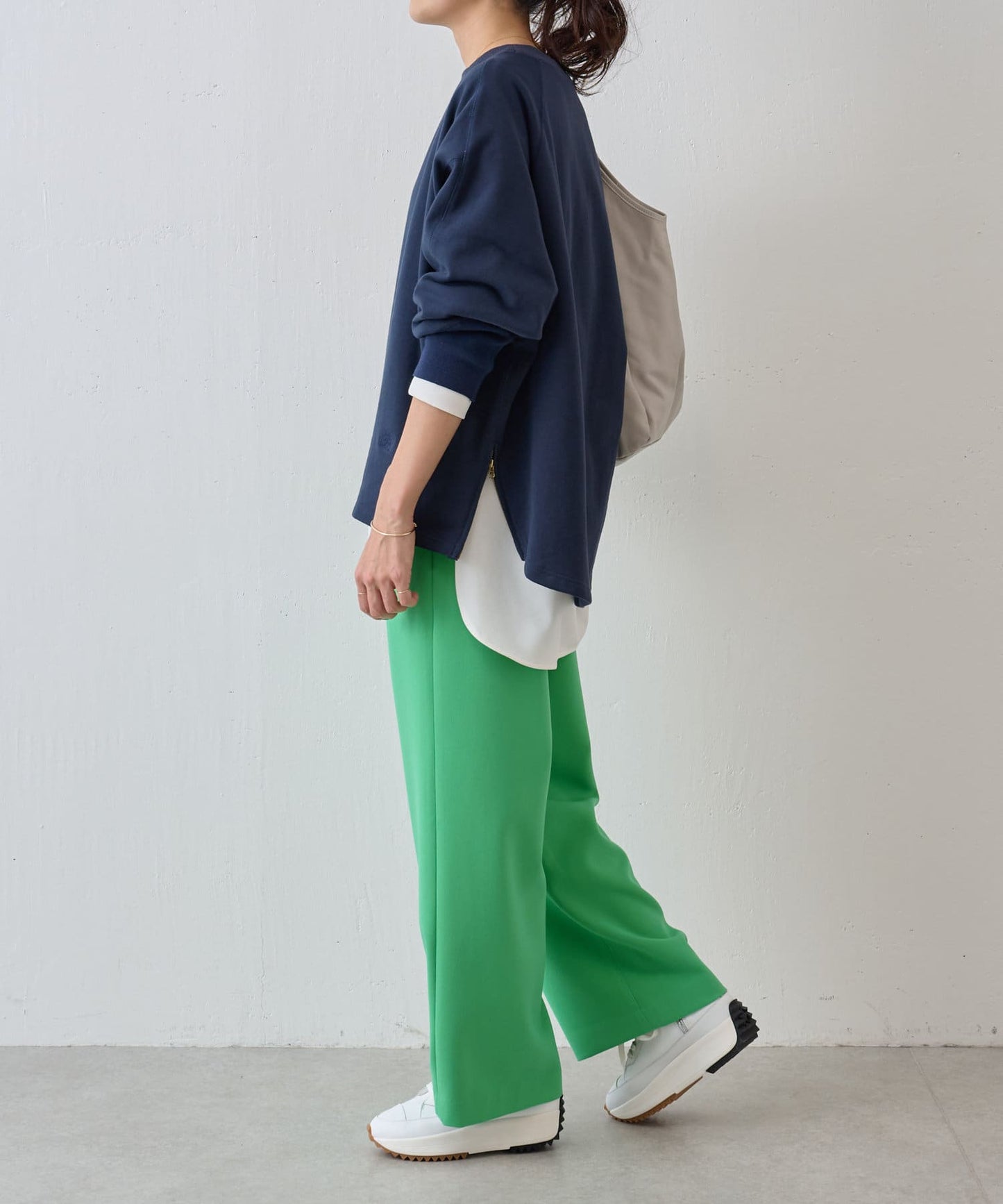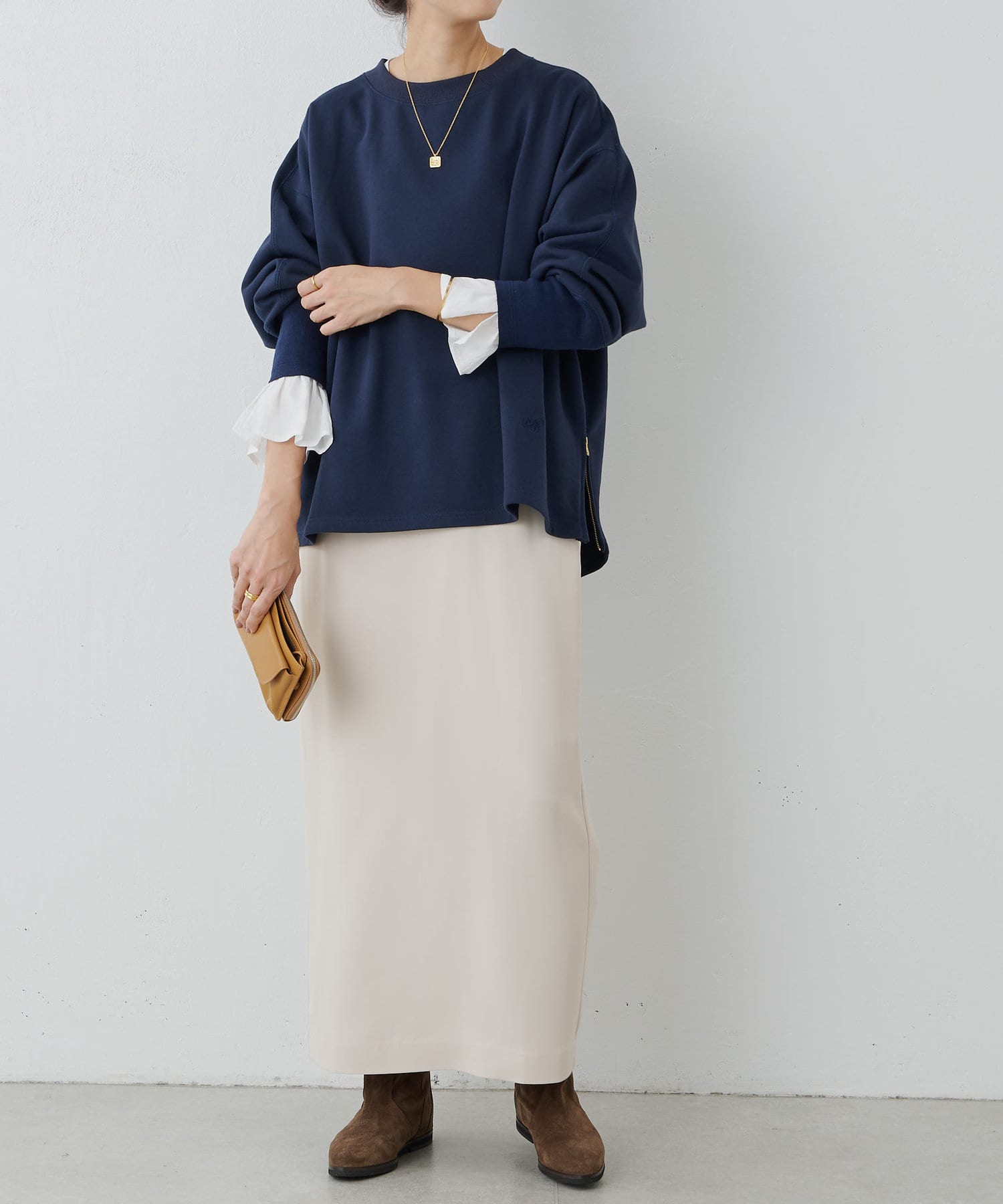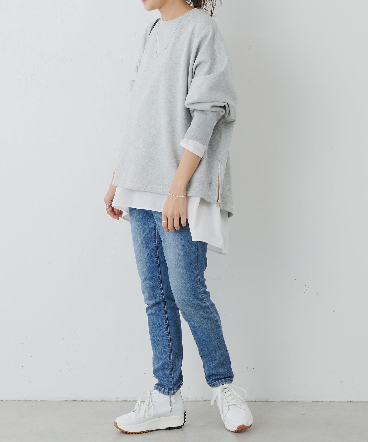 可單獨穿著,也可搭配長垂 T 下襬,形成層次感。