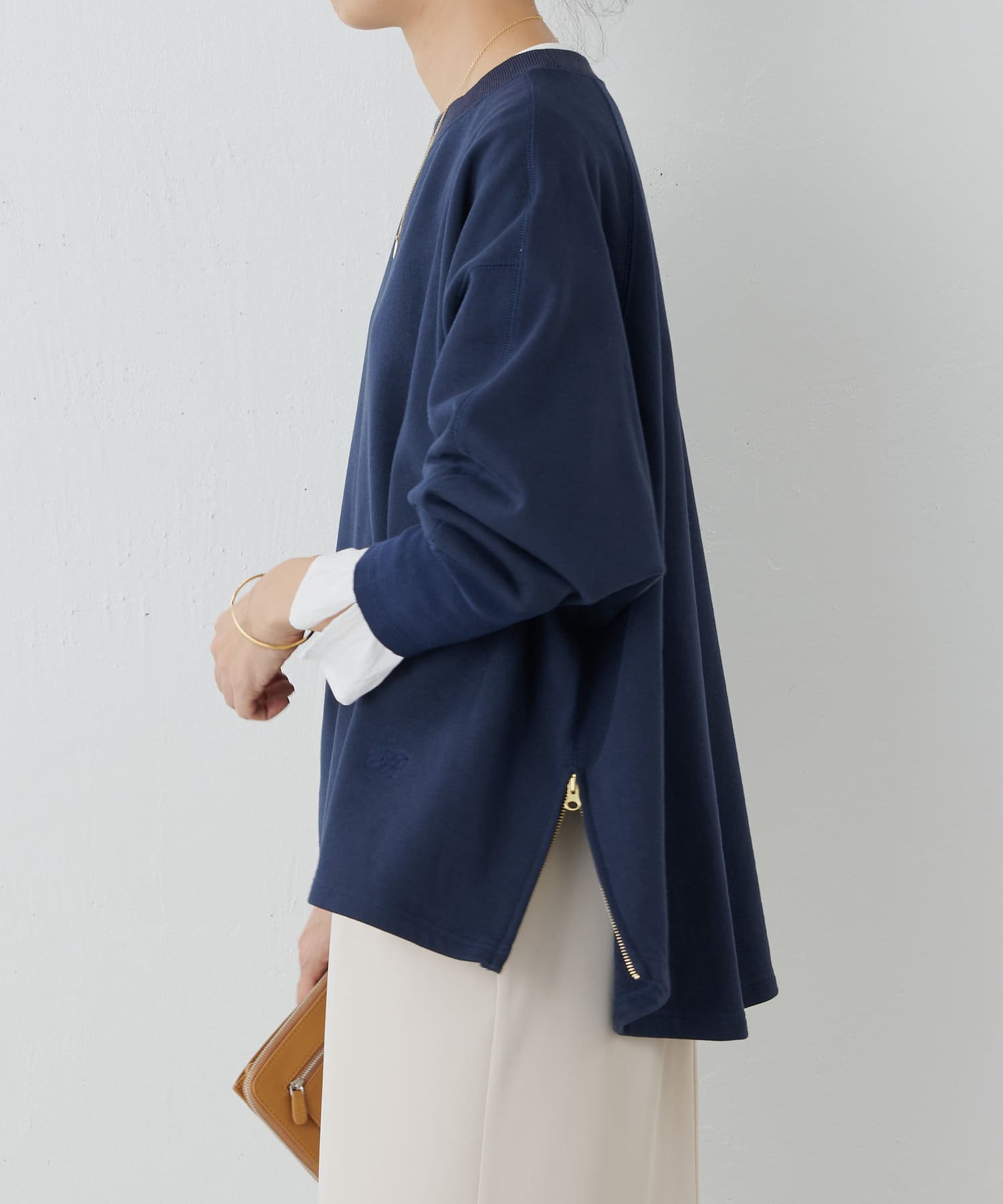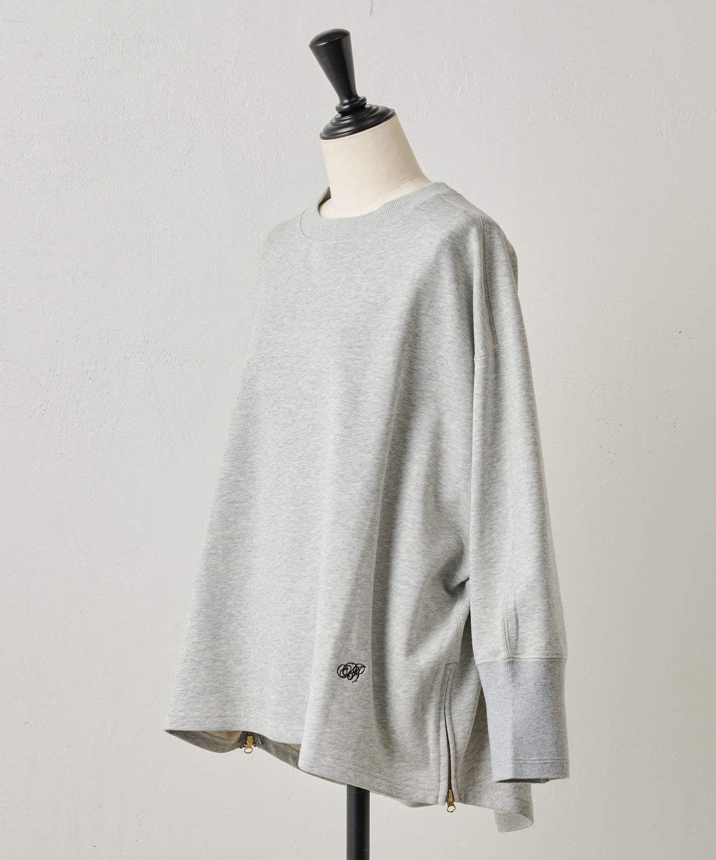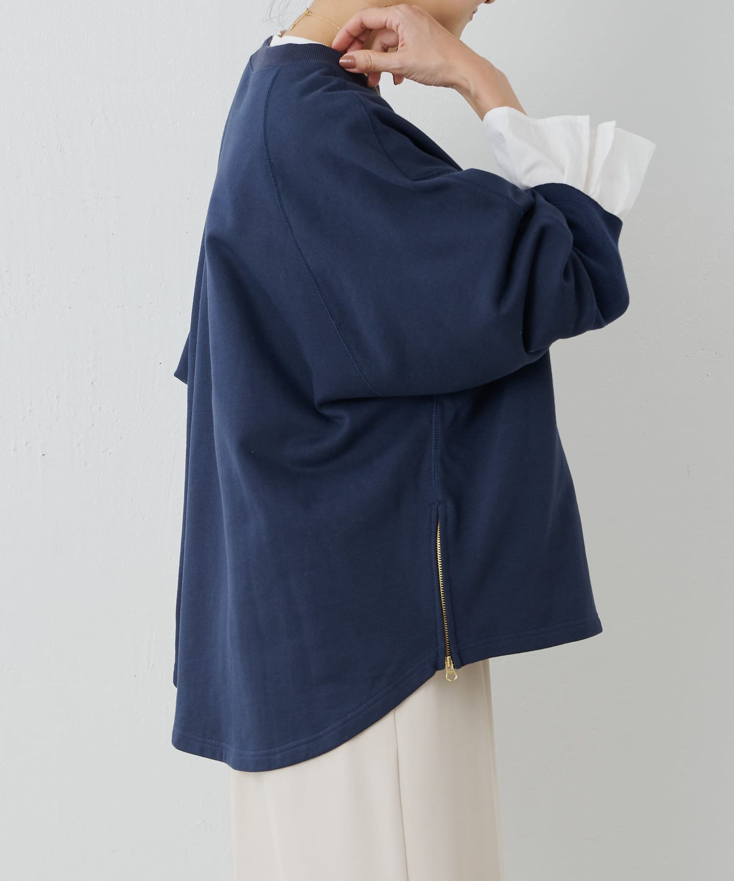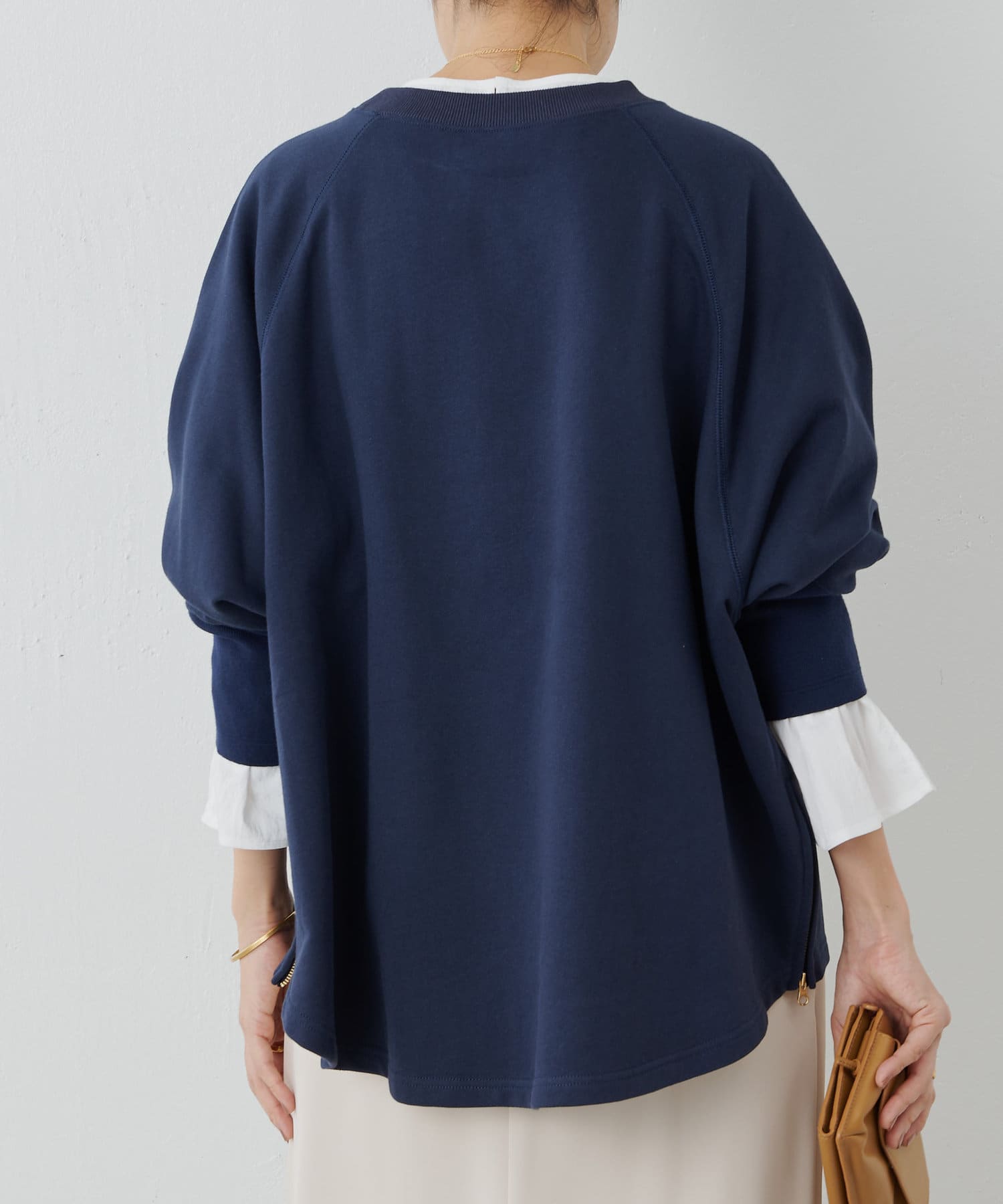 長羅紋袖口。與其他運動衫不同的是,該款運動衫的後襬前後長度呈對角線剪裁。