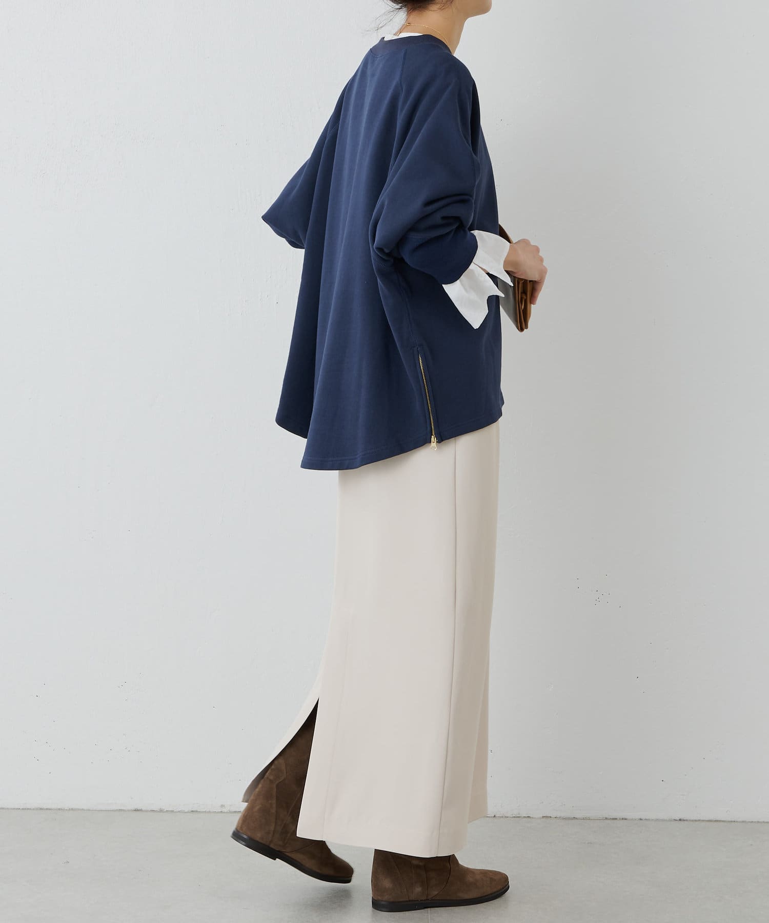可通過開合側面的拉鍊改為開衩設計。