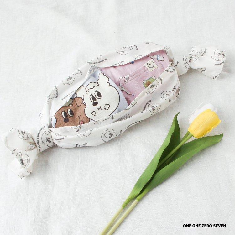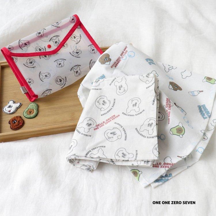 備受關注的韓國品牌 1107(Il Il Gonchiri)👍在日本合作!以 "從韓國到日本觀光 "為主題,將品牌的標誌性人物 Gonchiri 和 Gonchiri 轉化為滑稽的流行插圖。在包裡隨身攜帶的 tenugui 是原創設計!