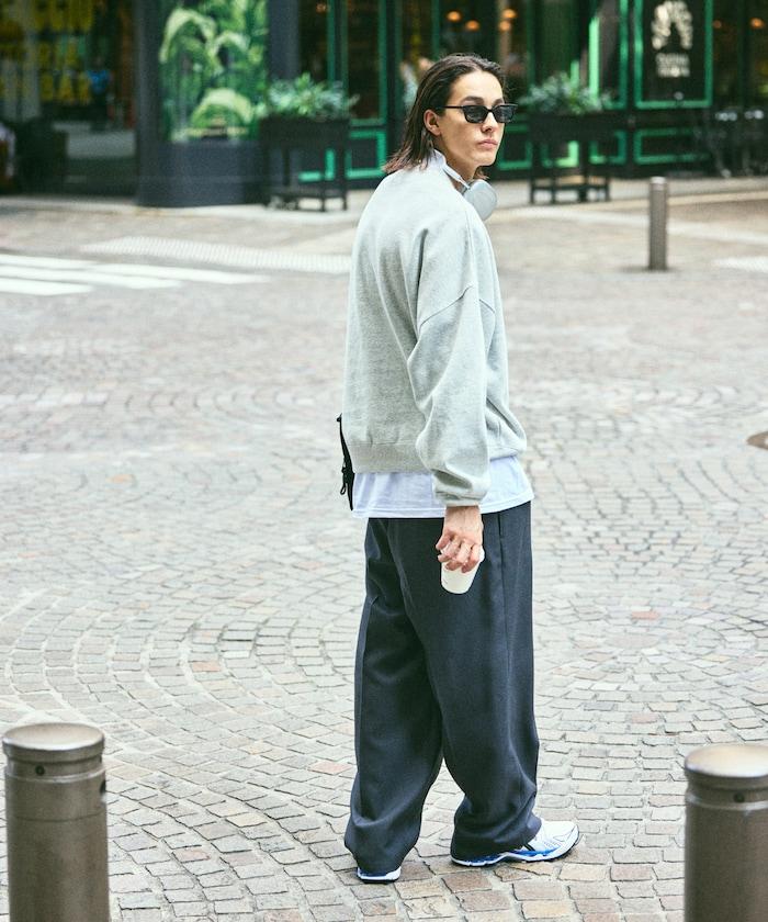 時尚的剪裁,寬大的衣身和下垂的肩部,但長度安排為短款。