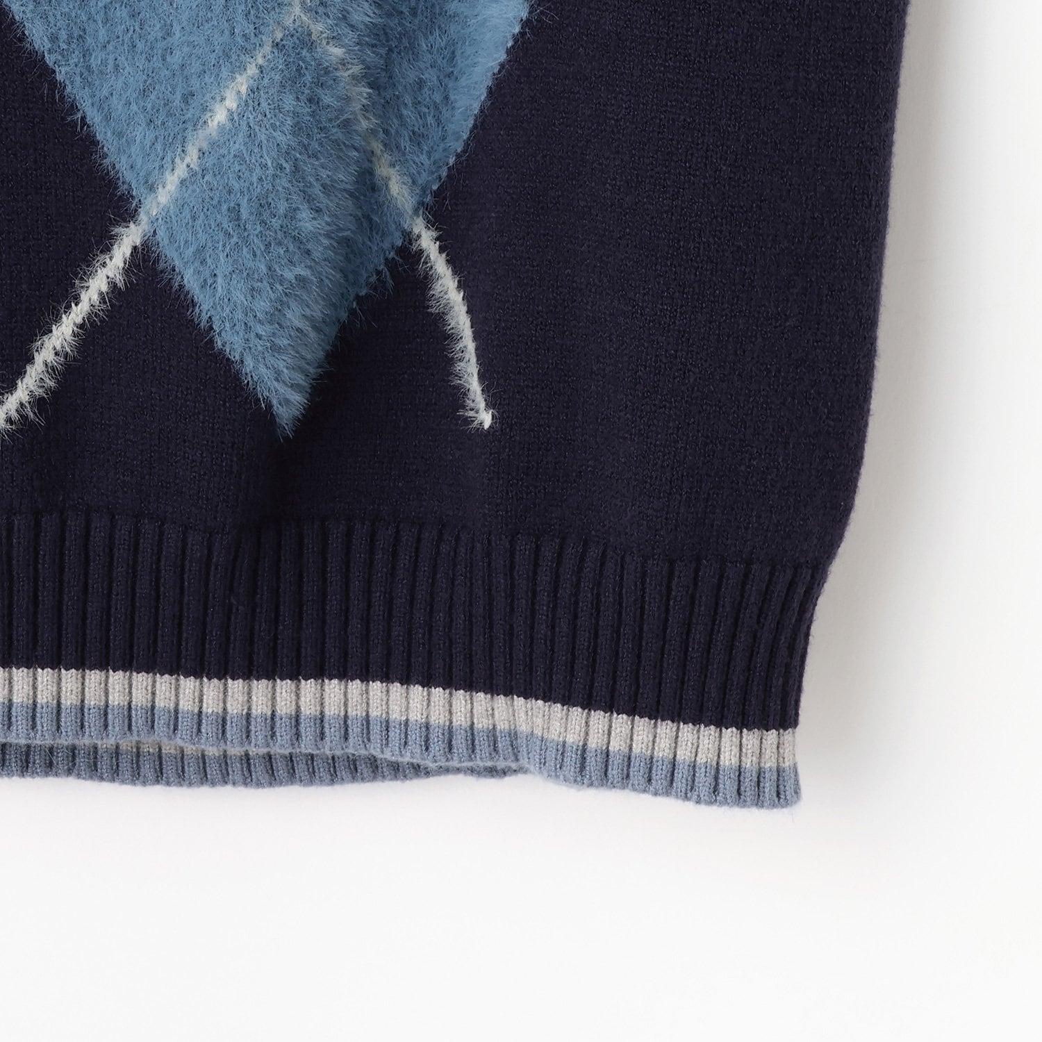 菱形圖案由毛茸茸的紗線製成,蓬鬆可愛。