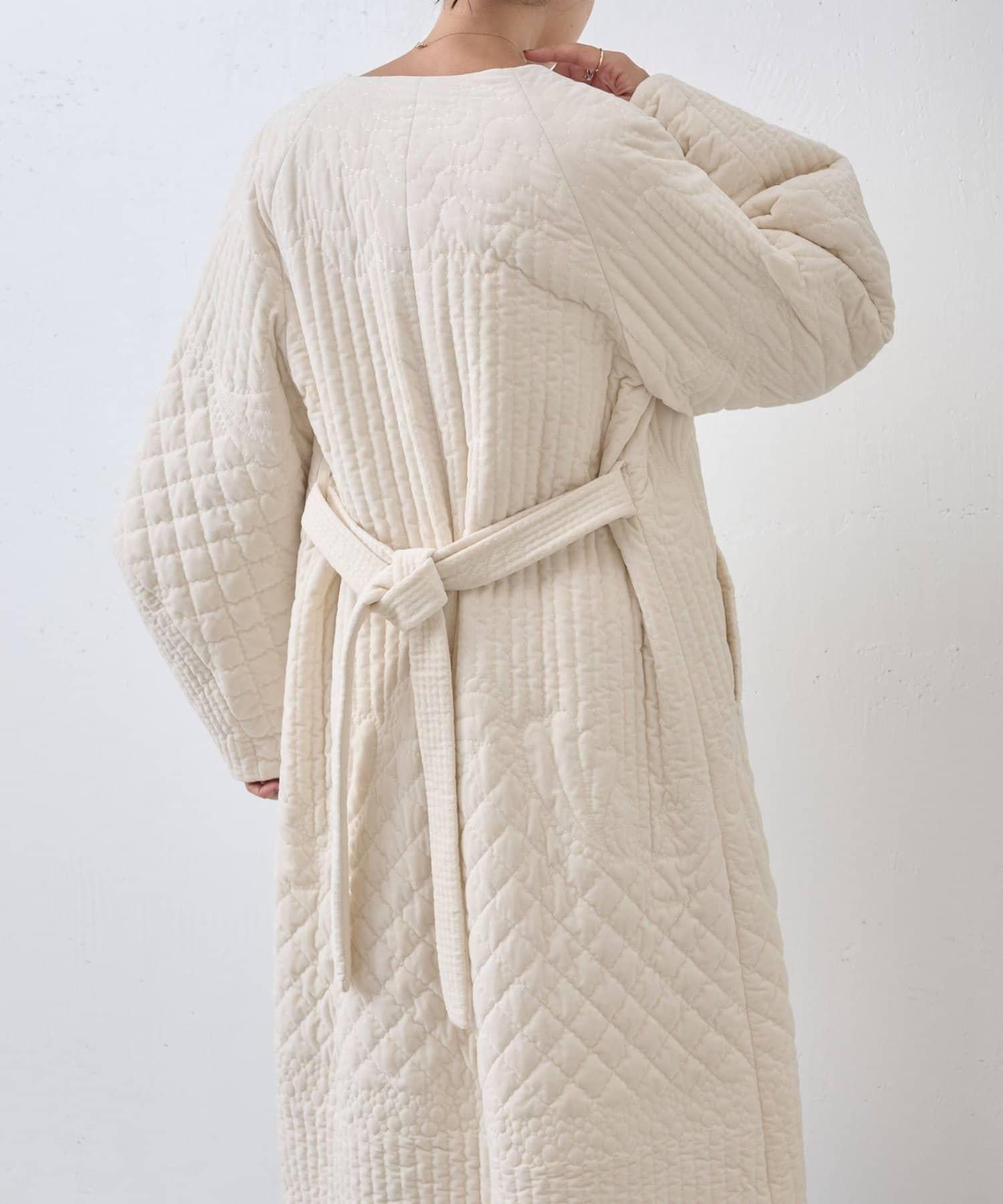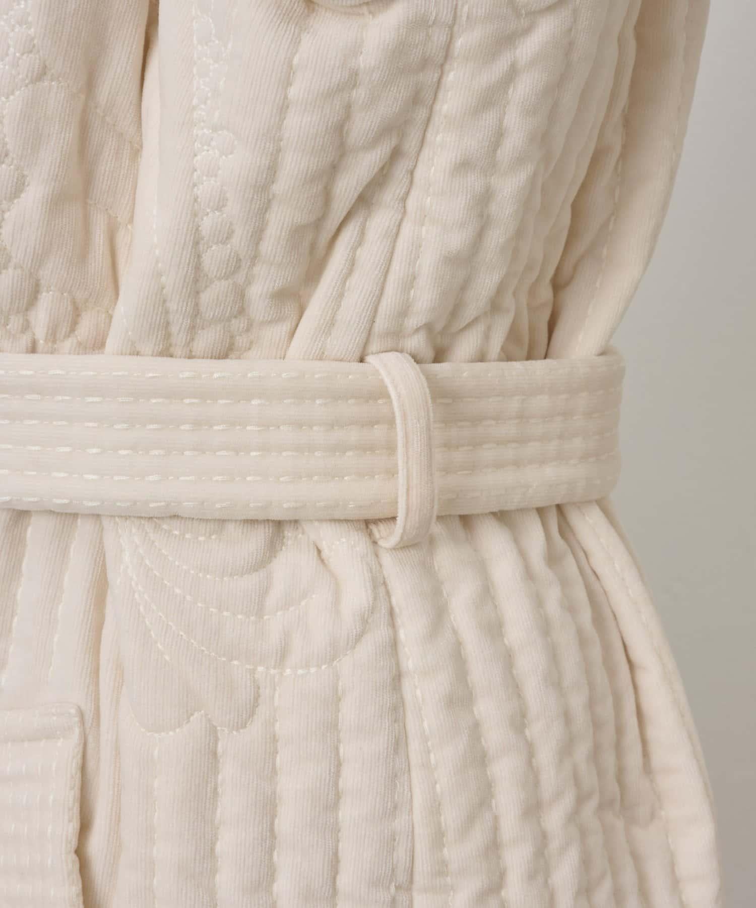 這款來自《15 quinze》的長款大衣採用搶眼的天鵝絨面料,並飾有絎縫刺繡。