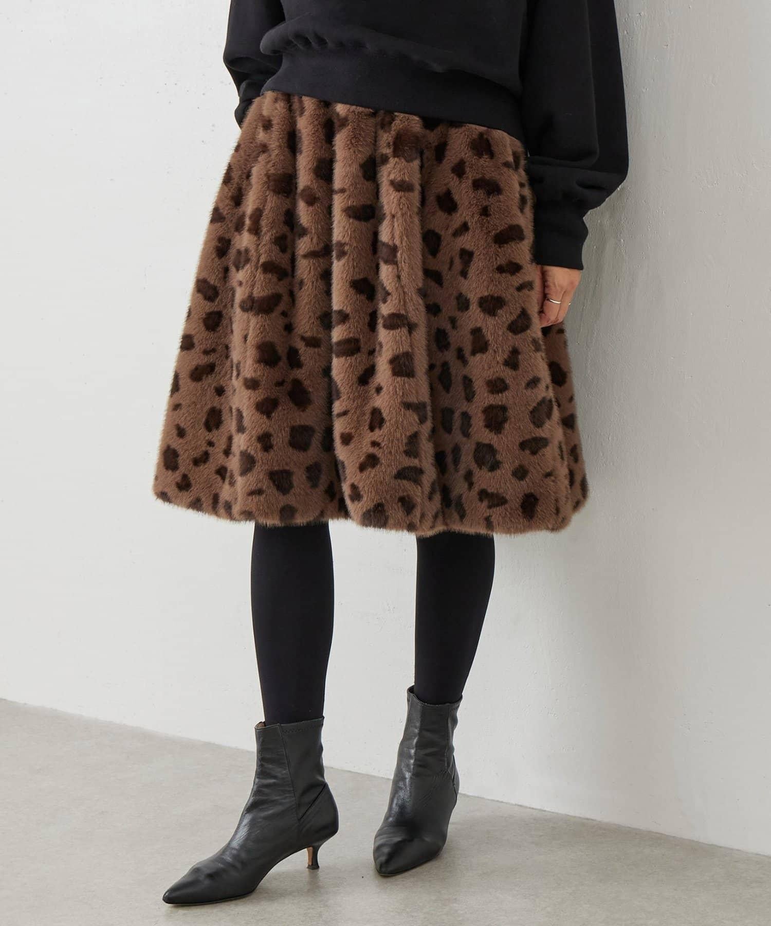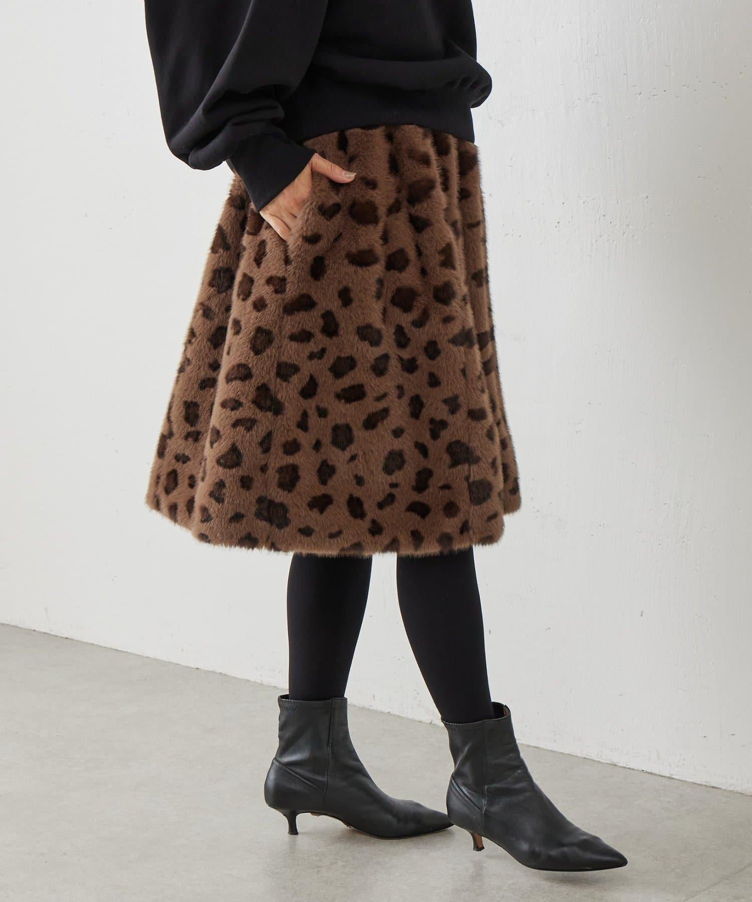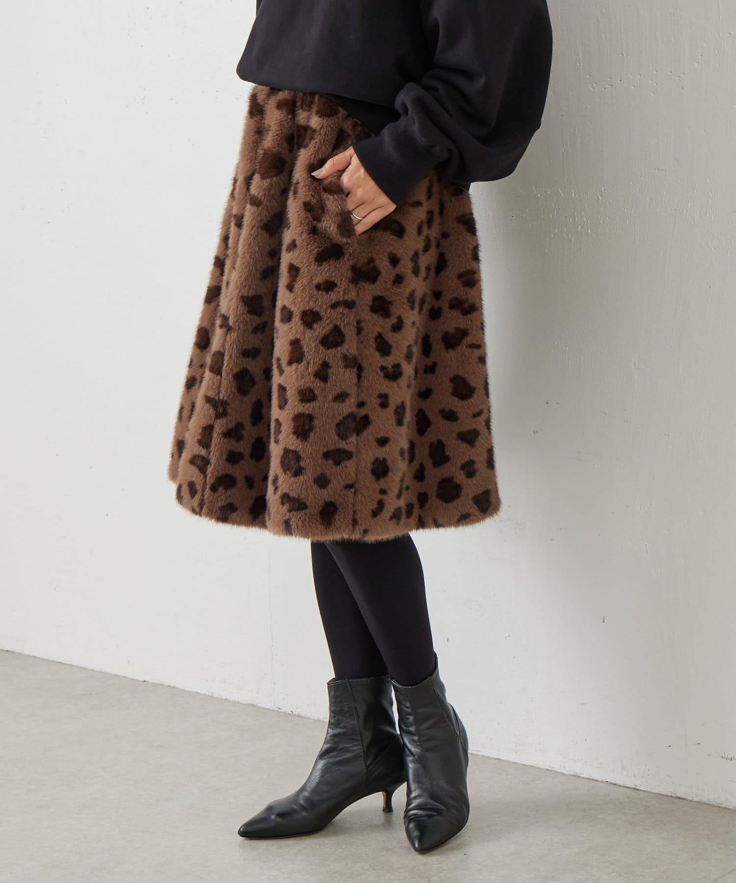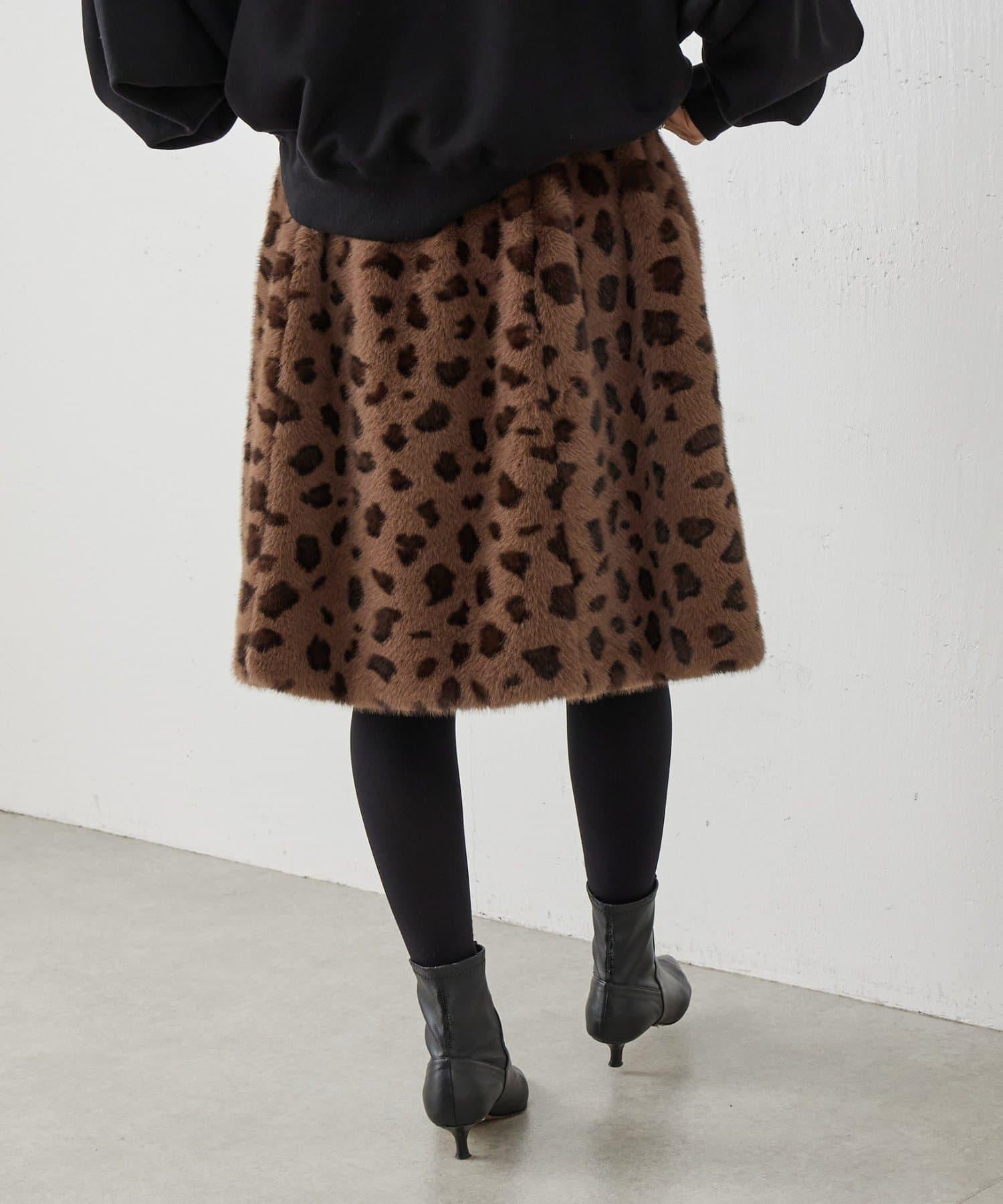 《15 quinze》豹紋仿毛皮裙
