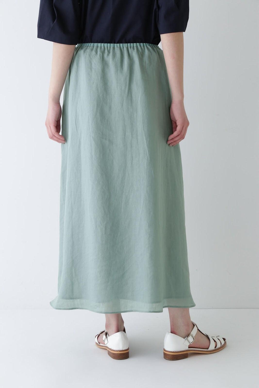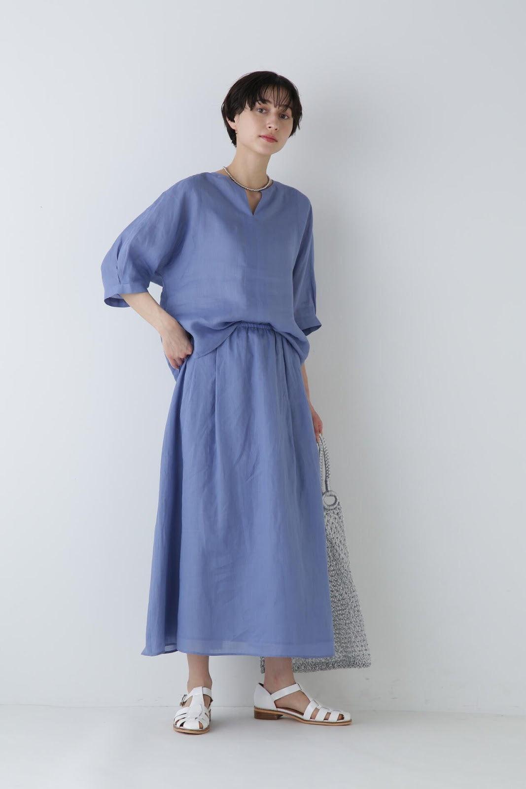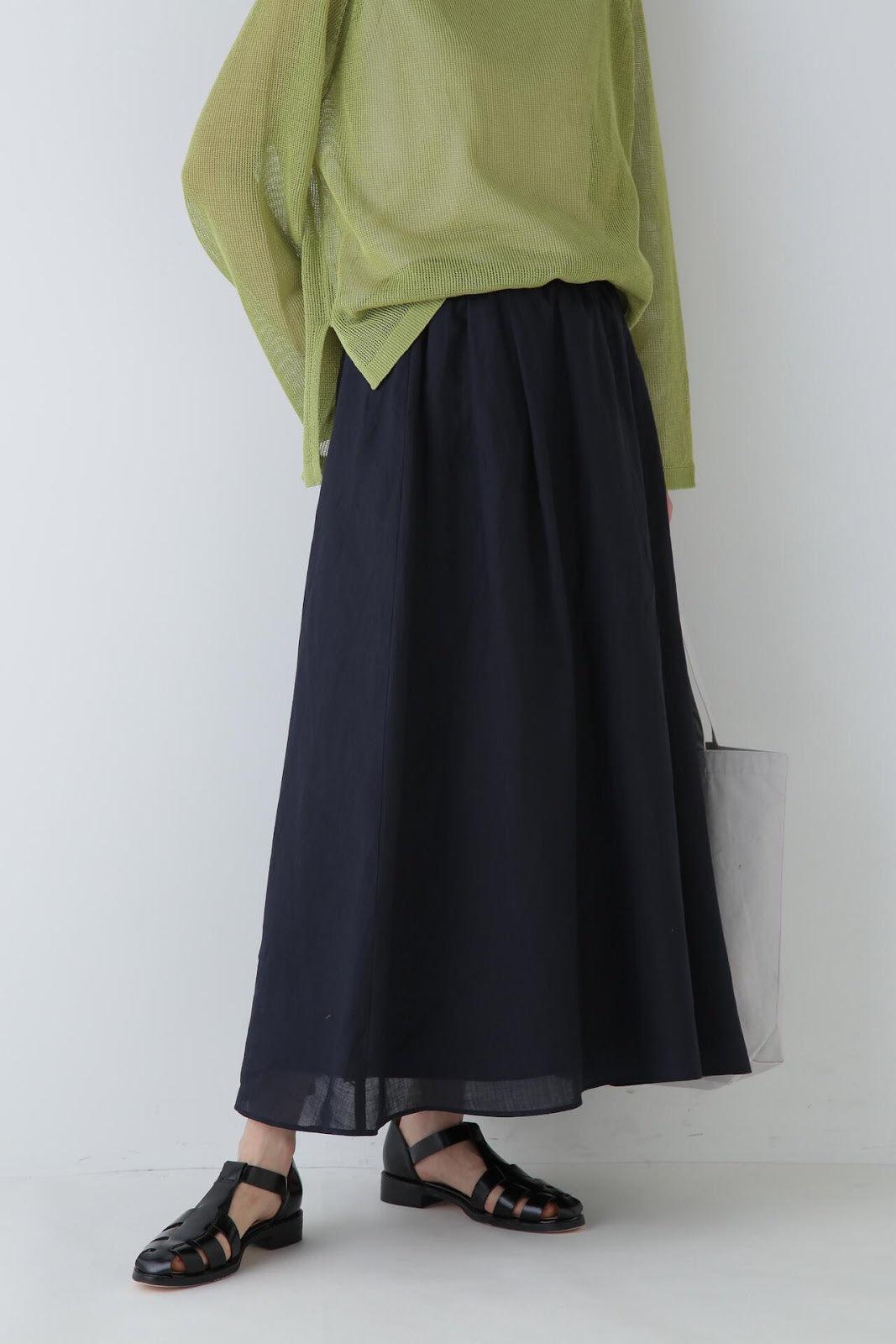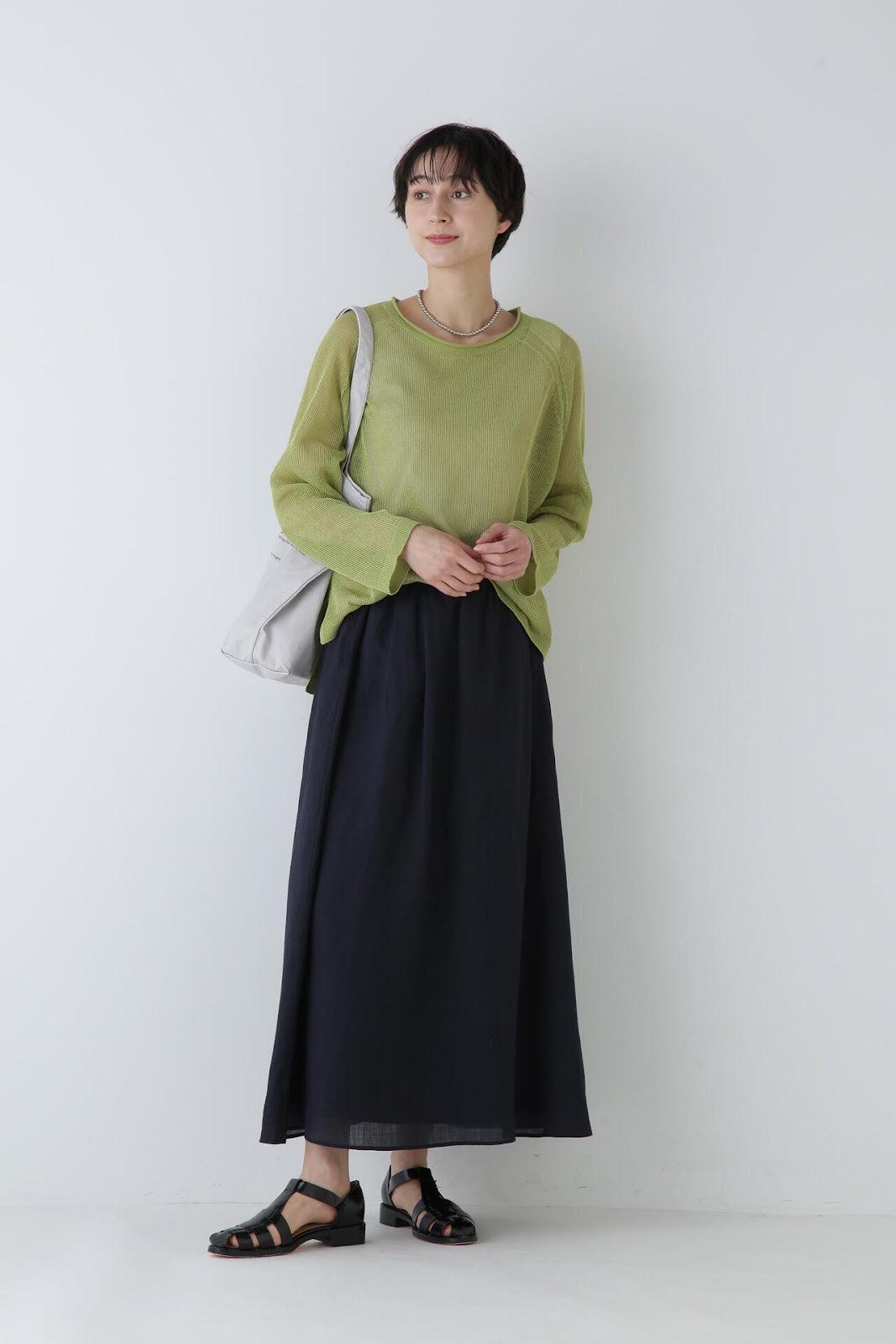 輕盈搖擺的喇叭裙 [設計要點] 酷感十足的聚攏喇叭裙,充分利用了面料的空氣感。腰部飾有羅緞滾邊,質地輕盈。裙子採用 100% 上等苧麻面料,表面細膩,清涼爽快,堪稱人類女性的標準。推薦搭配] 與同材質上衣或薄紗感單品搭配成套穿著,盡享精緻造型。寬鬆的鬆緊腰身可讓您根據上衣調整長度。