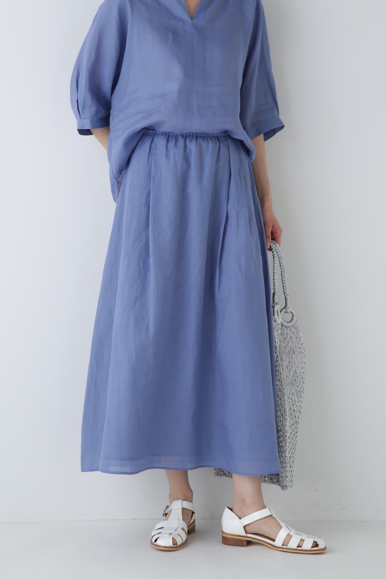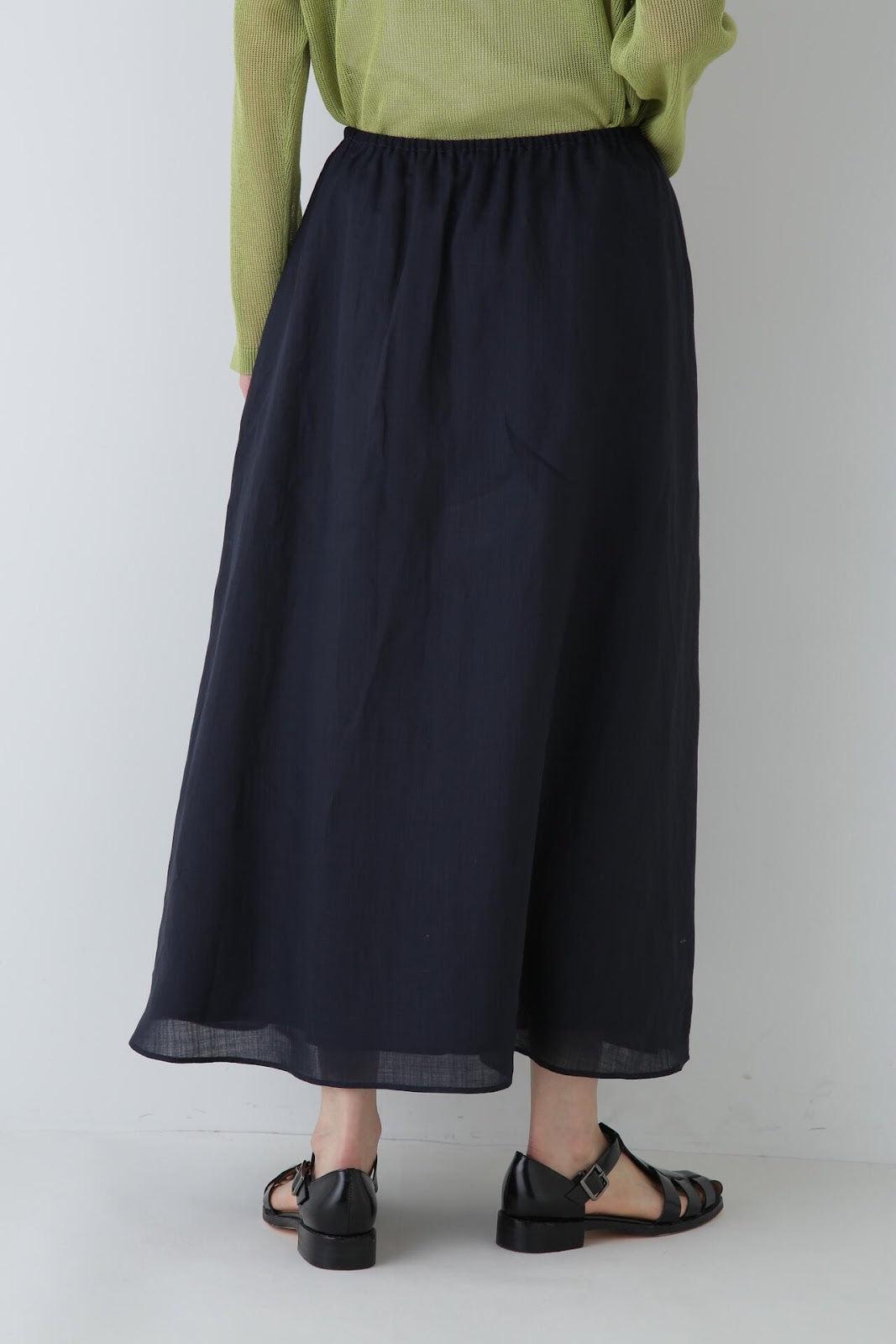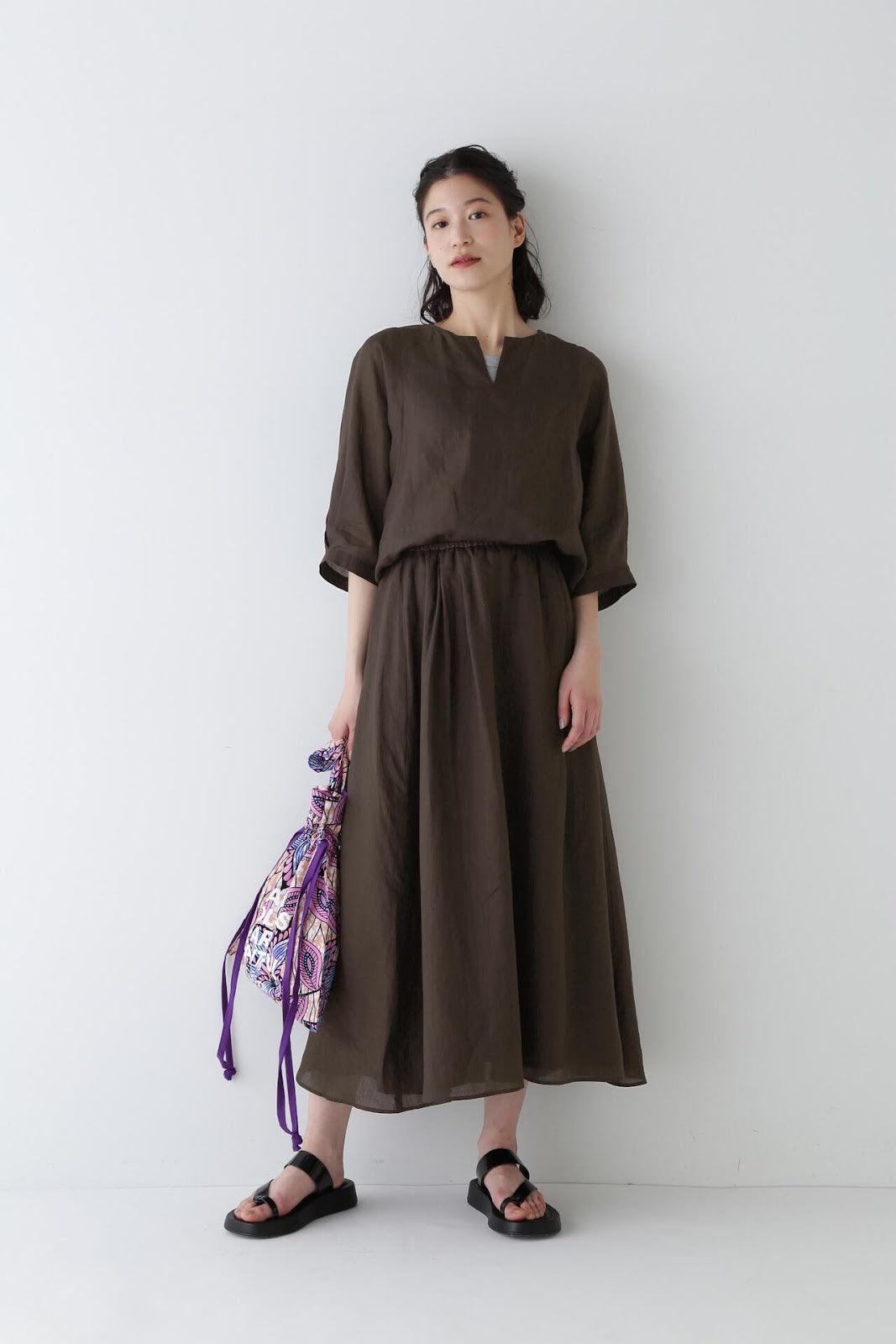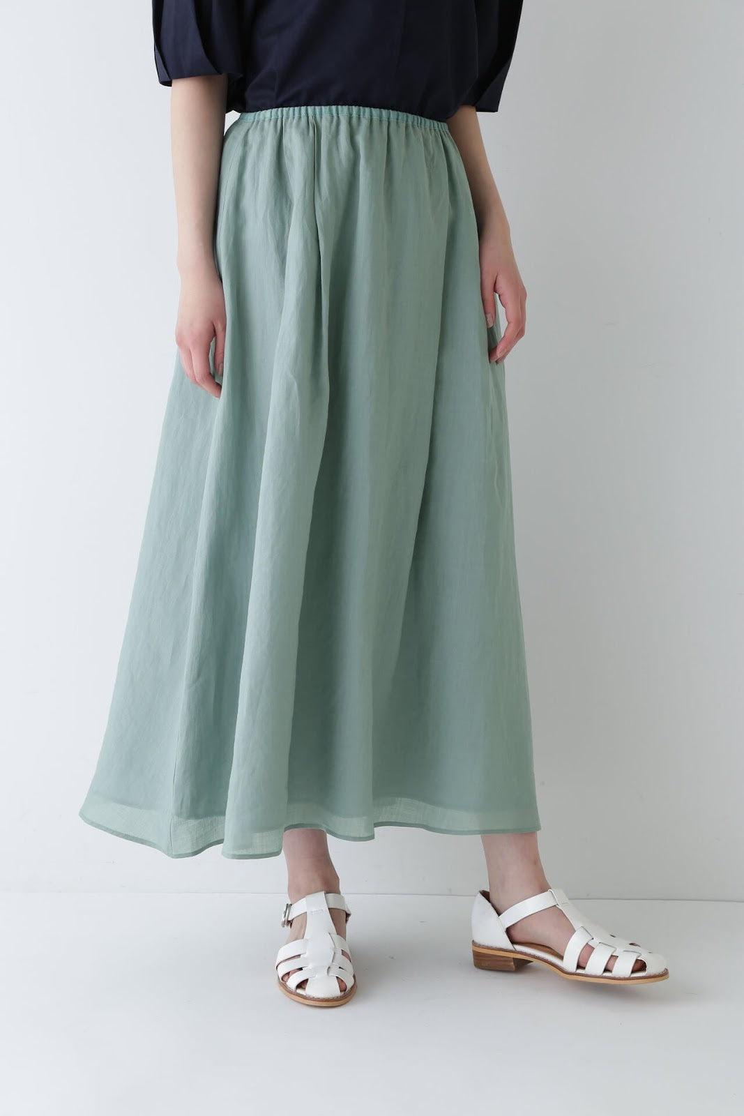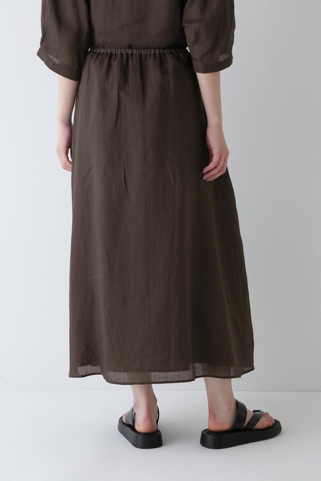 輕盈搖擺的喇叭裙 [設計要點] 酷感十足的聚攏喇叭裙,充分利用了面料的空氣感。腰部飾有羅緞滾邊,質地輕盈。裙子採用 100% 上等苧麻面料,表面細膩,清涼爽快,堪稱人類女性的標準。推薦搭配] 與同材質上衣或薄紗感單品搭配成套穿著,盡享精緻造型。寬鬆的鬆緊腰身可讓您根據上衣調整長度。