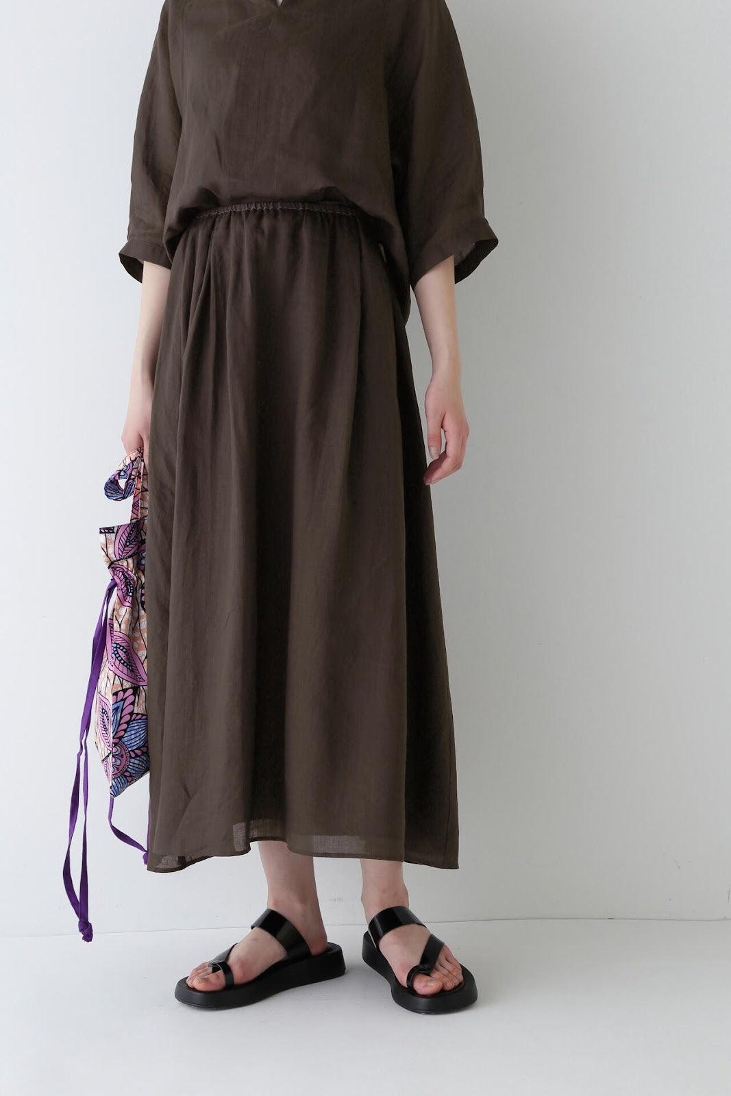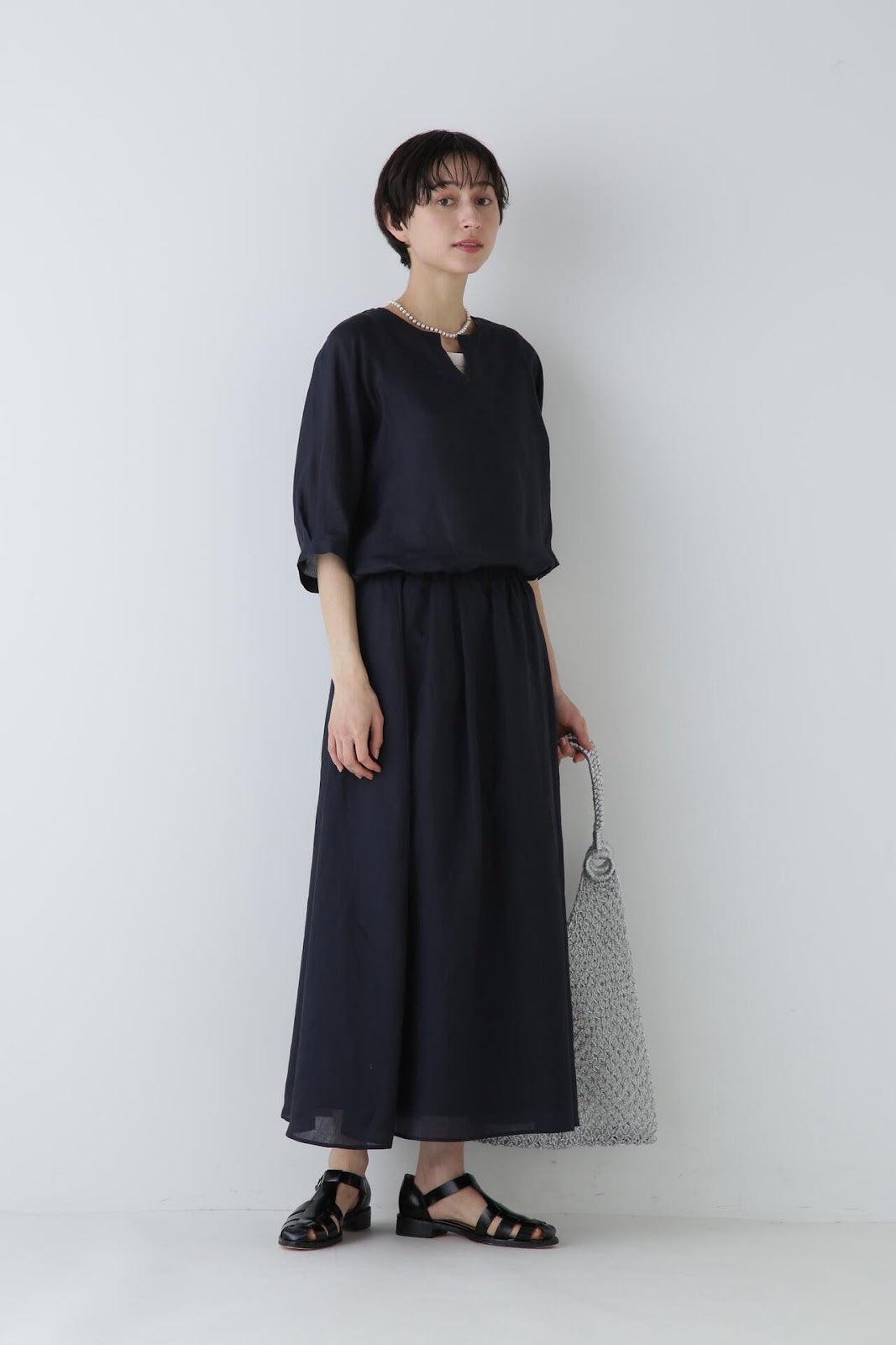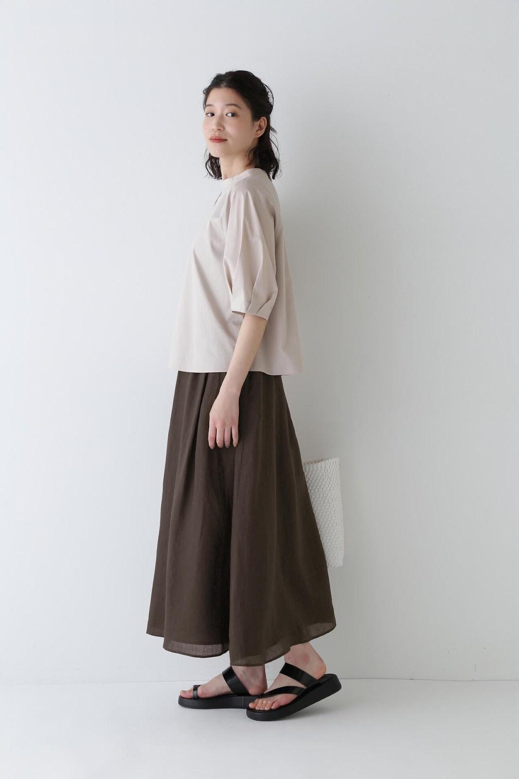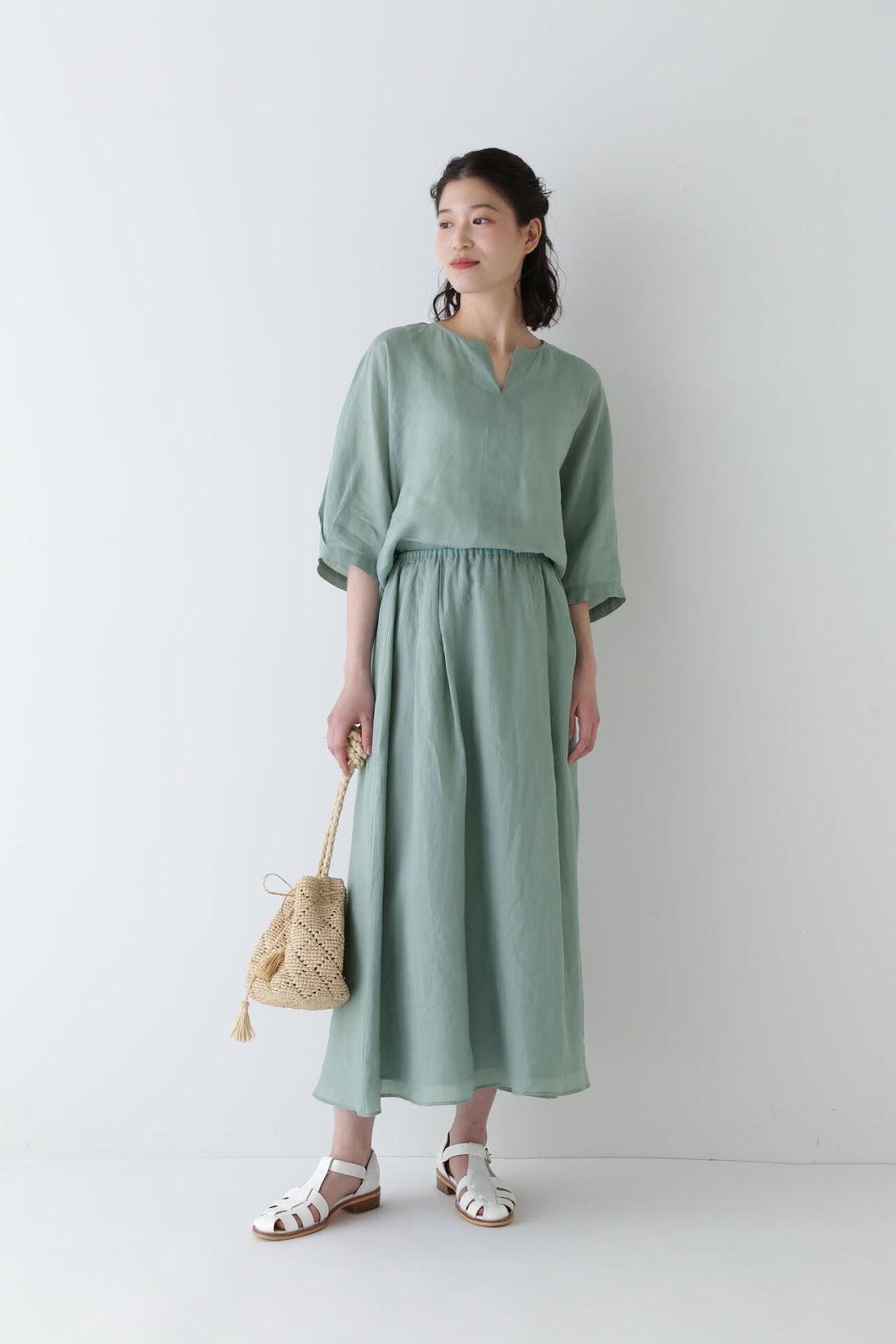 輕盈搖擺的喇叭裙 [設計要點] 酷感十足的聚攏喇叭裙,充分利用了面料的空氣感。腰部飾有羅緞滾邊,質地輕盈。裙子採用 100% 上等苧麻面料,表面細膩,清涼爽快,堪稱人類女性的標準。推薦搭配] 與同材質上衣或薄紗感單品搭配成套穿著,盡享精緻造型。寬鬆的鬆緊腰身可讓您根據上衣調整長度。