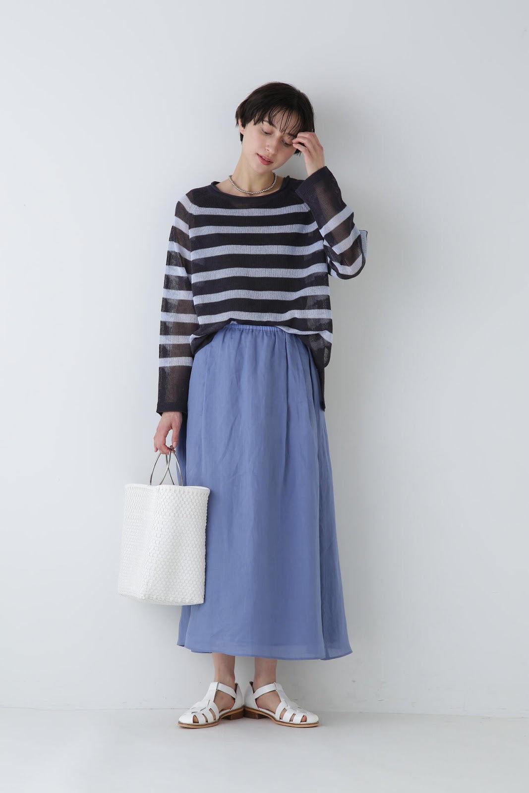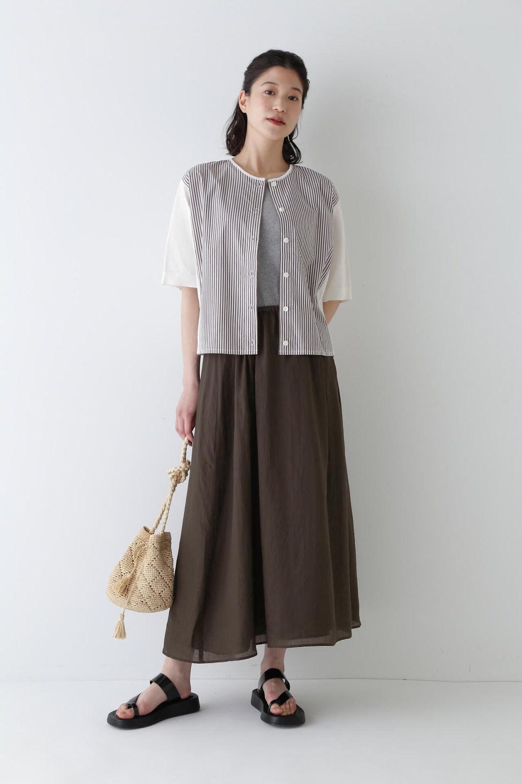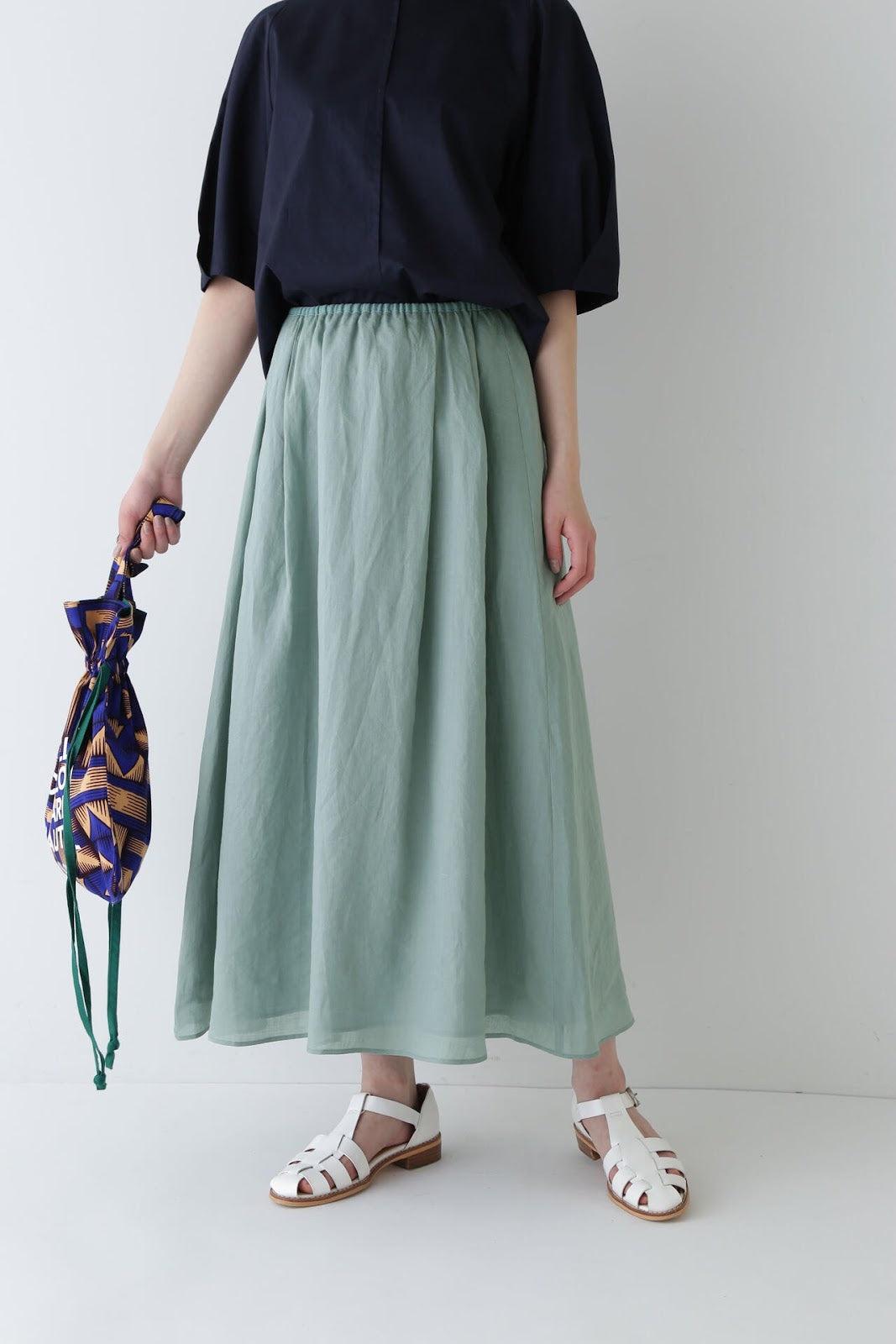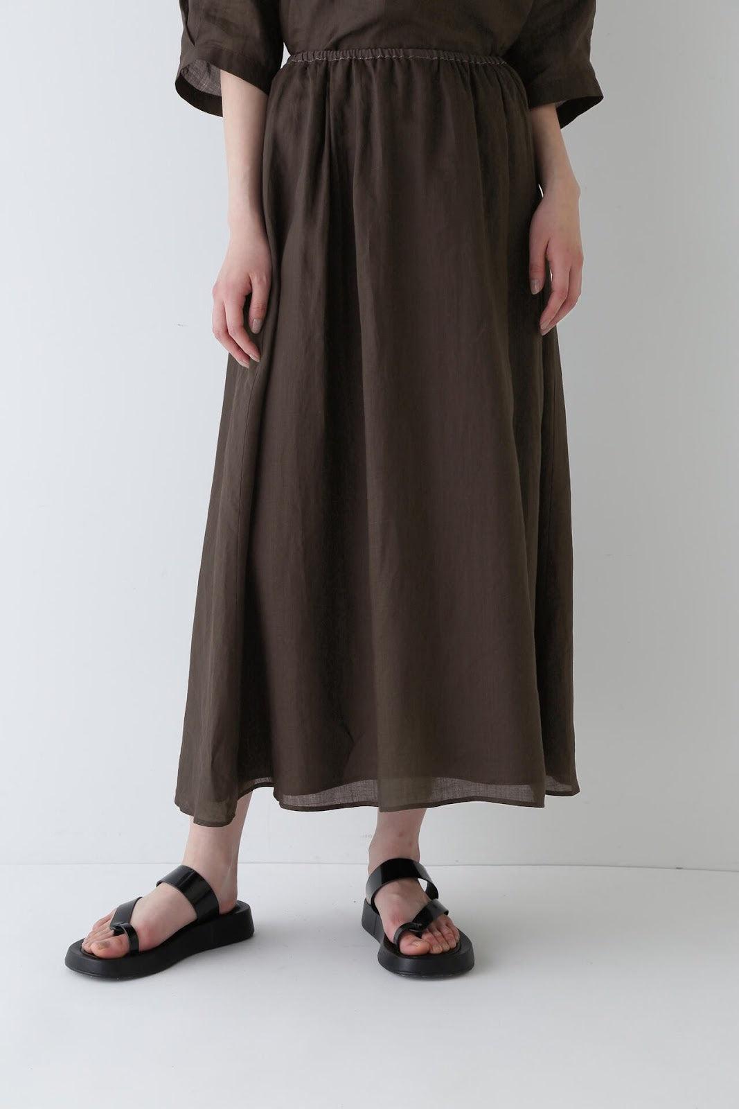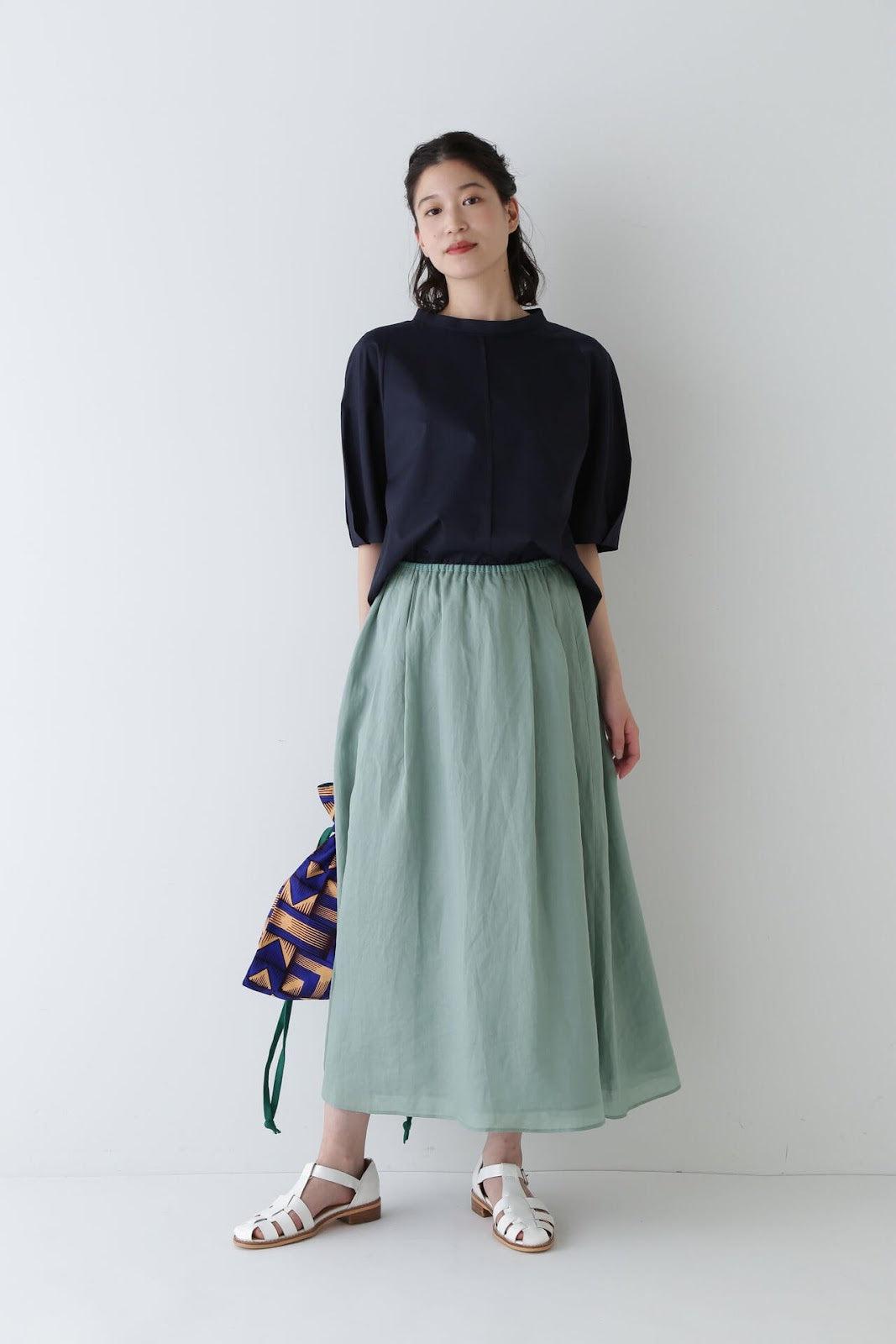 輕盈搖擺的喇叭裙 [設計要點] 酷感十足的聚攏喇叭裙,充分利用了面料的空氣感。腰部飾有羅緞滾邊,質地輕盈。裙子採用 100% 上等苧麻面料,表面細膩,清涼爽快,堪稱人類女性的標準。推薦搭配] 與同材質上衣或薄紗感單品搭配成套穿著,盡享精緻造型。寬鬆的鬆緊腰身可讓您根據上衣調整長度。
