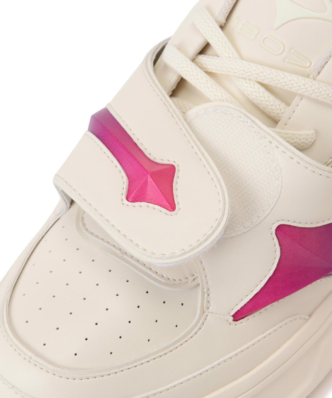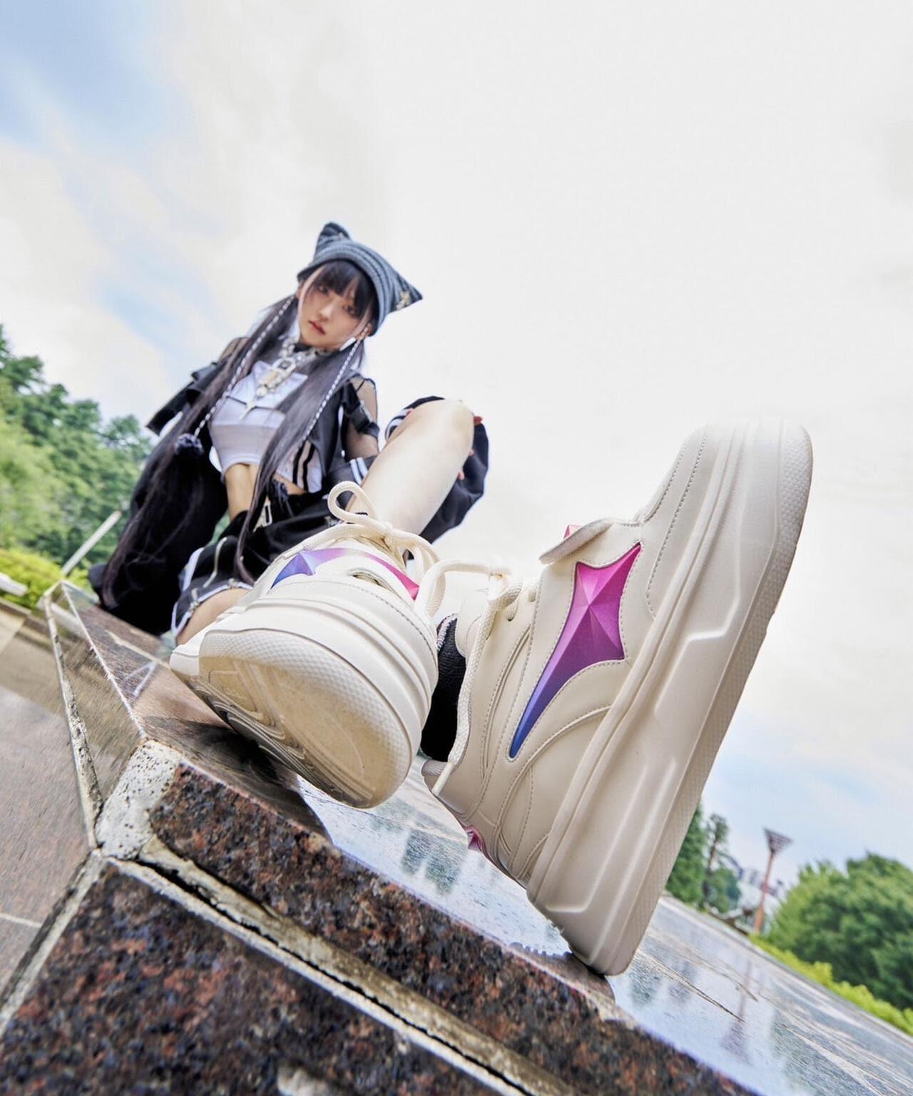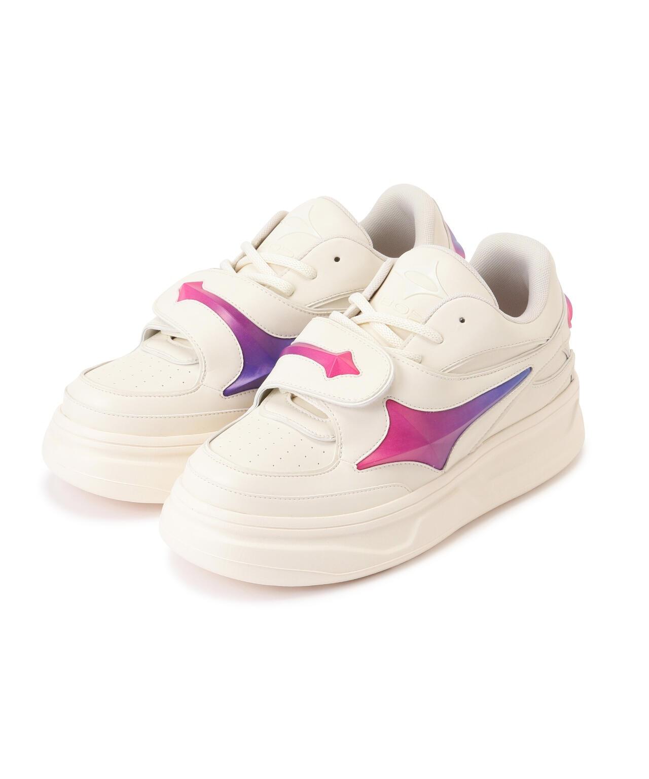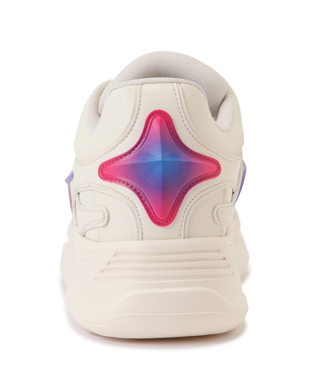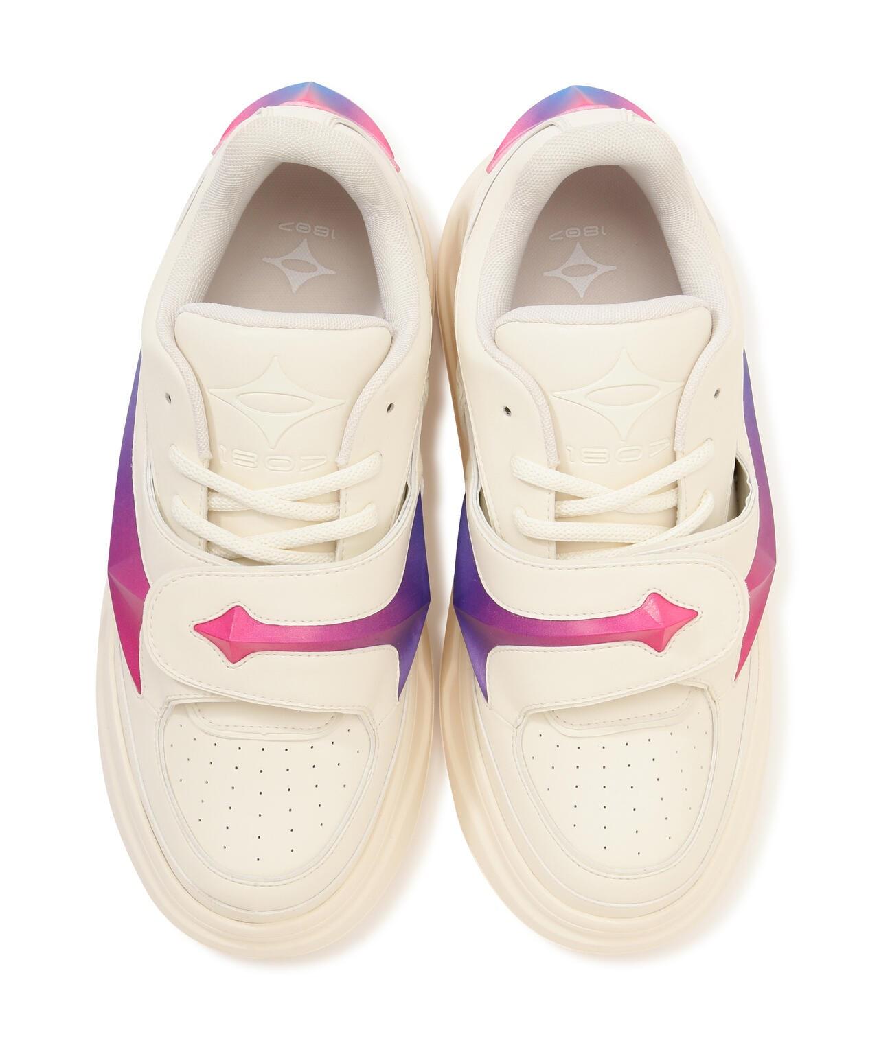這款運動鞋具有時尚、豐滿的感覺,品牌標誌性的十字形切割和立體設計令人印象深刻。此款為 ROYAL FLASH 特別定製款,十字架為彩虹色。