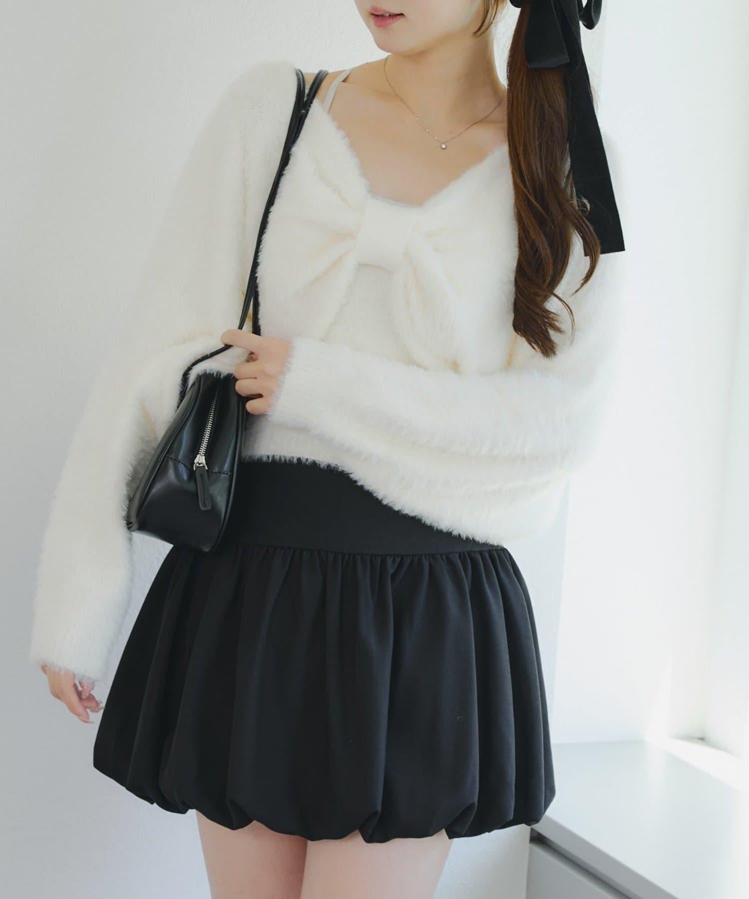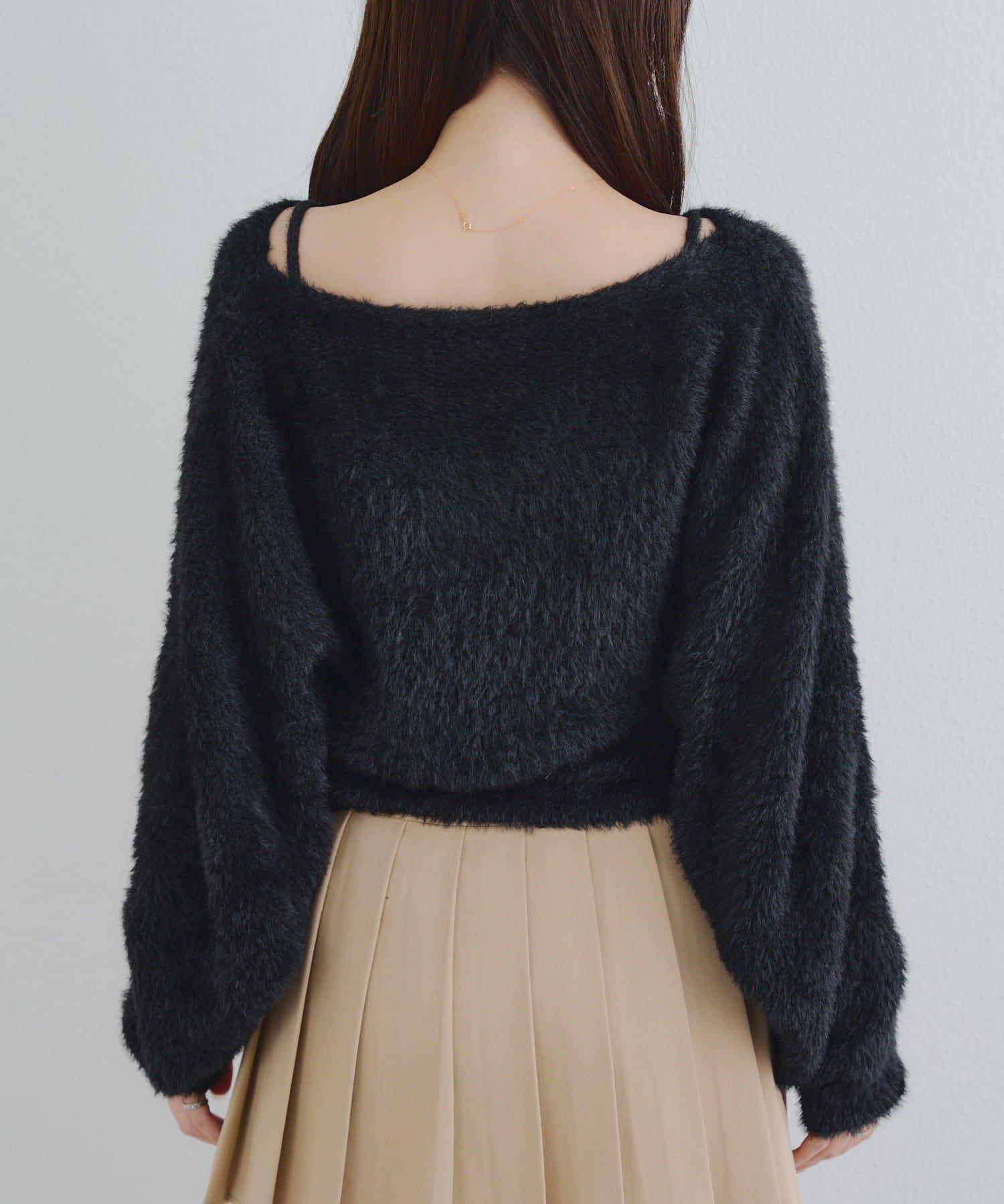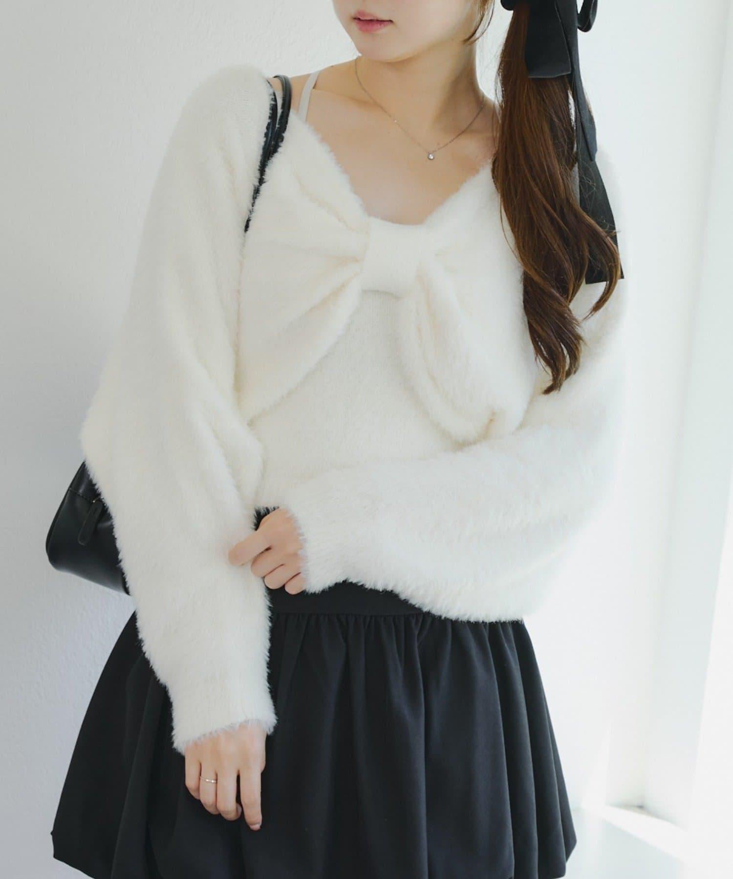 【2件套】吊帶+蝴蝶結羽毛針織衫