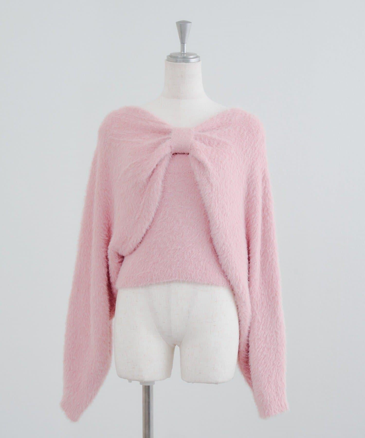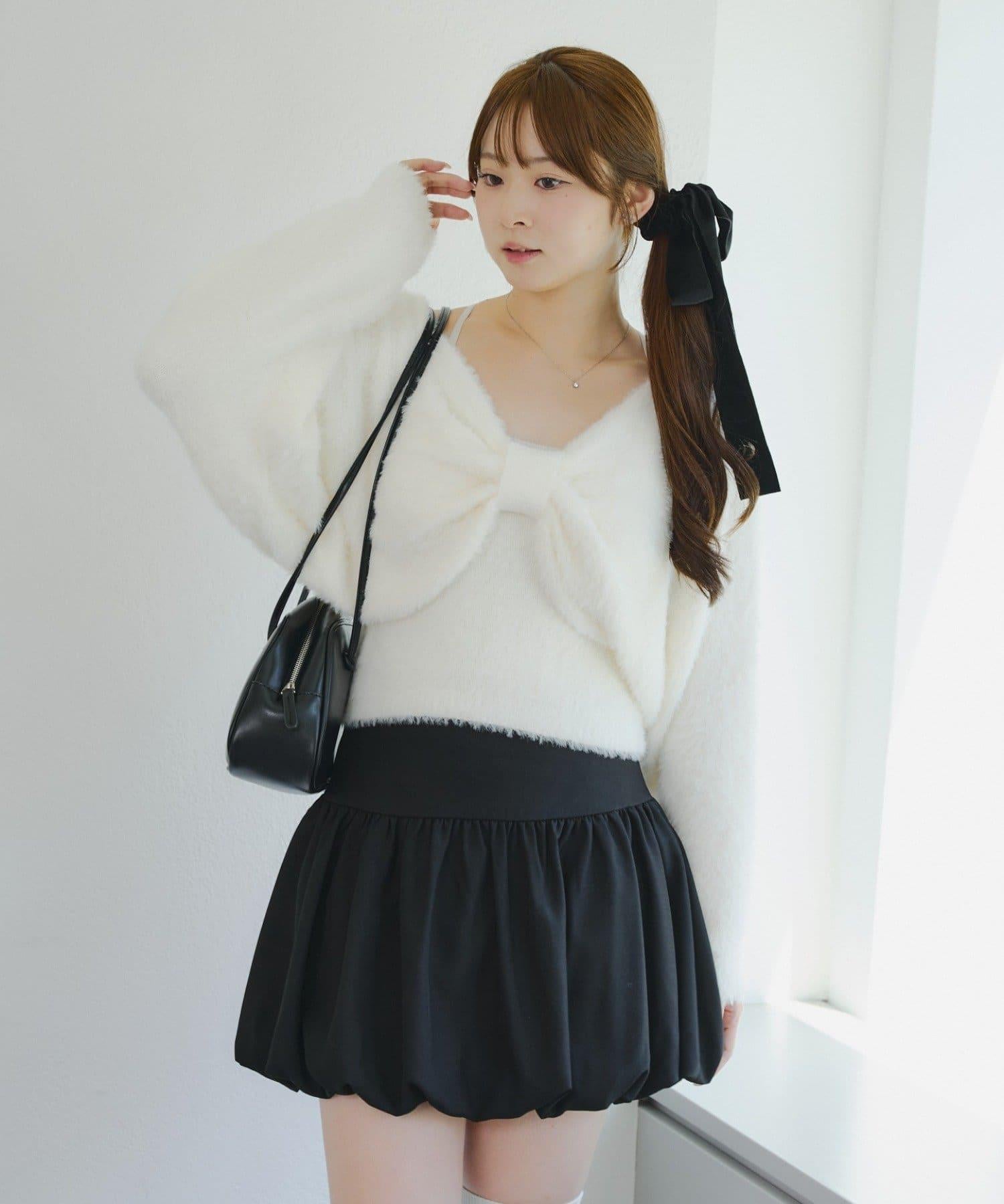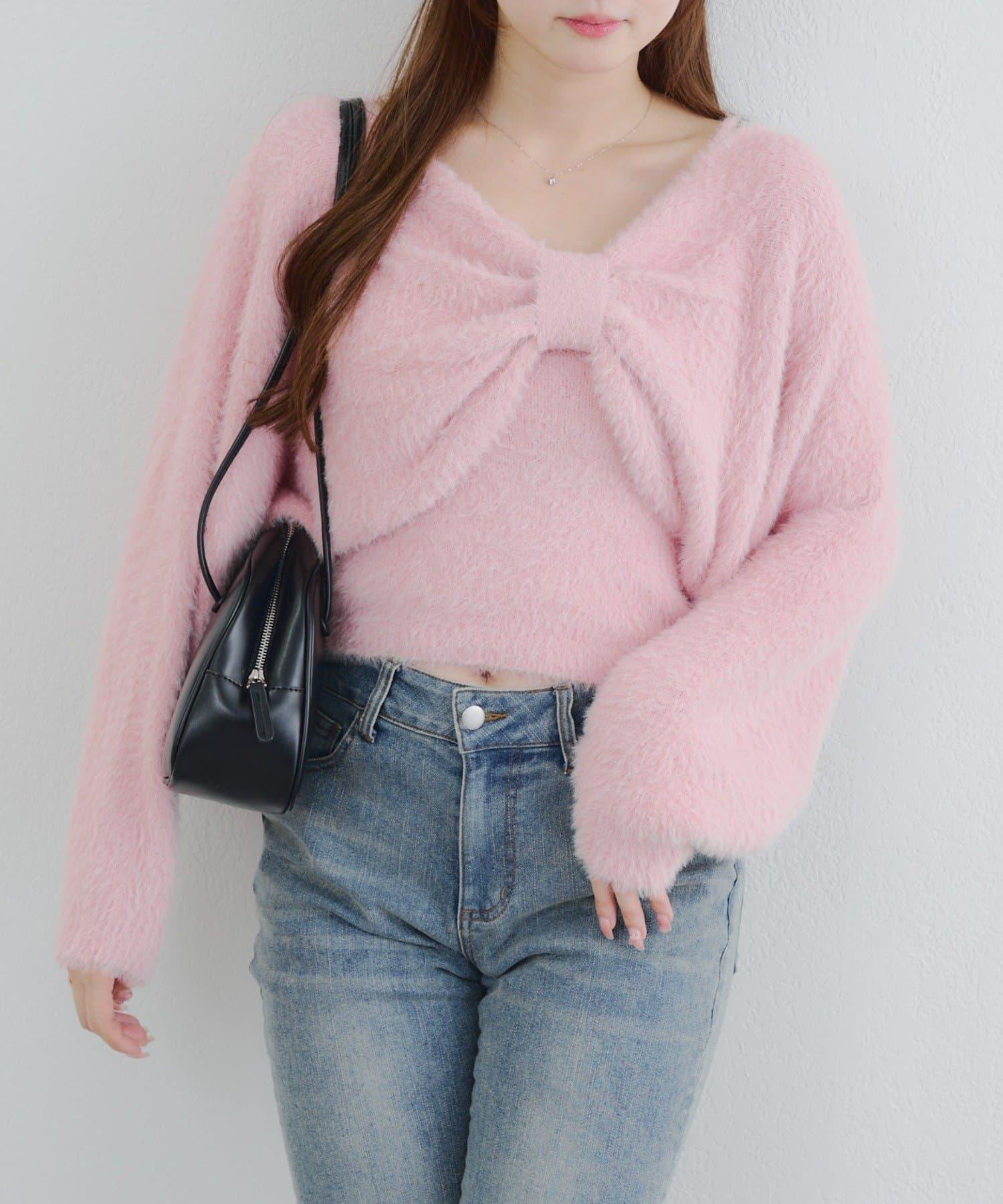 【2件套】吊帶+蝴蝶結羽毛針織衫