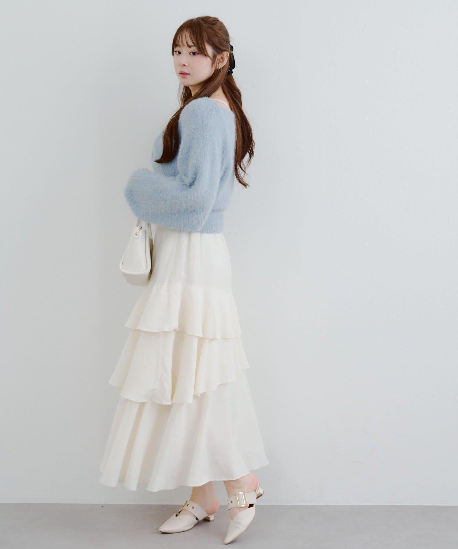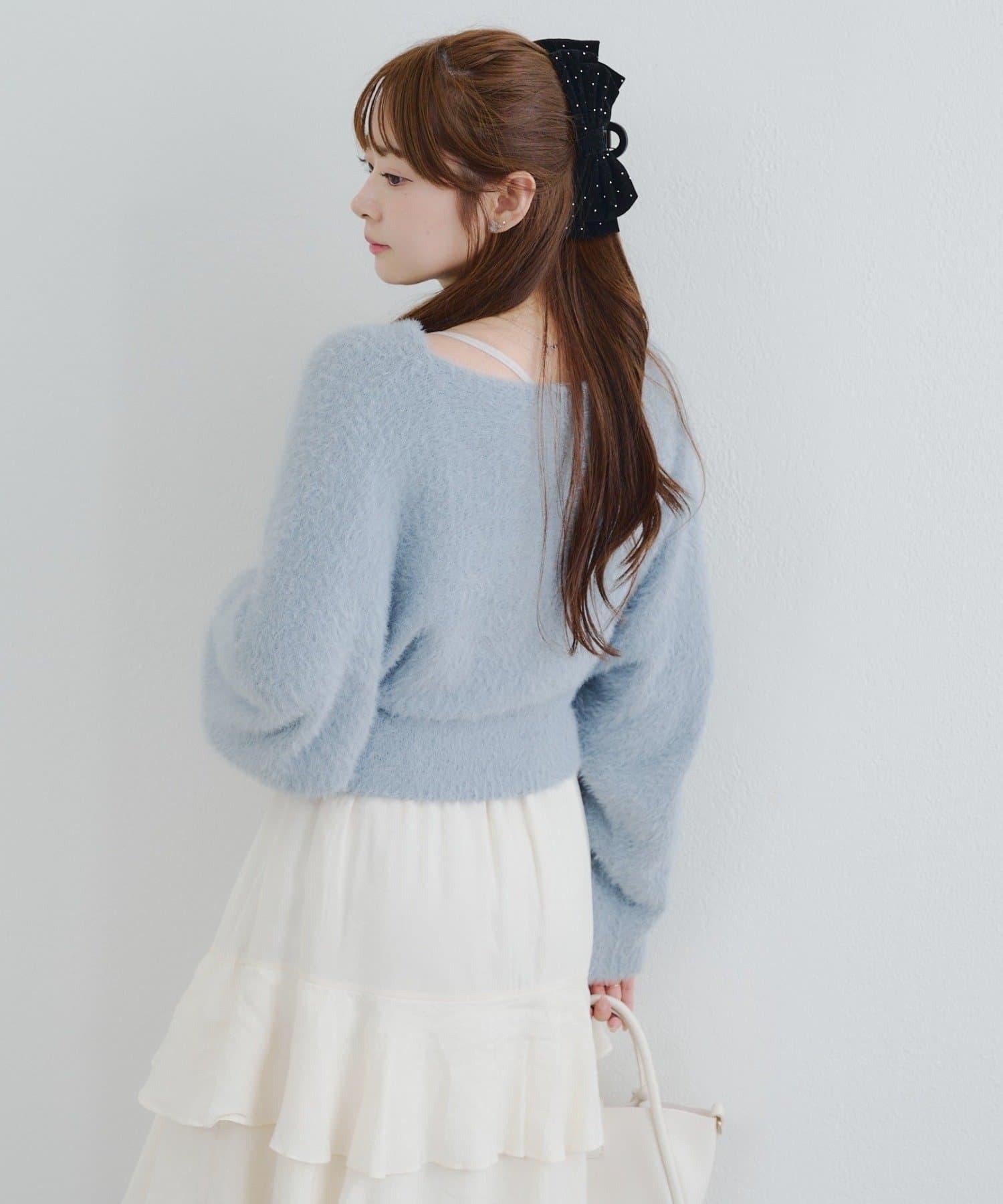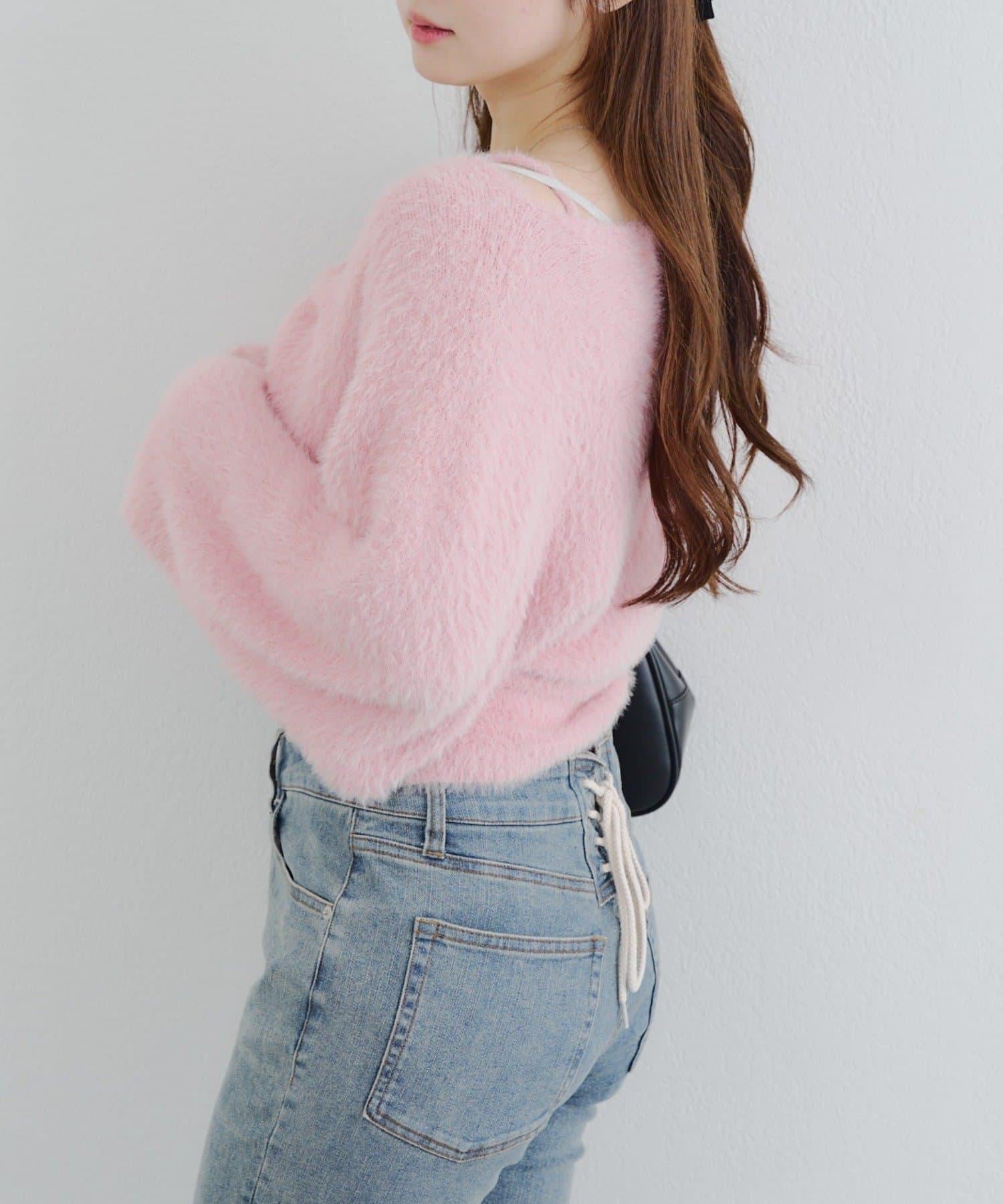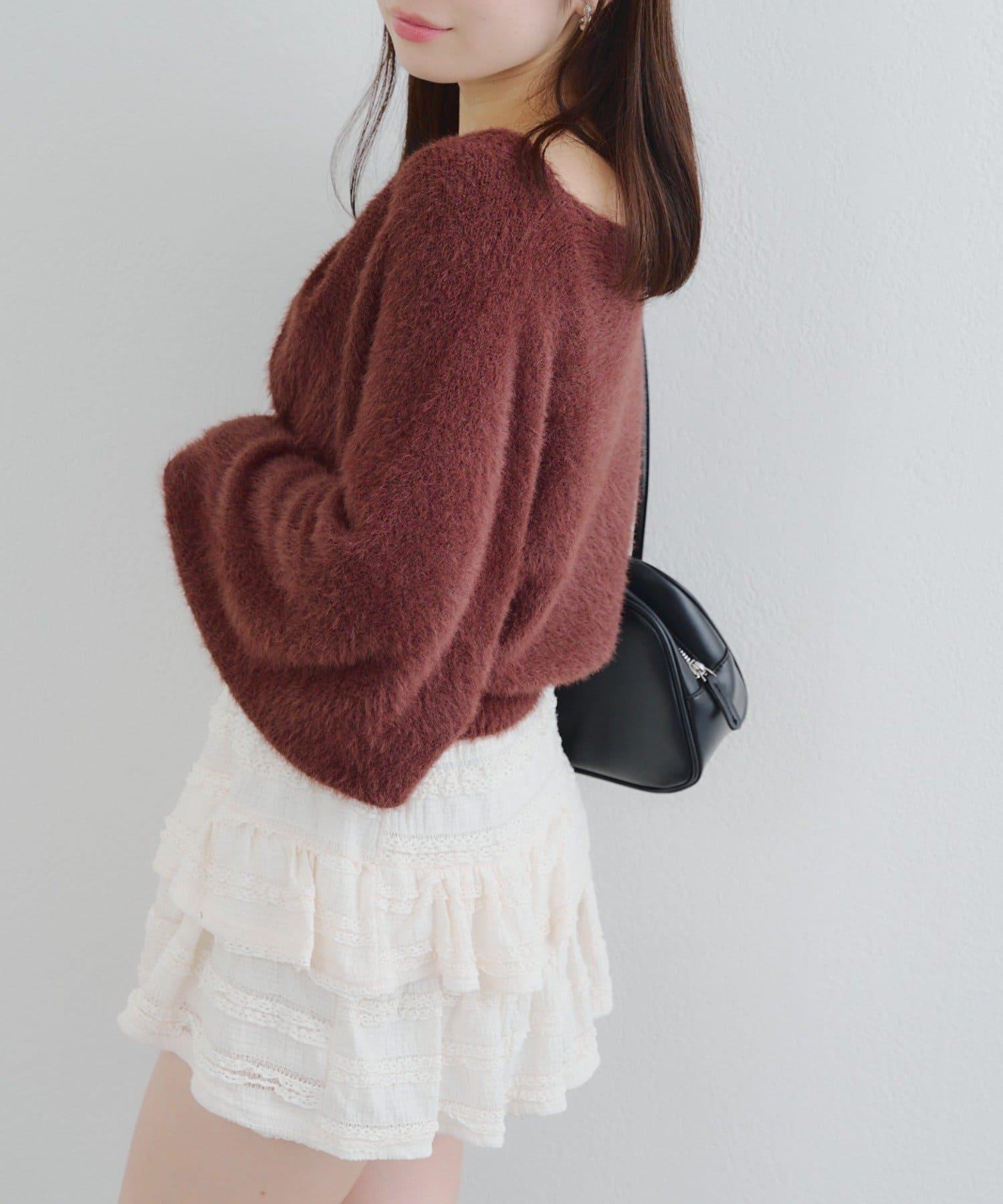 針織上衣,蓬鬆的質地讓人忍不住想摸一摸。