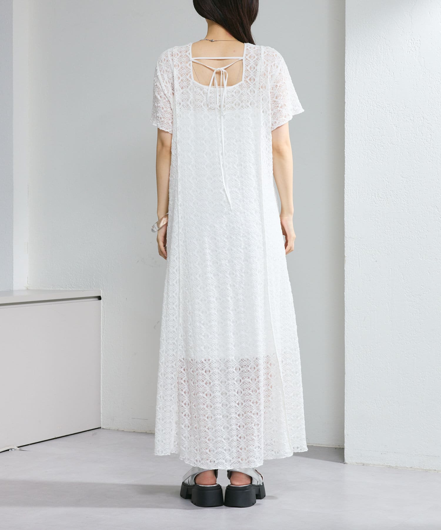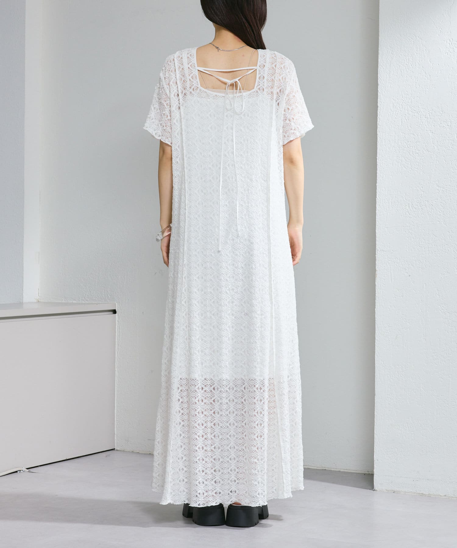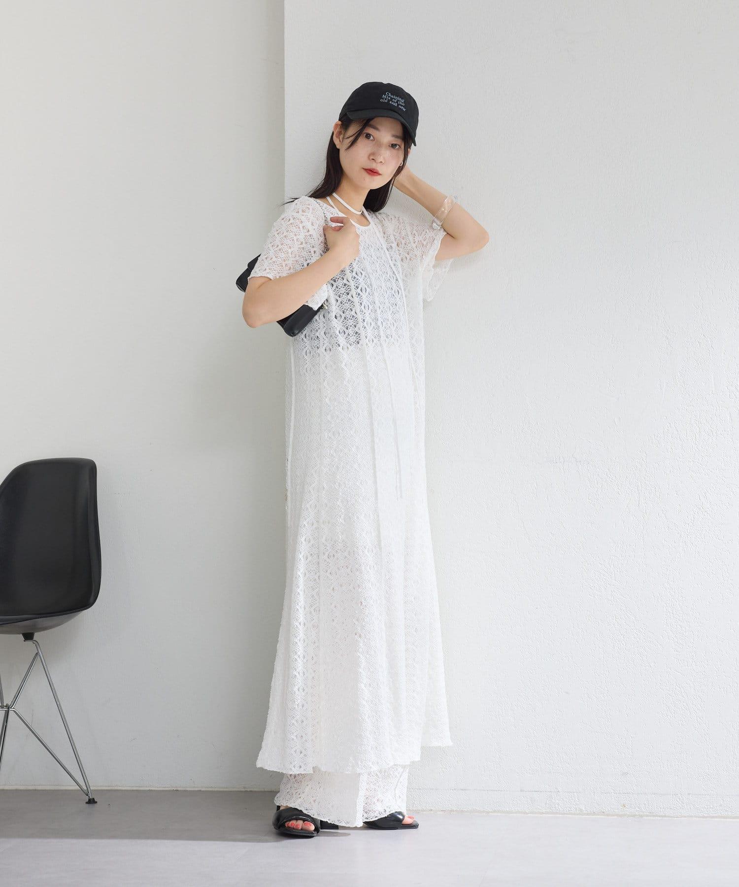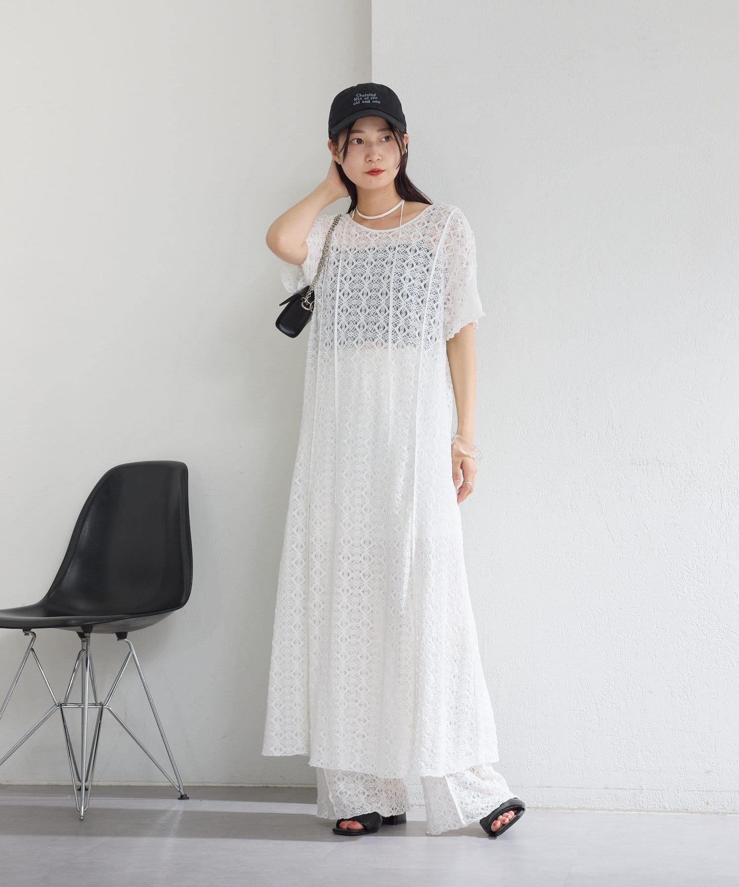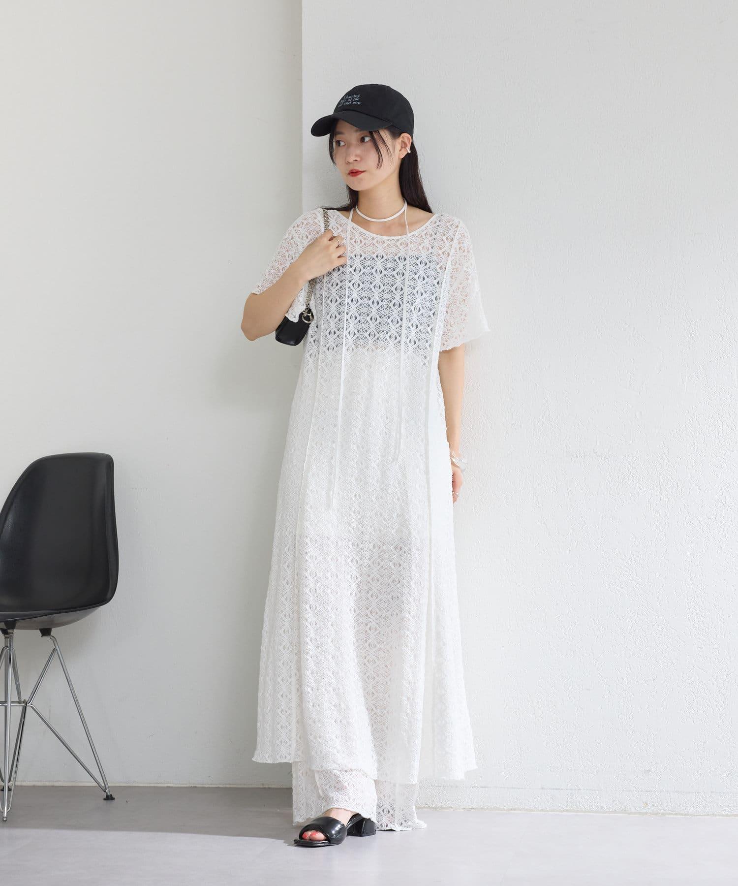 【2尺寸/套裝/前後2WAY】短袖蕾絲連衣裙