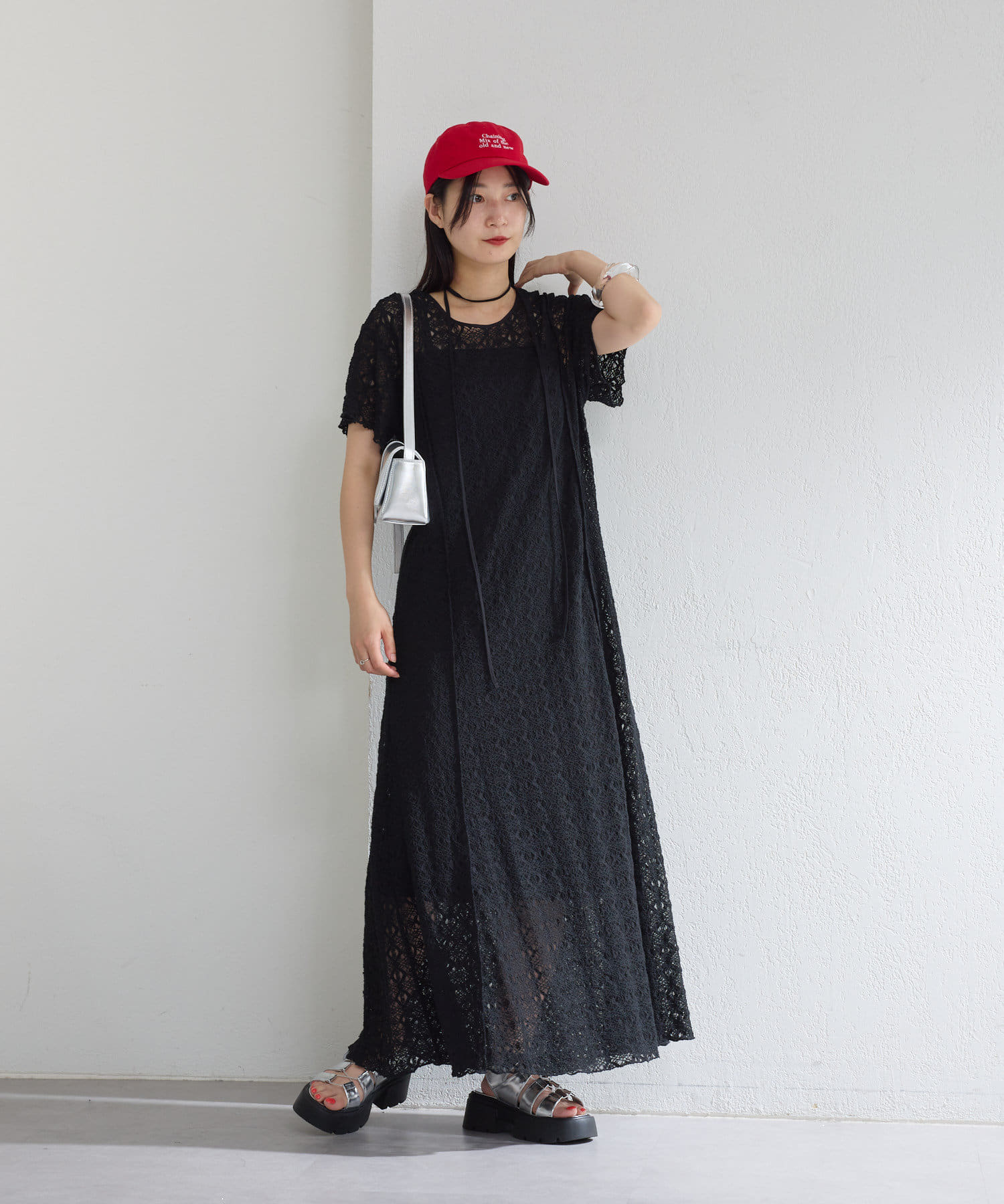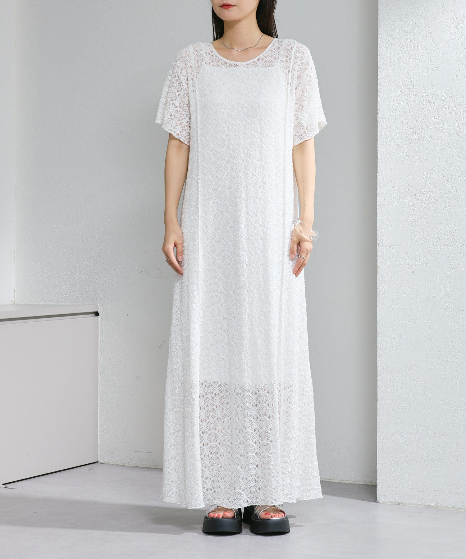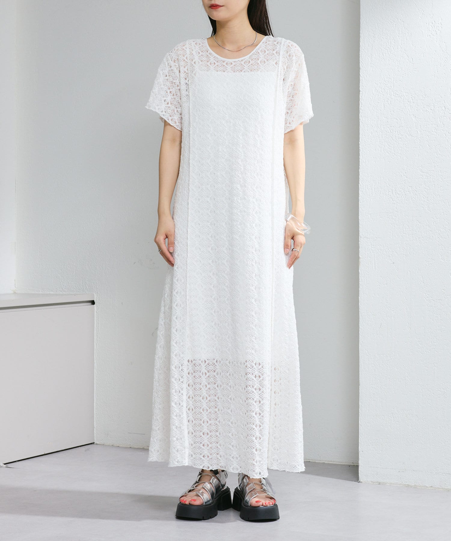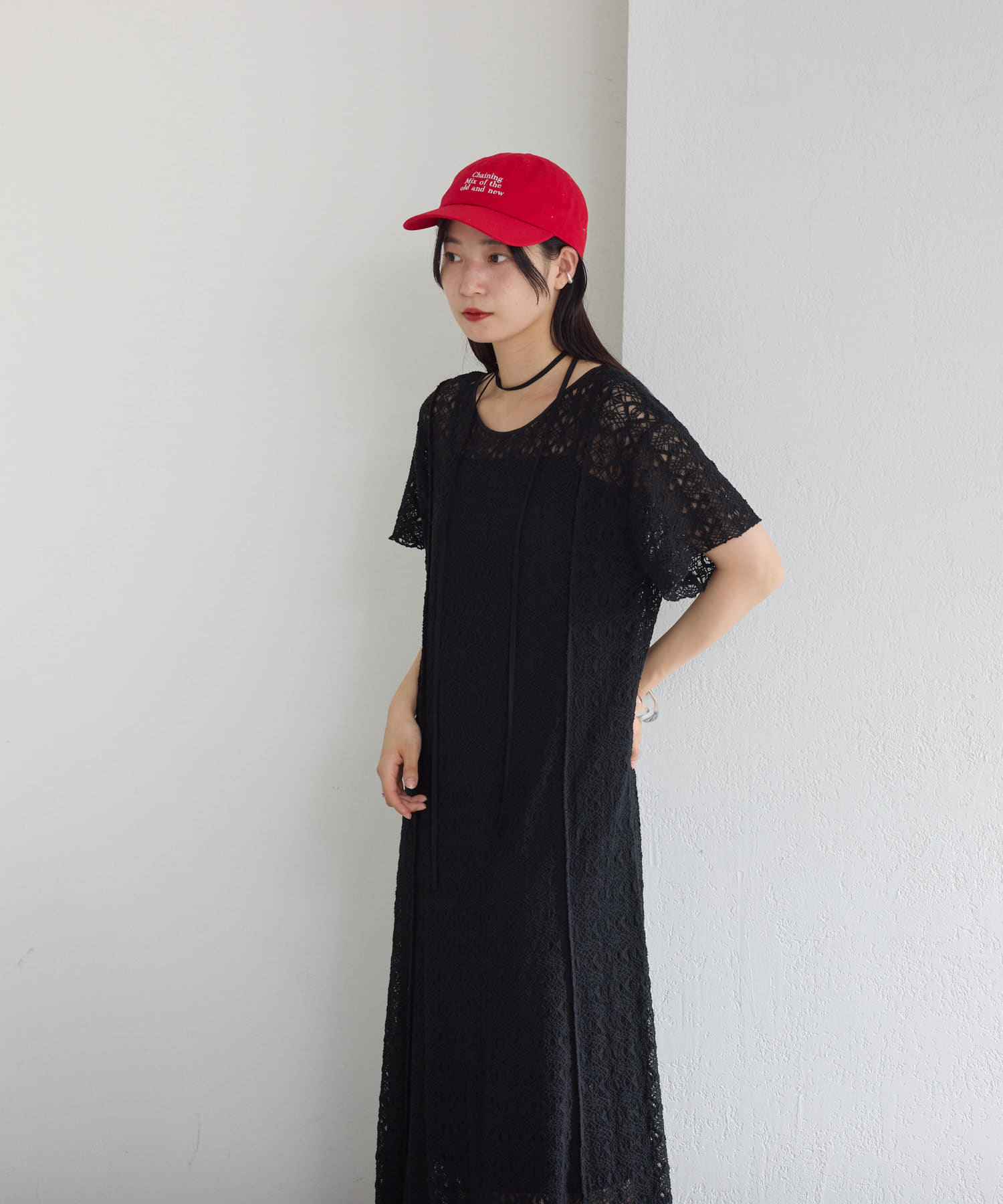 【2尺寸/套裝/前後2WAY】短袖蕾絲連衣裙